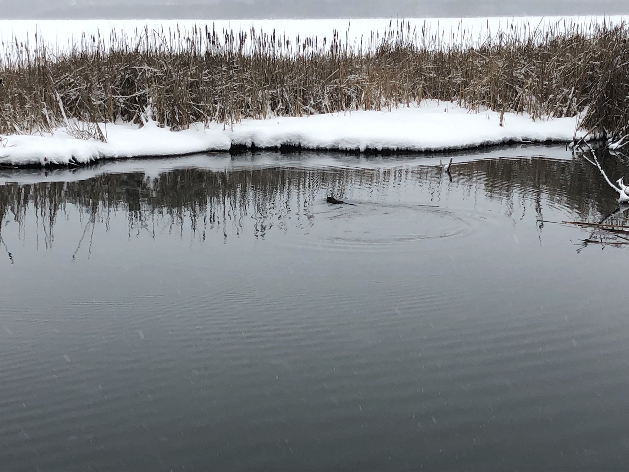 Above: Muskrat (beaver?) swimming around Lake Wingra cattails. There were two and they appeared to be eatting the cattails.