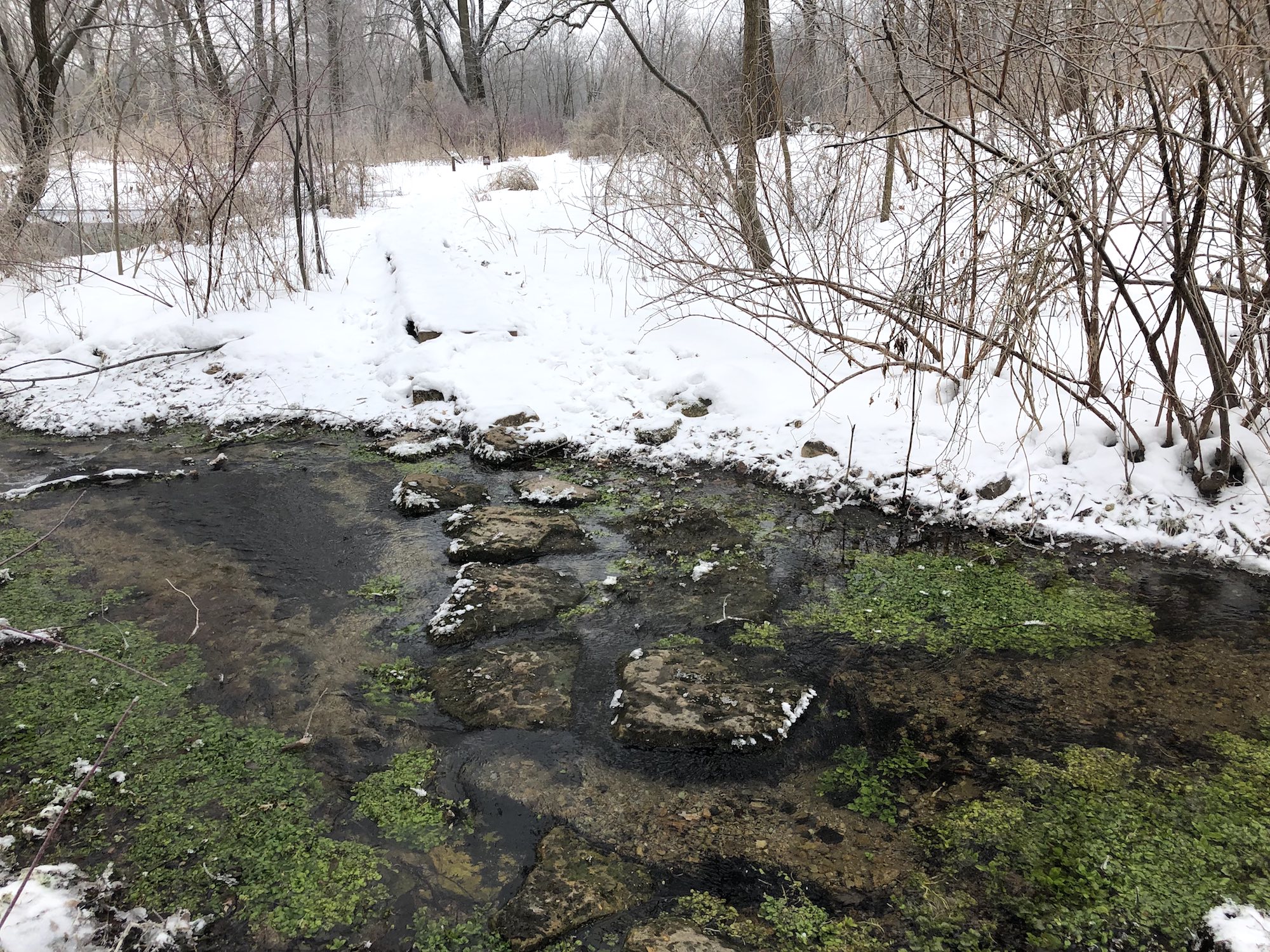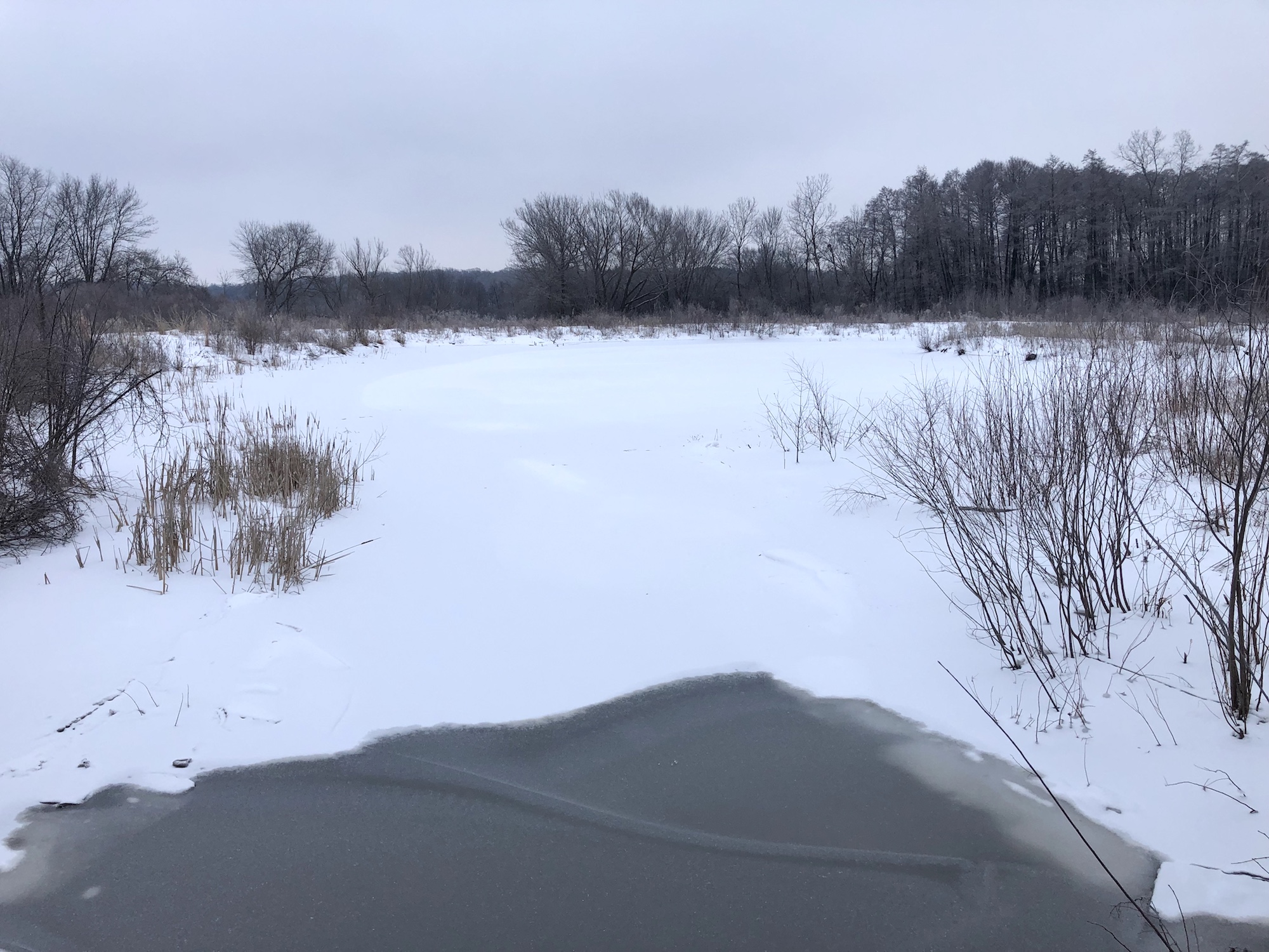 Above: Marion-Dunn Retaining Pond on February 27, 2019 (12°).