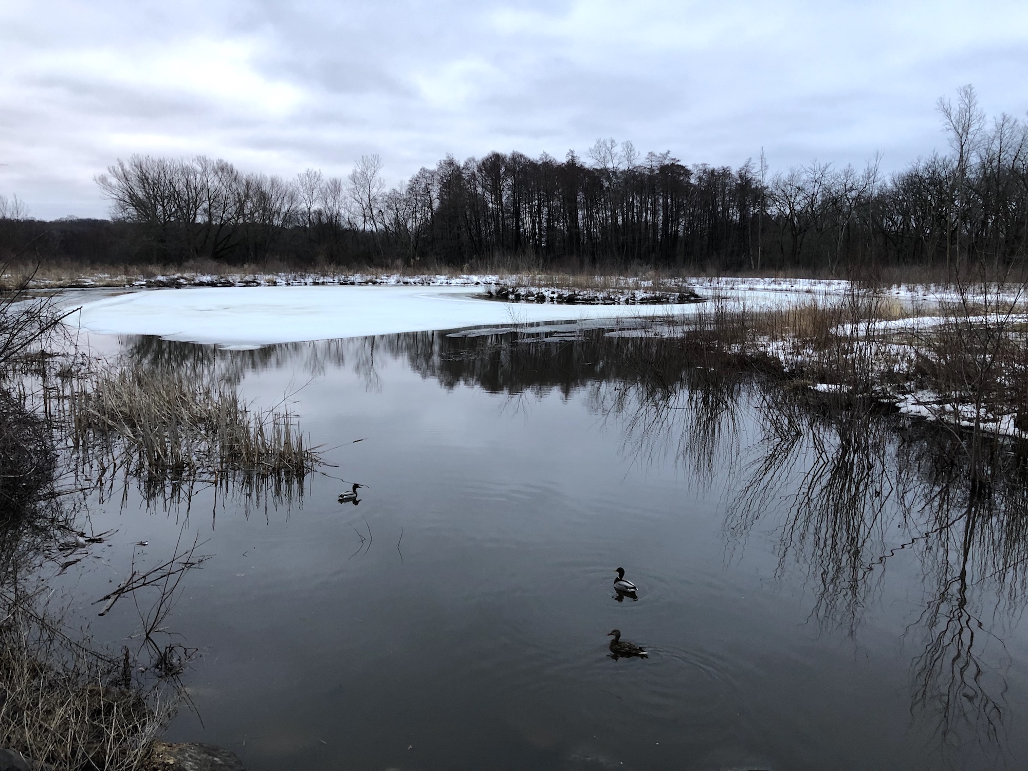 Above: Marion-Dunn Retaining Pond on March 15, 2019 (33°).