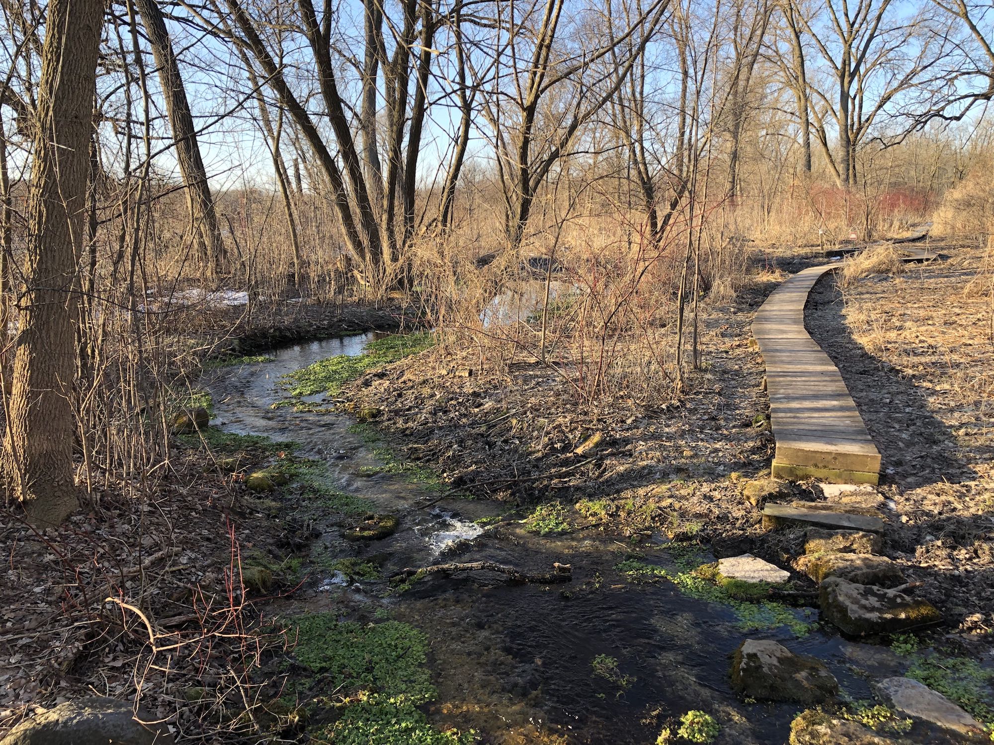 Above: Retaining pond on corner of Nakoma Road and Manitou Way on March 17, 2019 (27°).