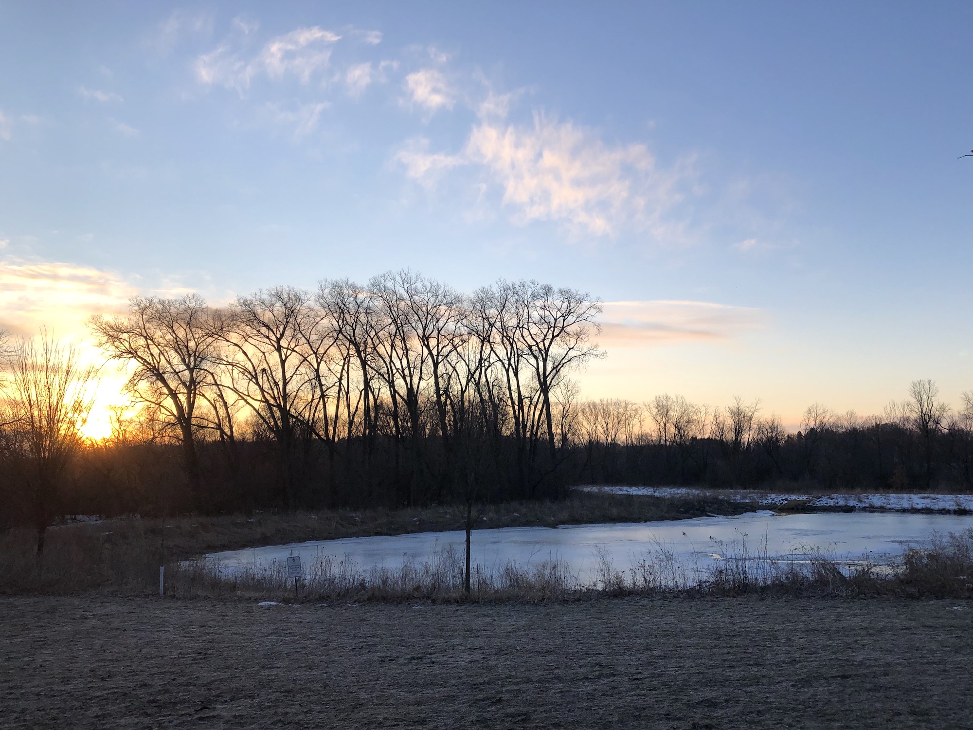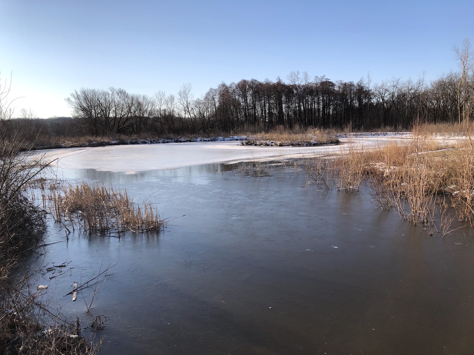 Above: Marion-Dunn Retaining Pond on March 17, 2019 (27°).