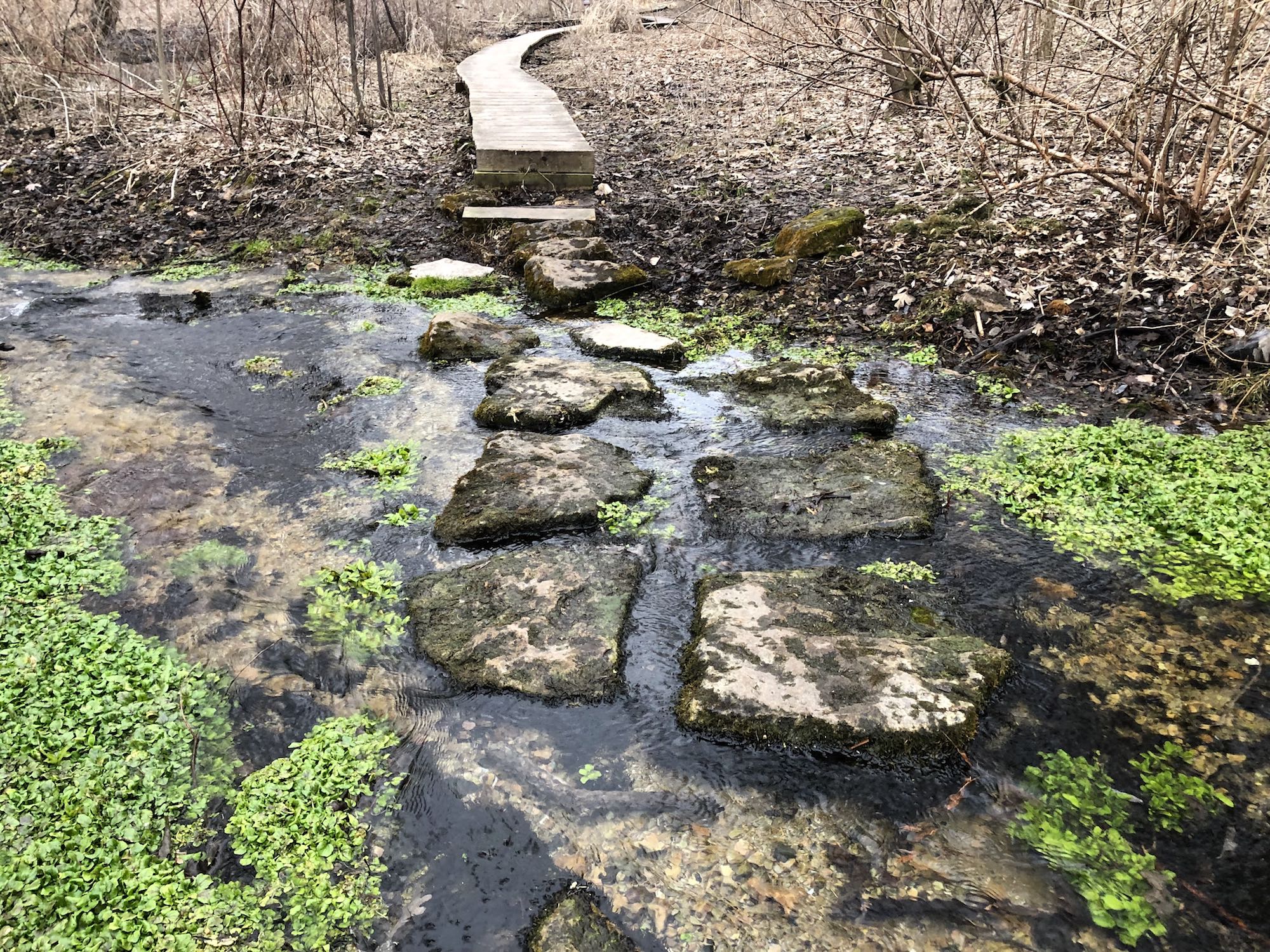 Above: Retaining pond on corner of Nakoma Road and Manitou Way on March 21, 2019 (35°).
