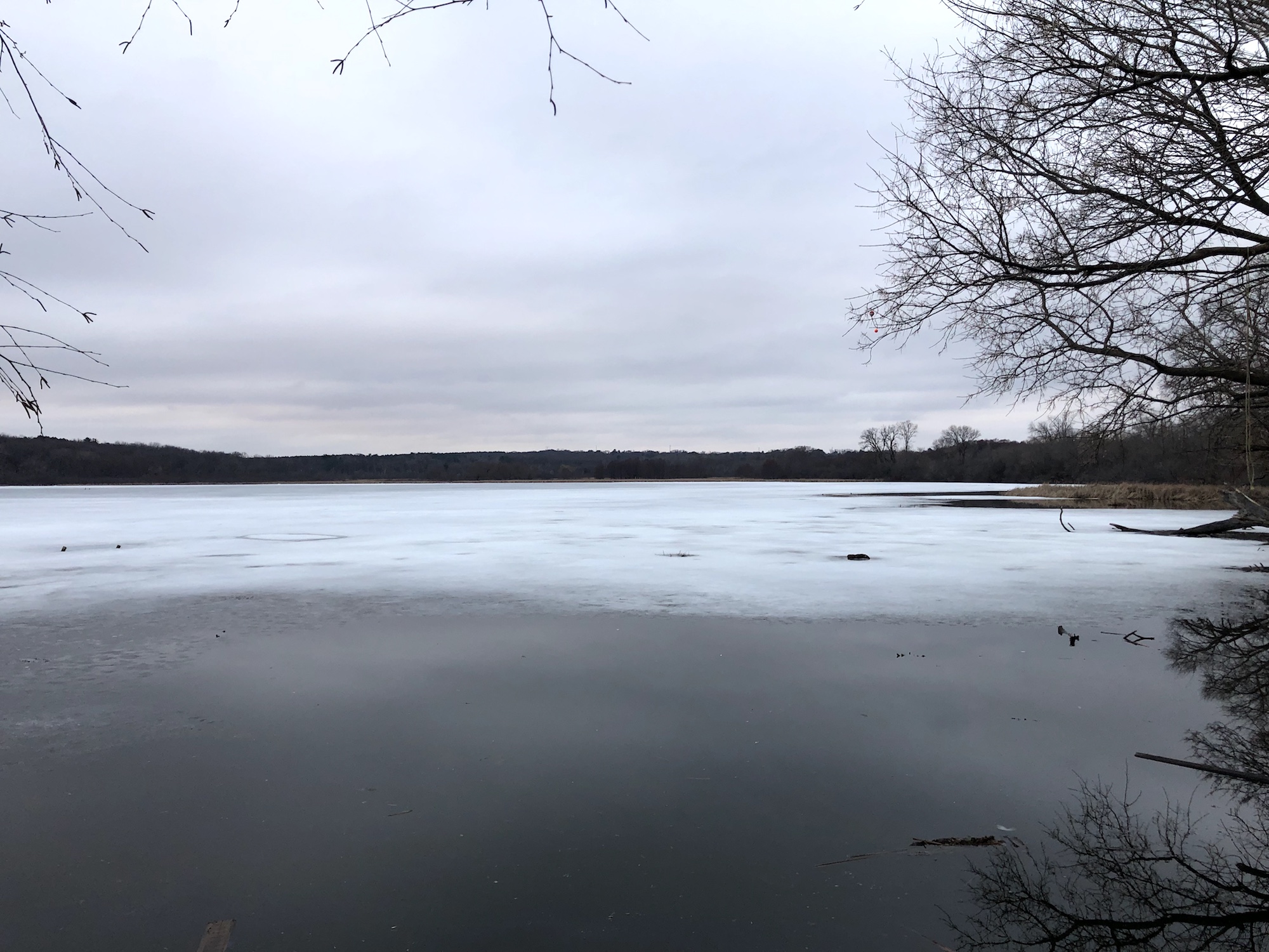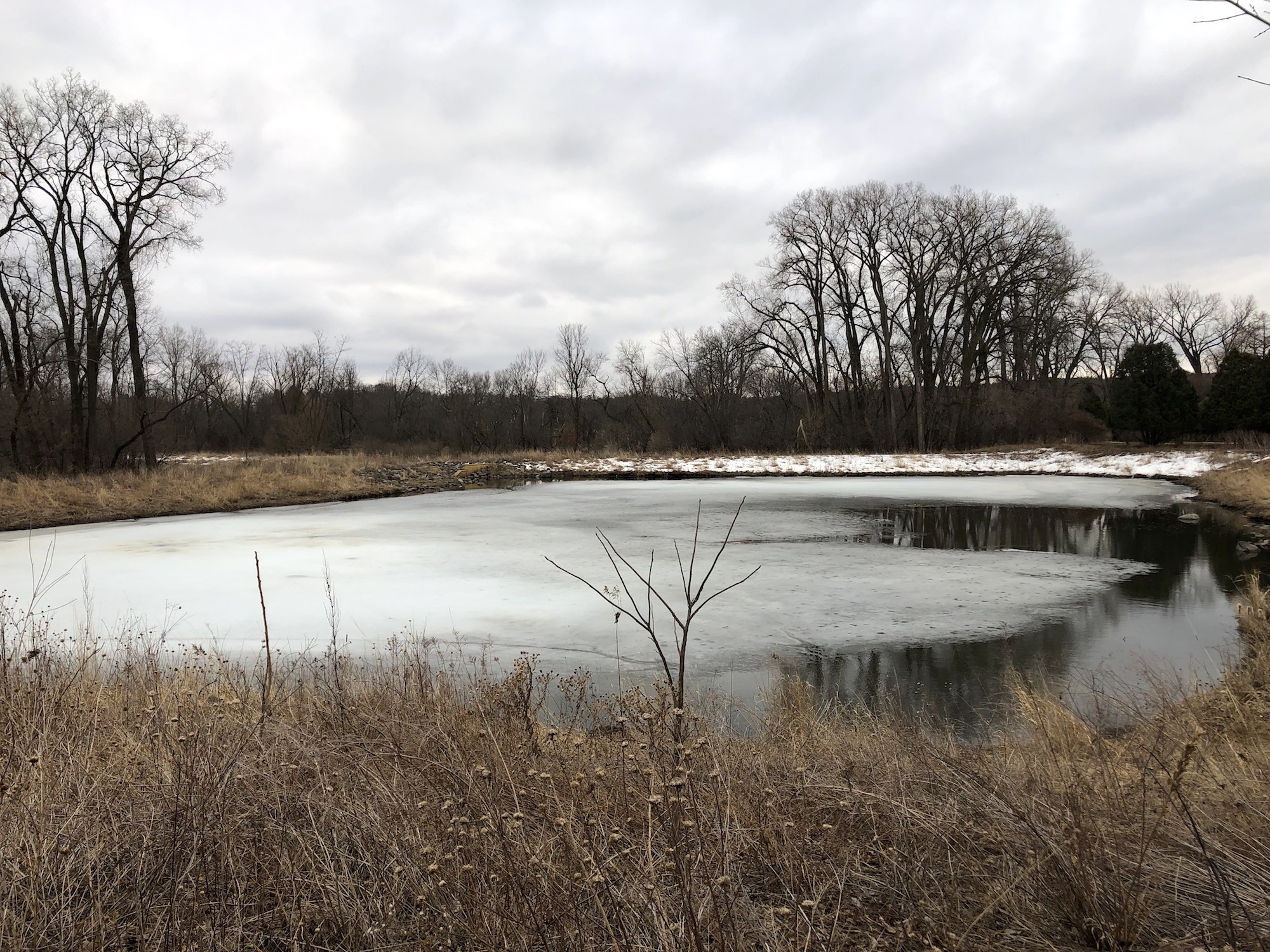 Above: Marion-Dunn Retaining Pond on March 21, 2019 (35°).
