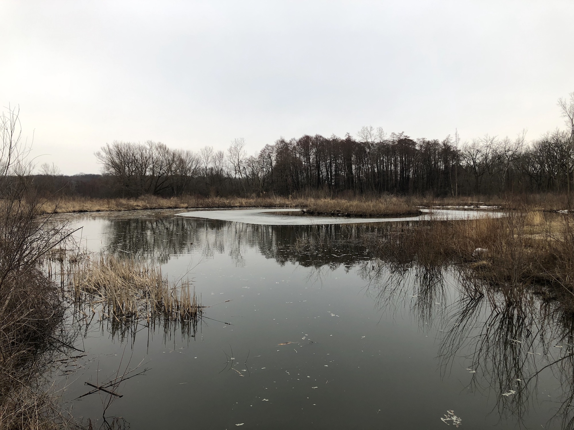 Above: Marion-Dunn Retaining Pond on March 24, 2019 (40°).