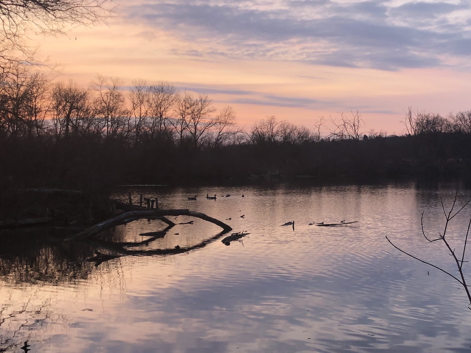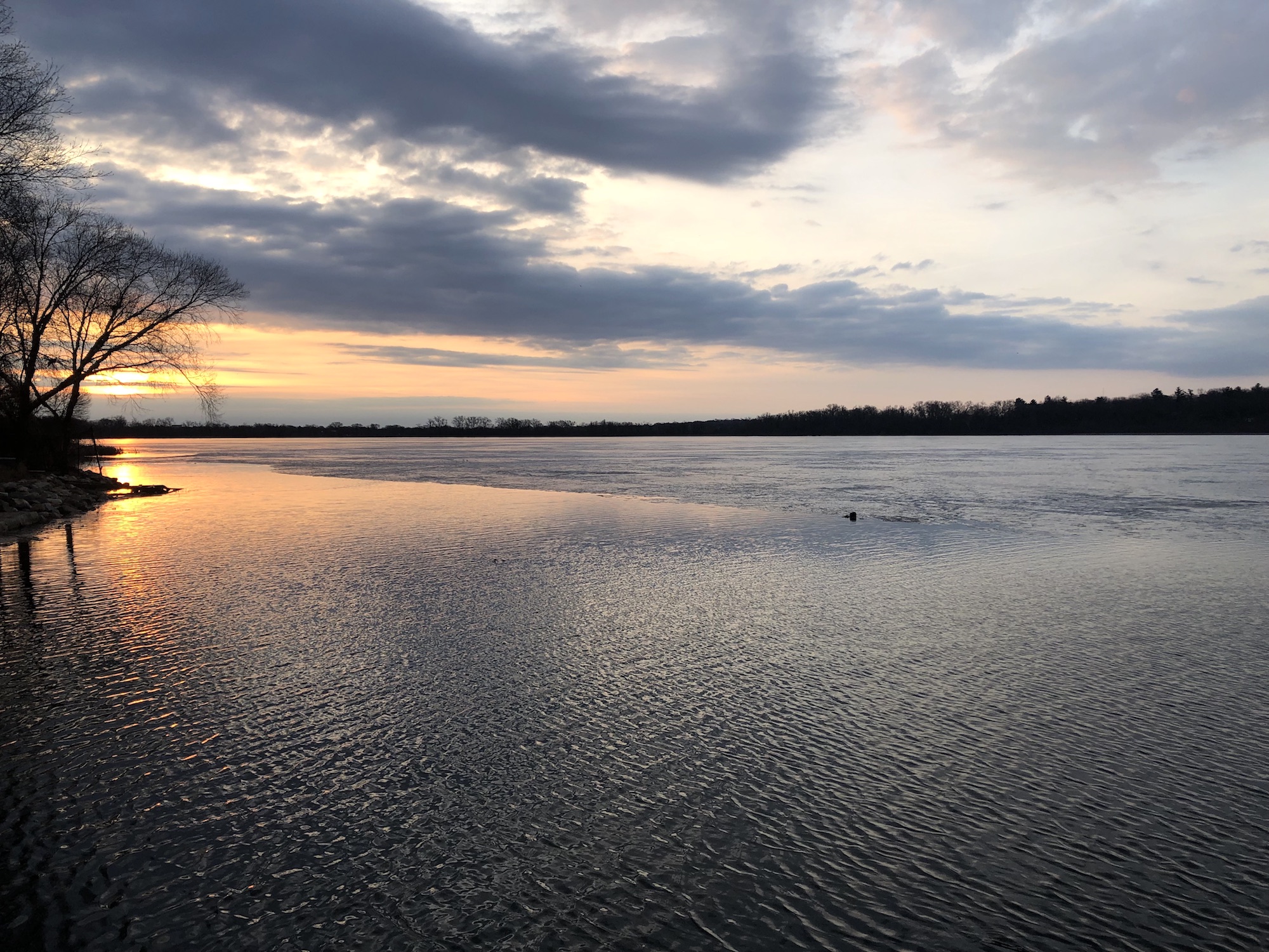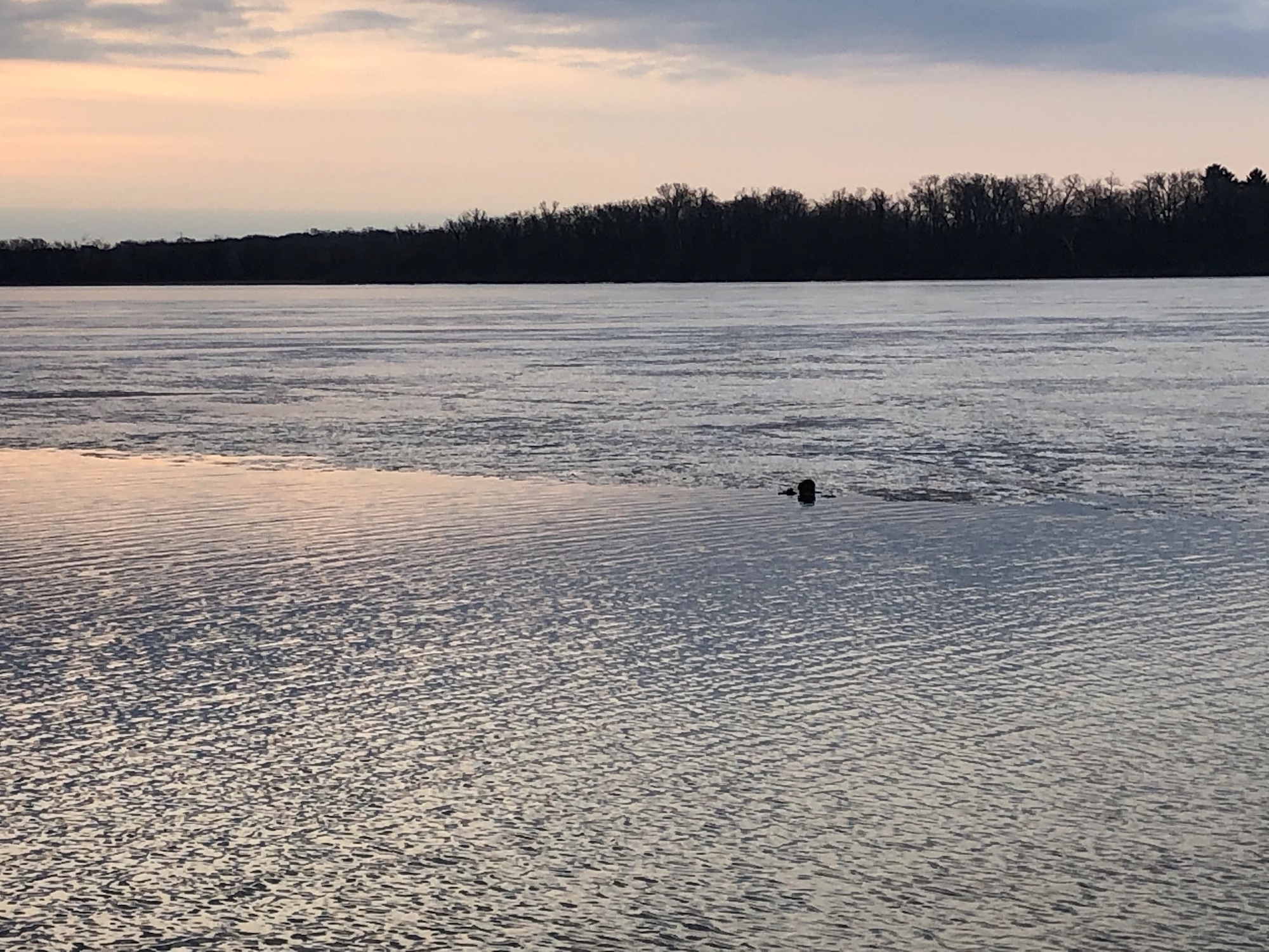 Below: Lake Wingra looking east at sunrise. Muskrat on receeding ice.