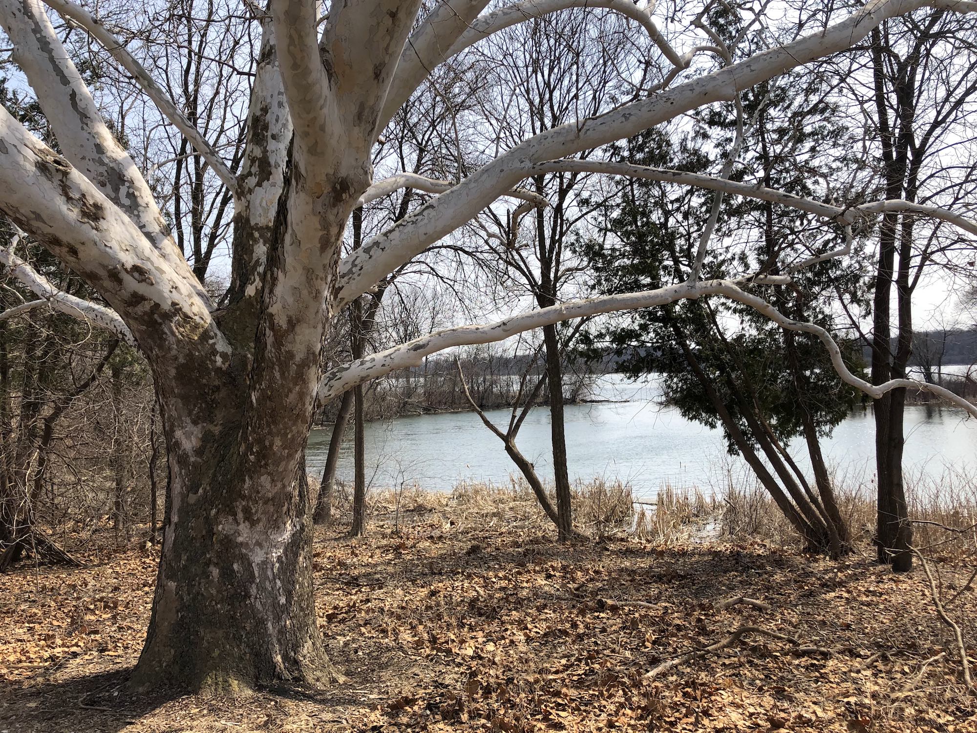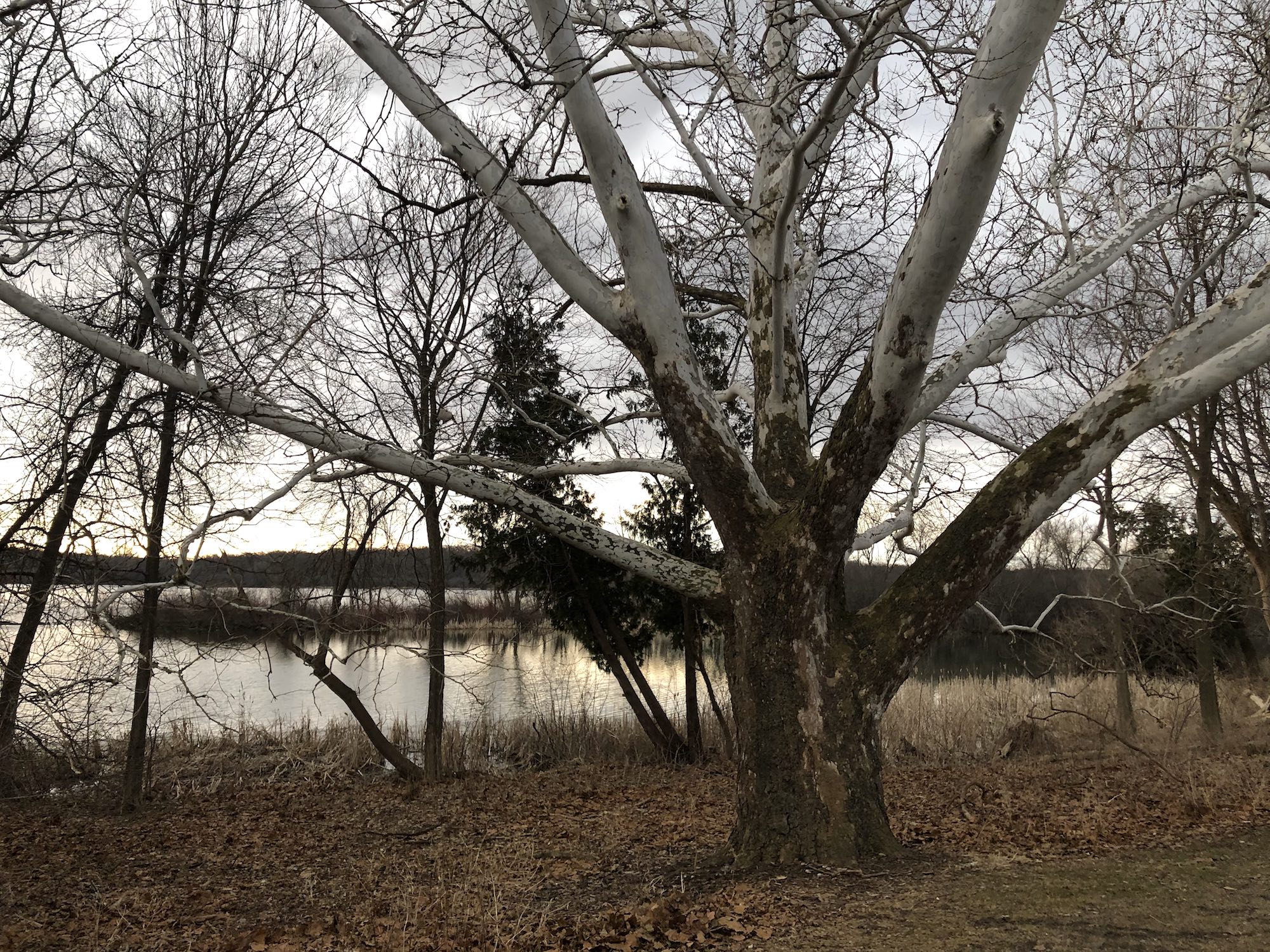 Below: Sycamore overlooking Ho-Nee-Um Pond in afternoon - 12:45 PM. (50°)