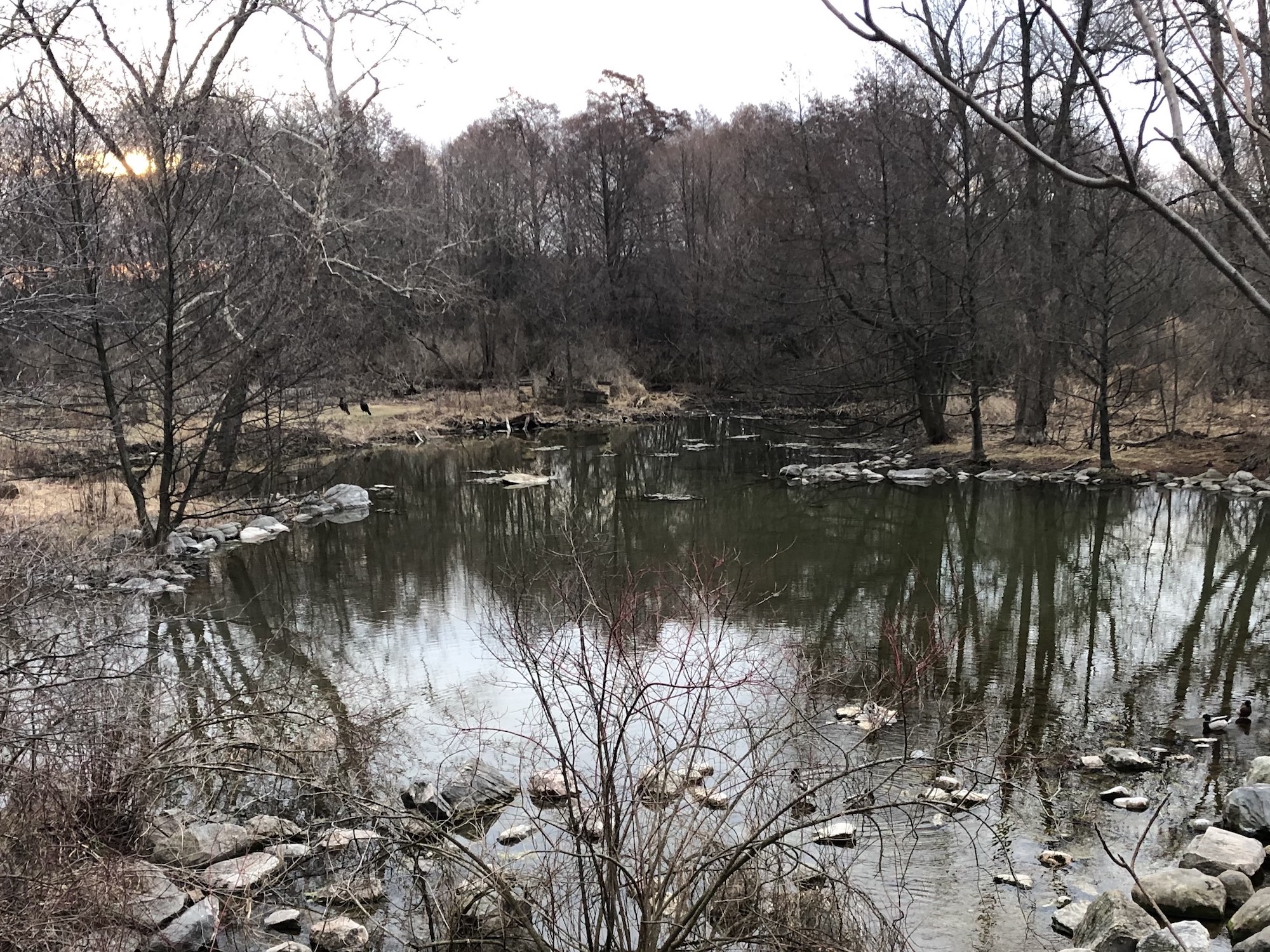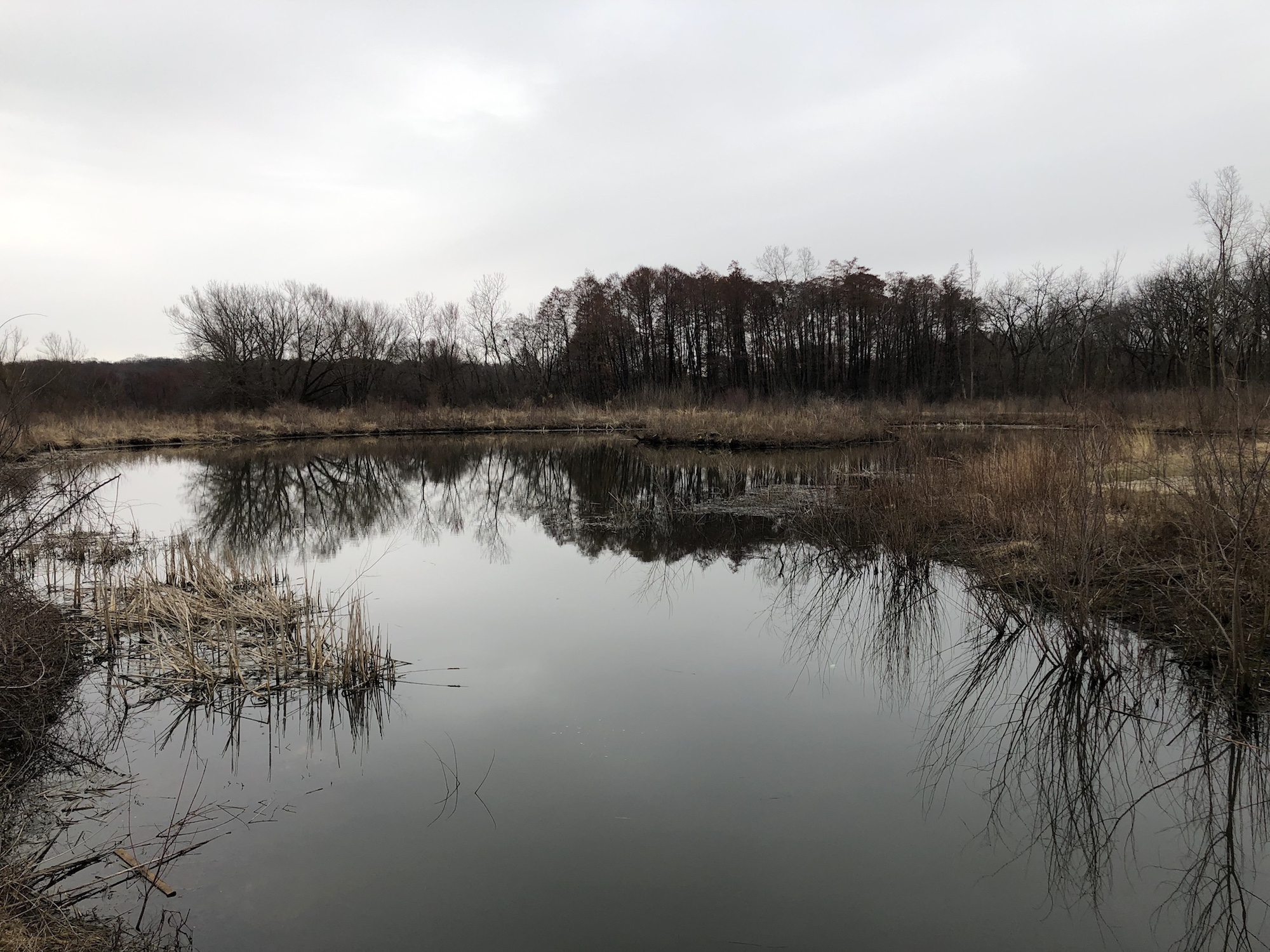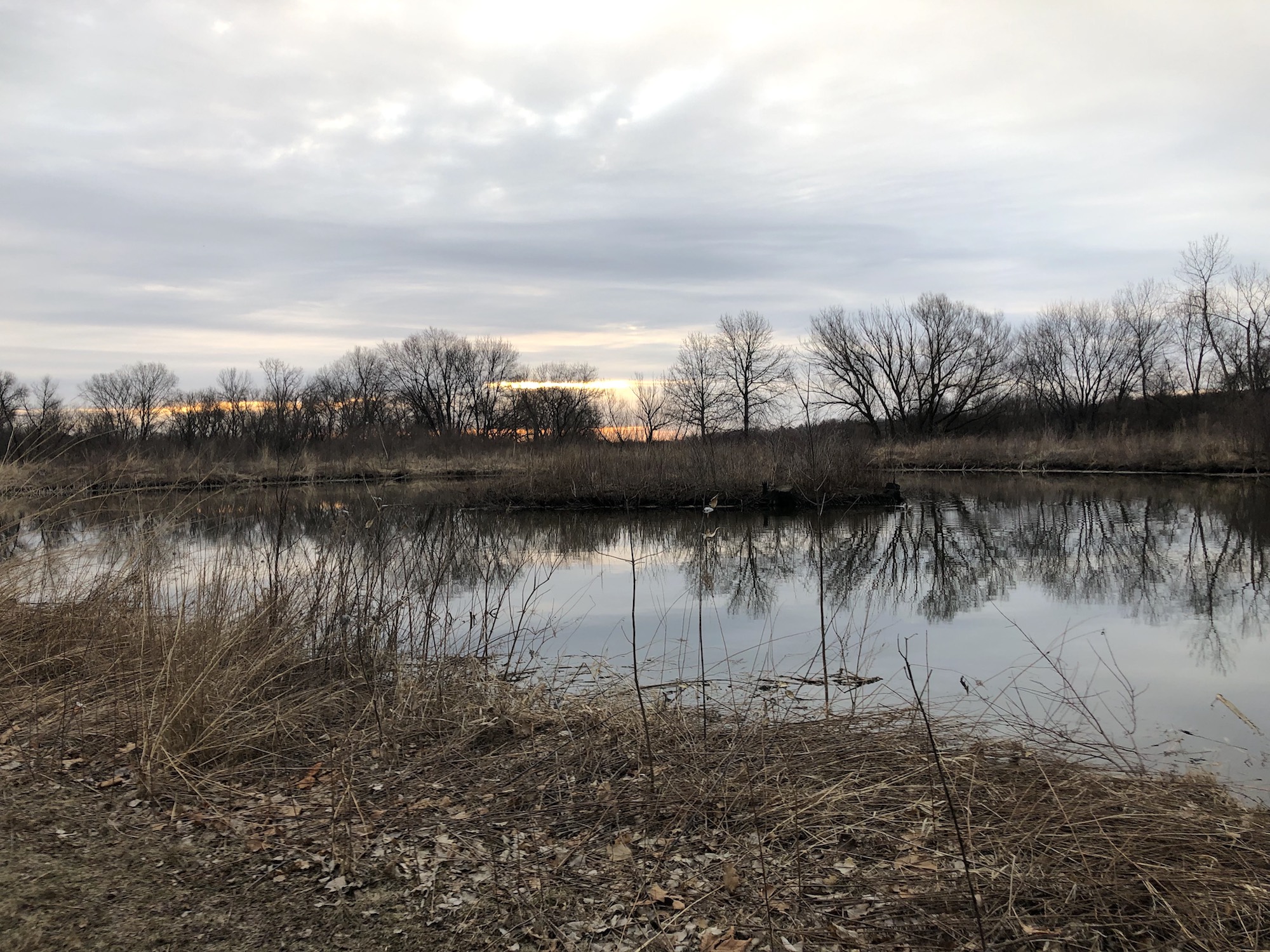 Above: Marion-Dunn Retaining Pond on April 1, 2019 (23°).