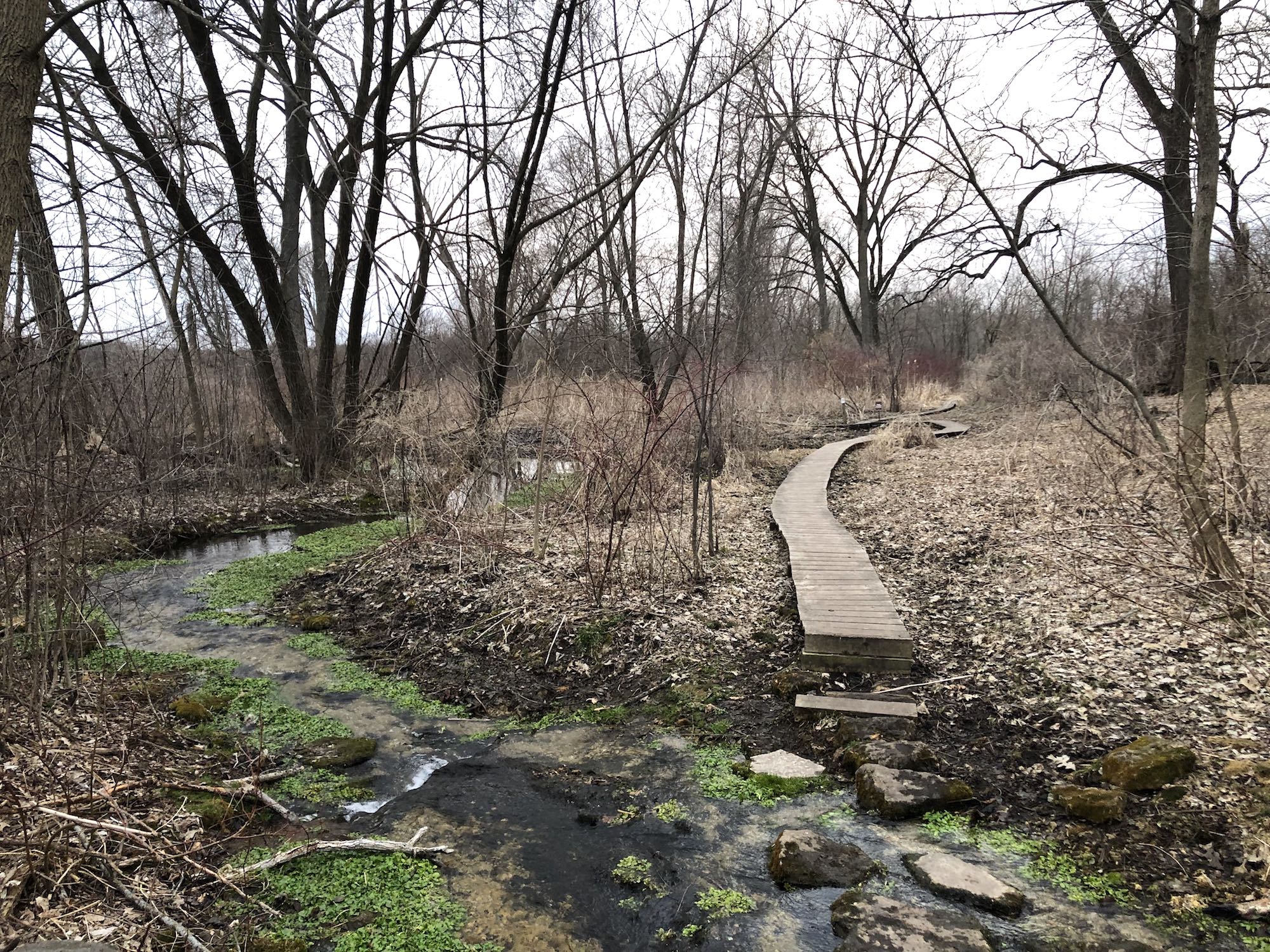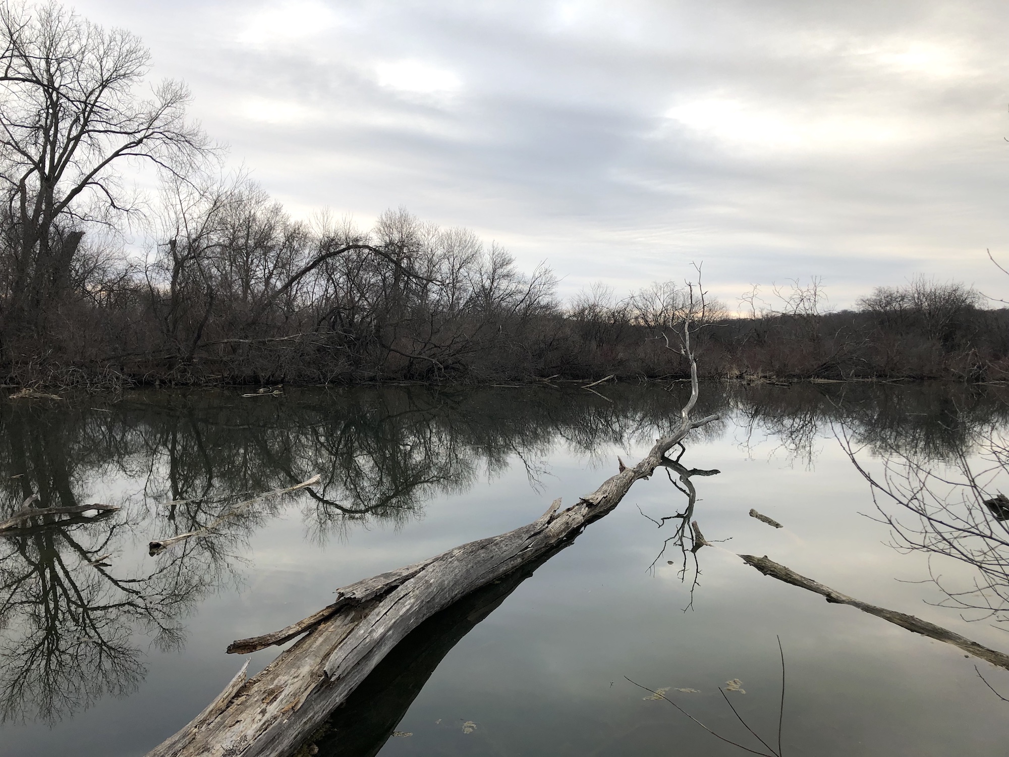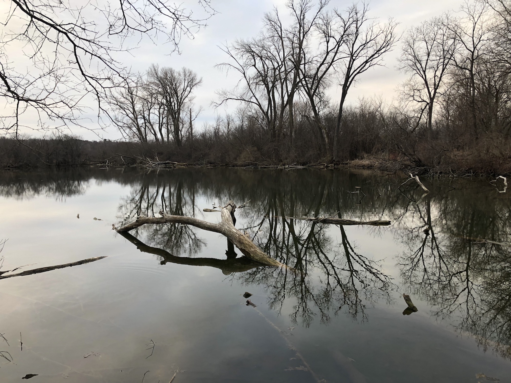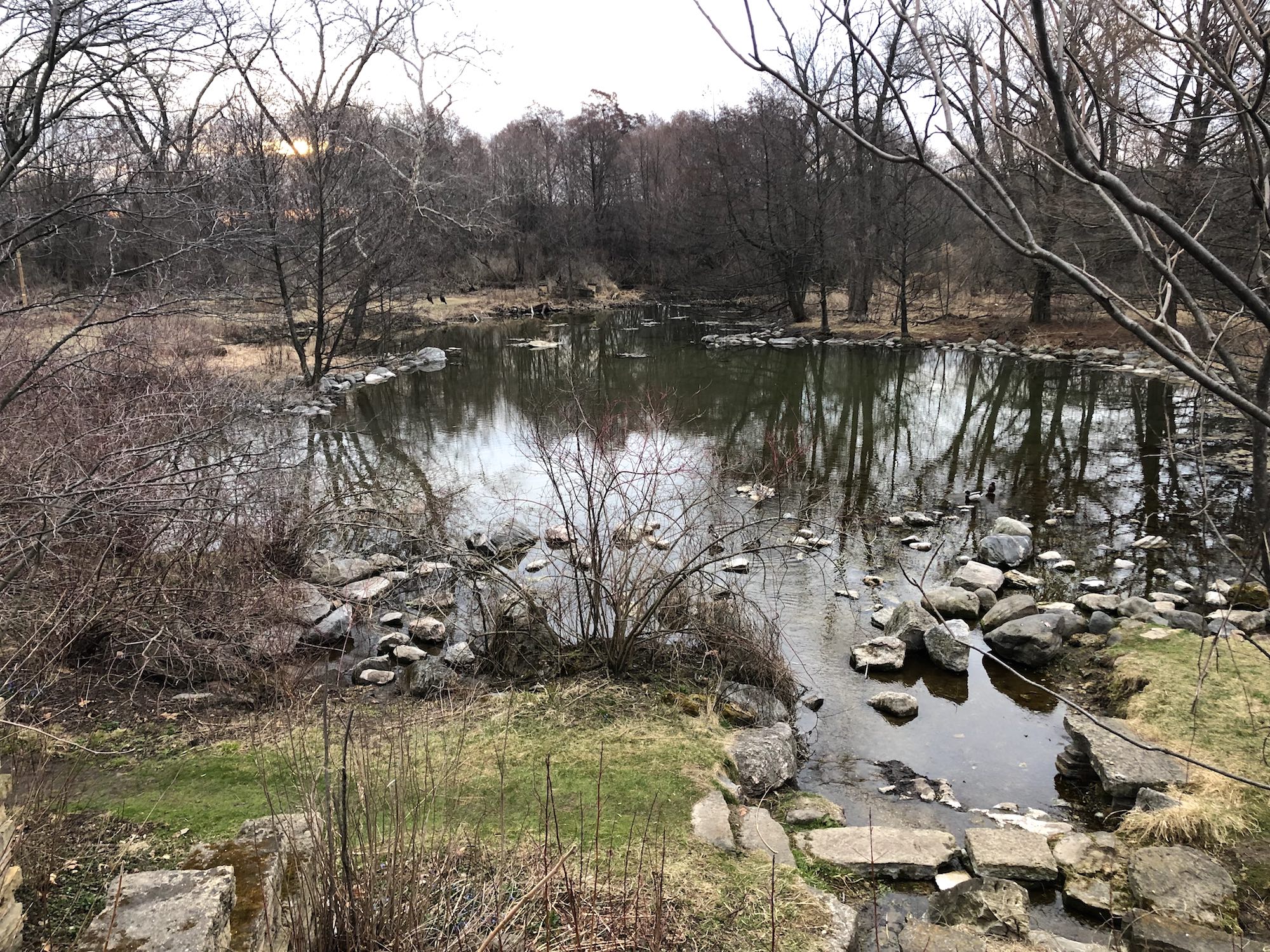 Above: Marion-Dunn Retaining Pond on April 1, 2019 (23°).