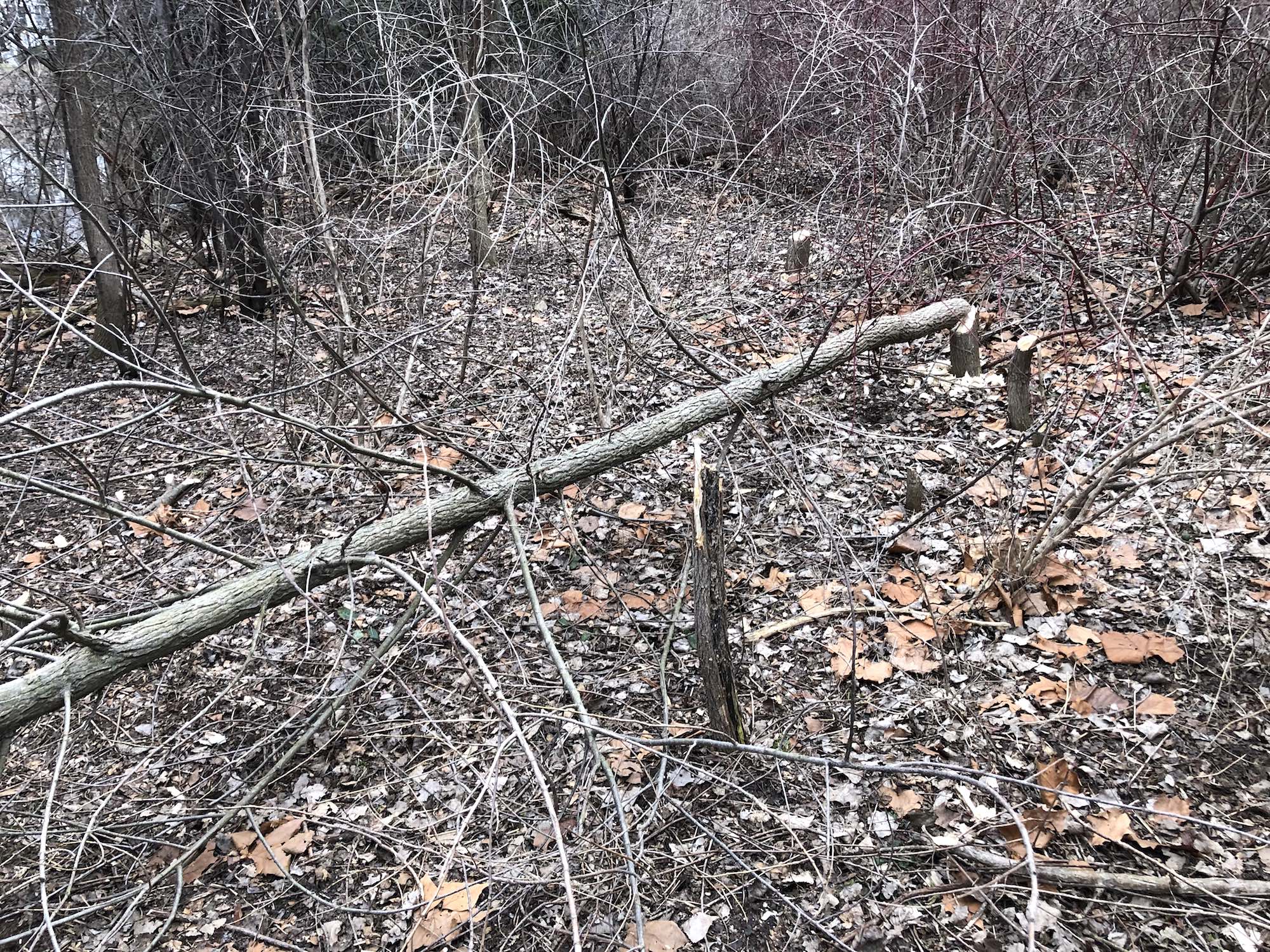 Below: Tree felled by beaver near Ho-Nee-Um Pond (on Pickford Street storm water outflow line).