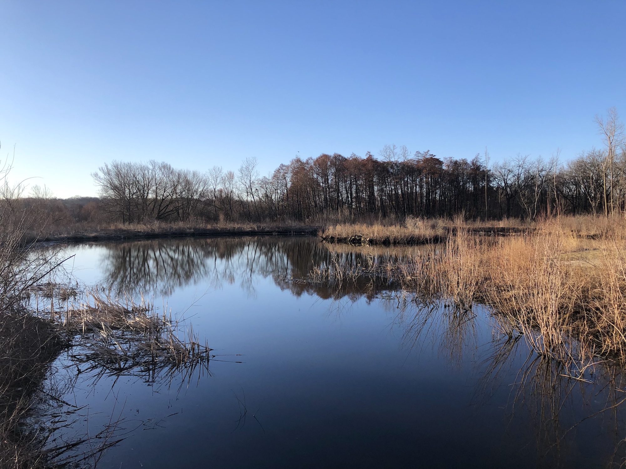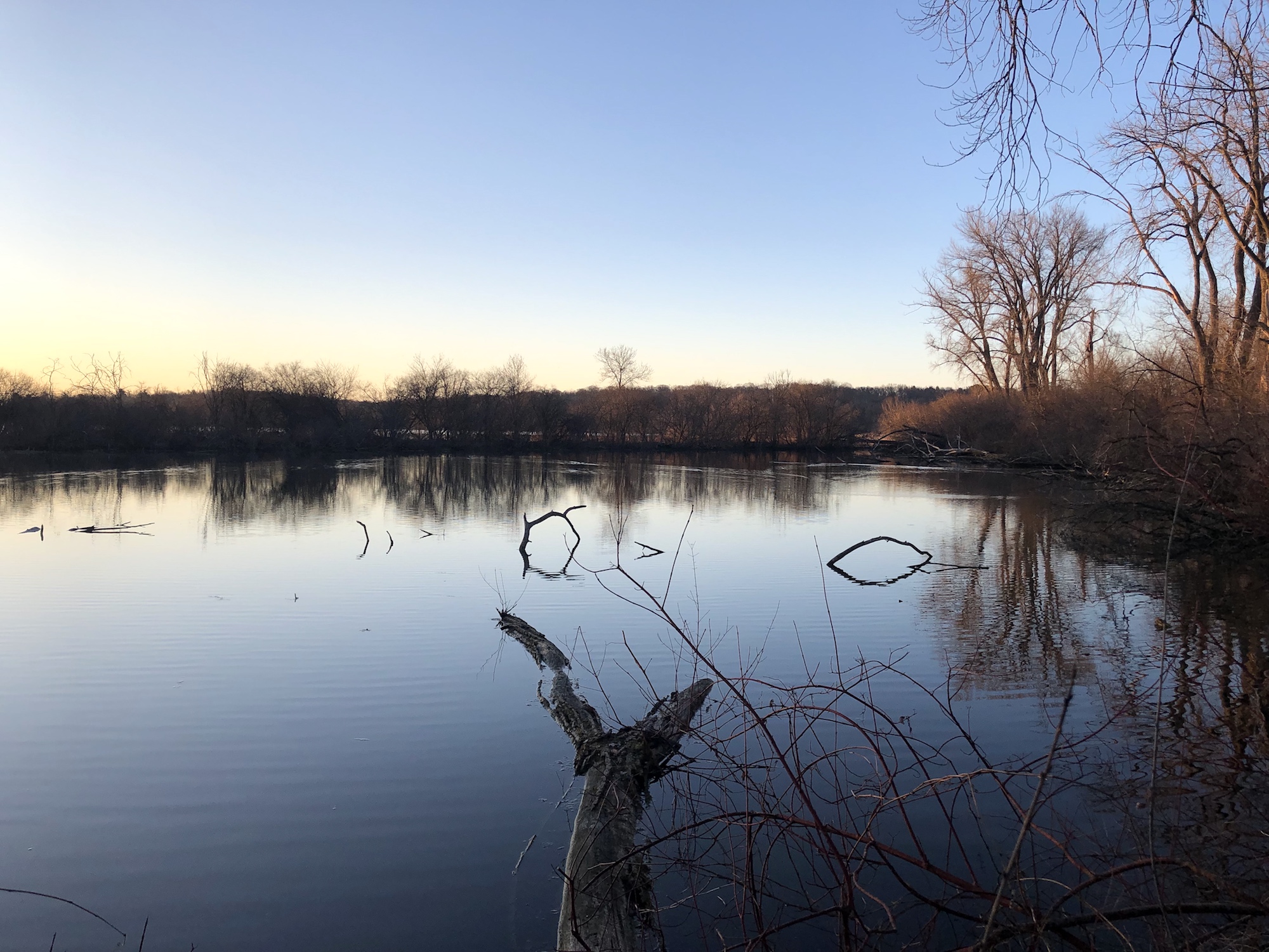 Above: Marion-Dunn Retaining Pond on April 3, 2019 (36°).