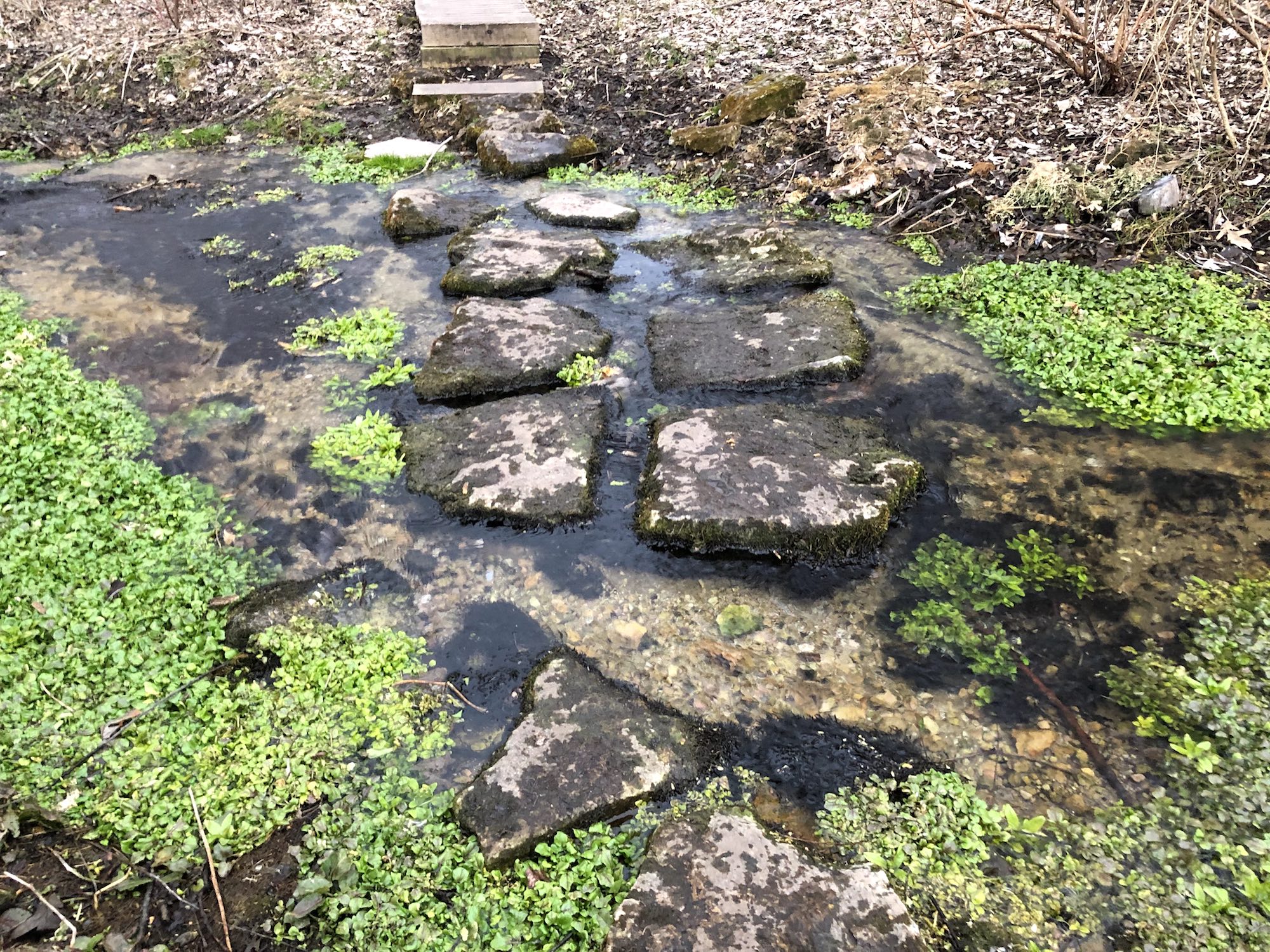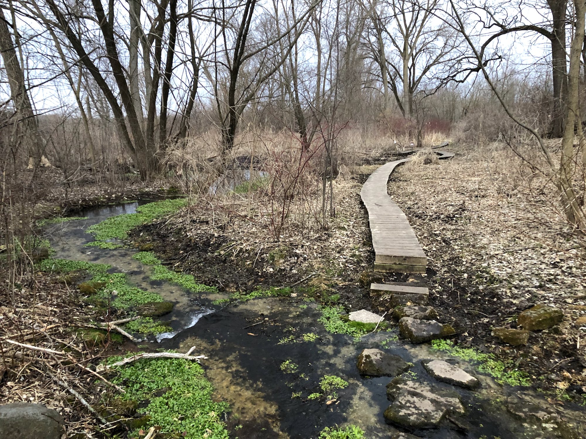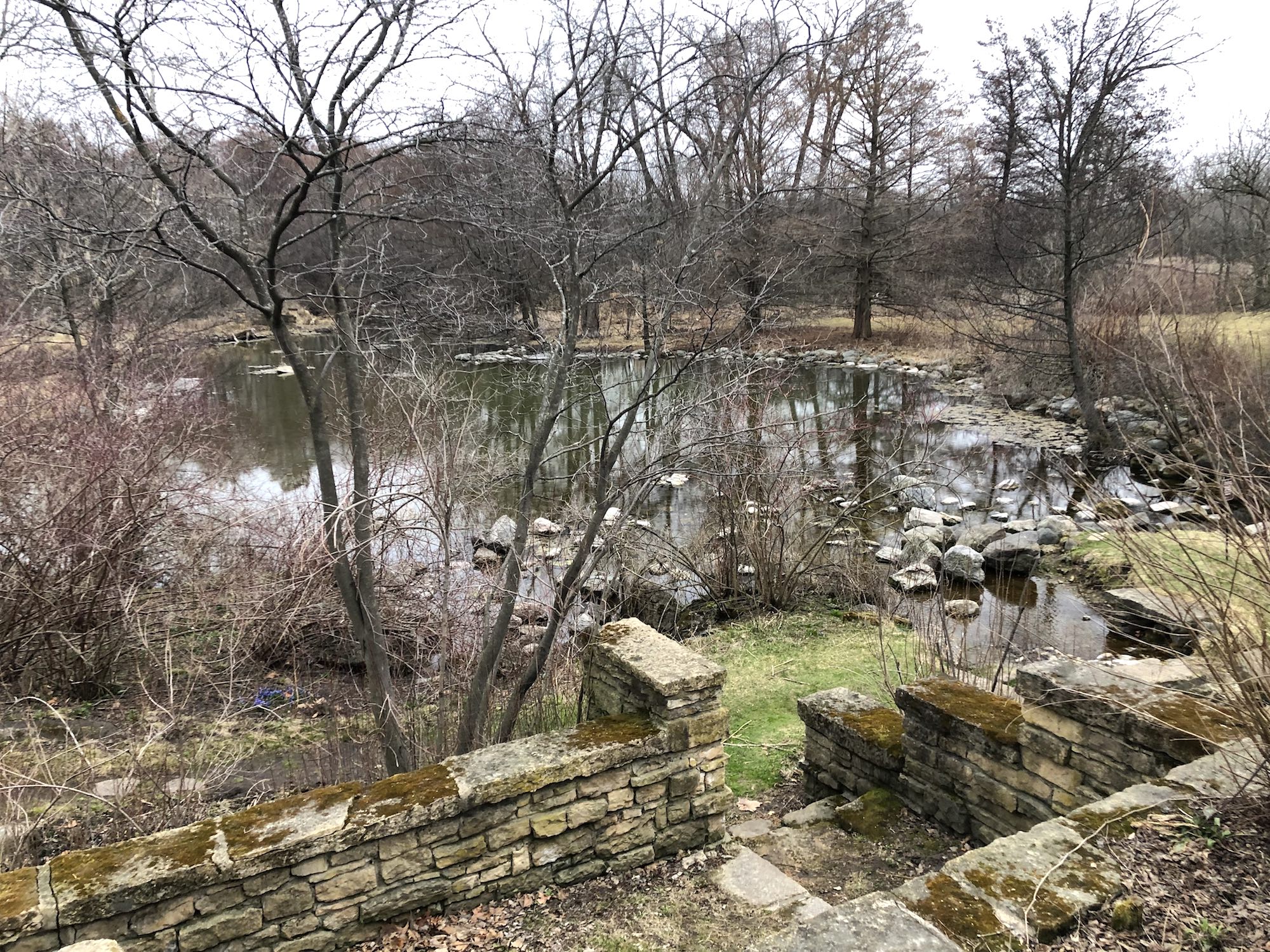 Above: Retaining pond on corner of Nakoma Road and Manitou Way on April 4, 2019 (41°).