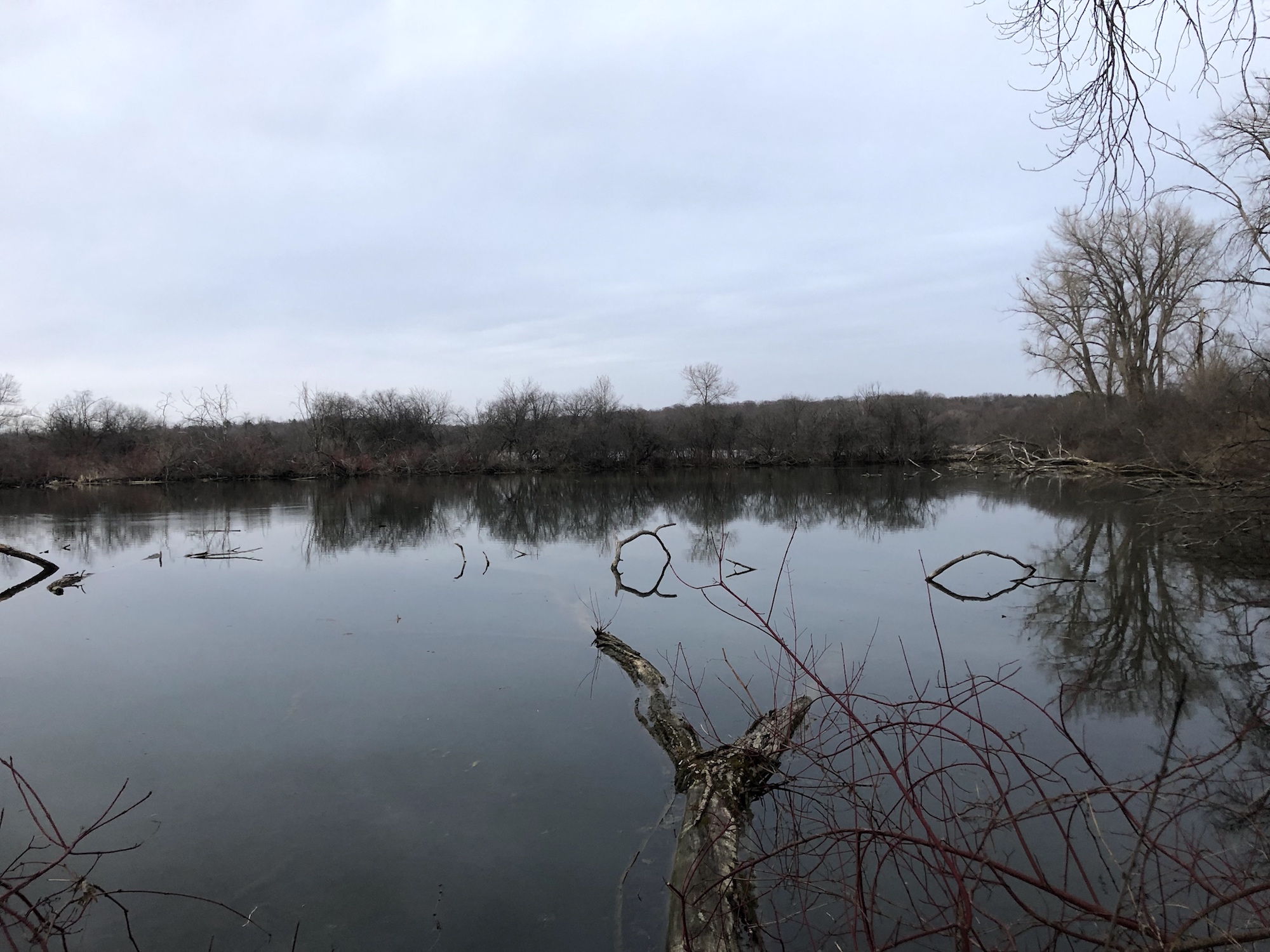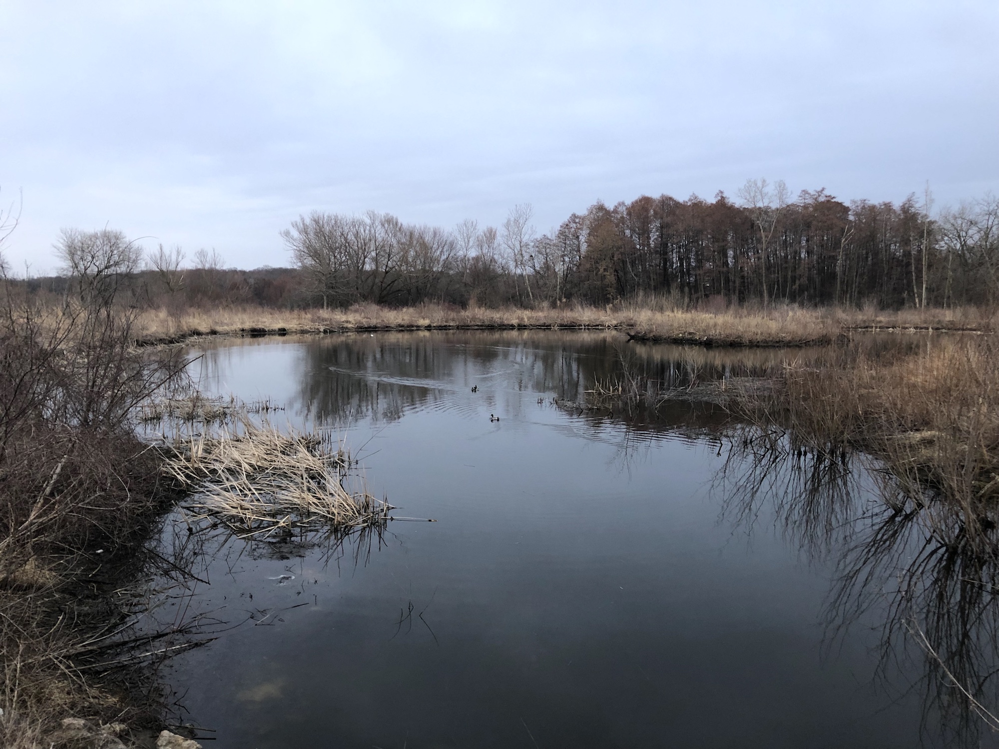 Above: Marion-Dunn Retaining Pond on April 4, 2019 (41°).