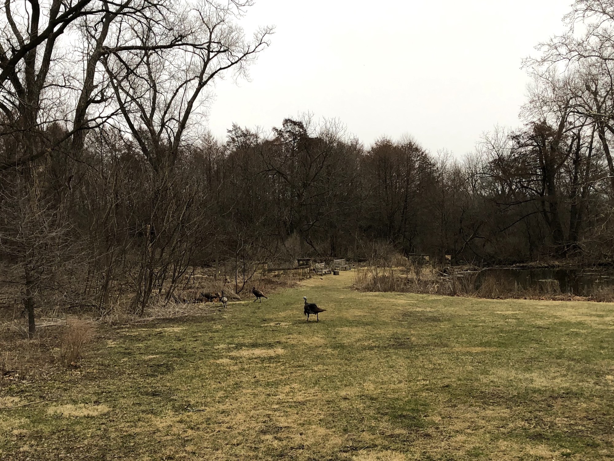 Below: Rafter of Wild Turkeys by Duck Pond.