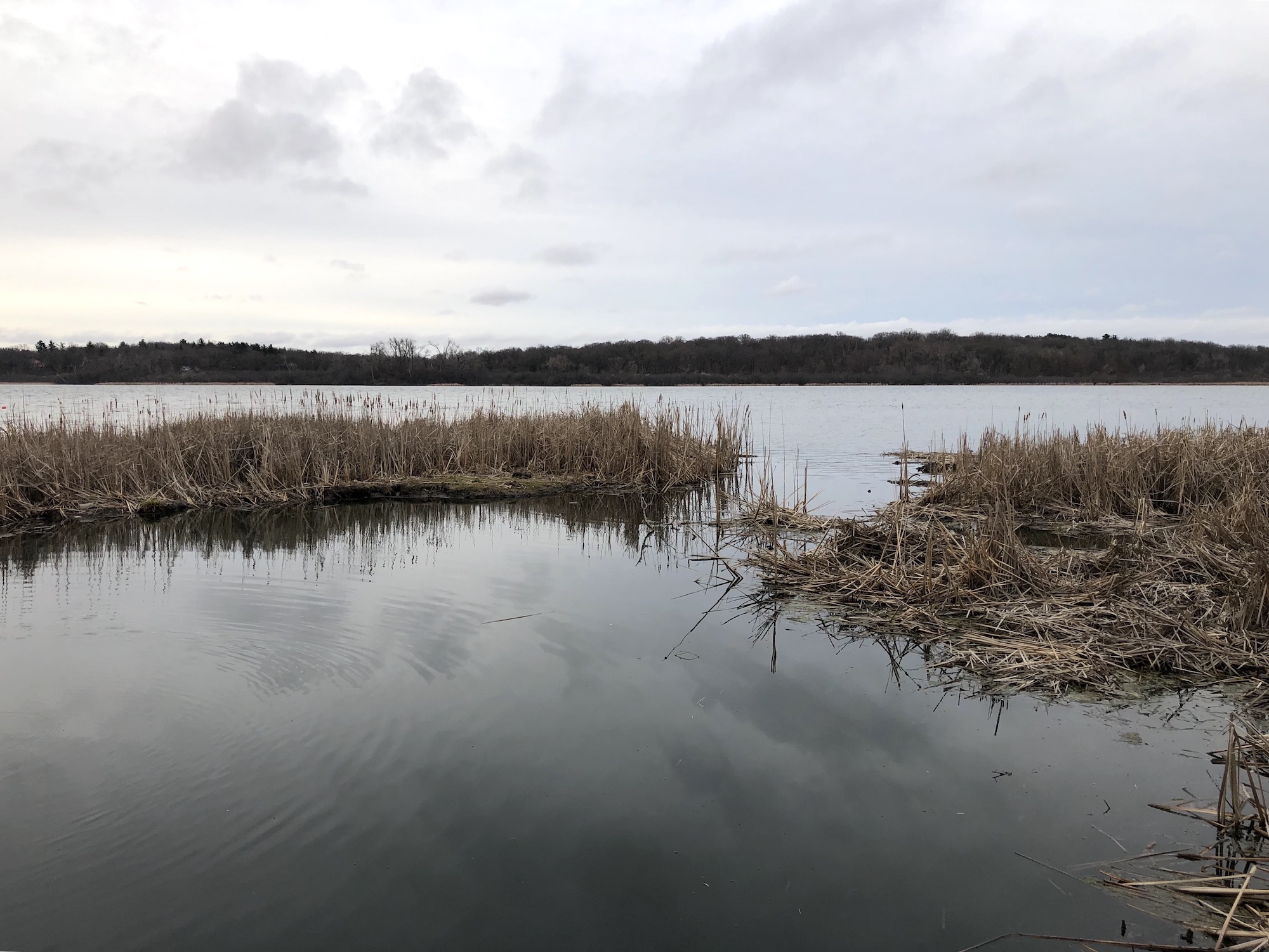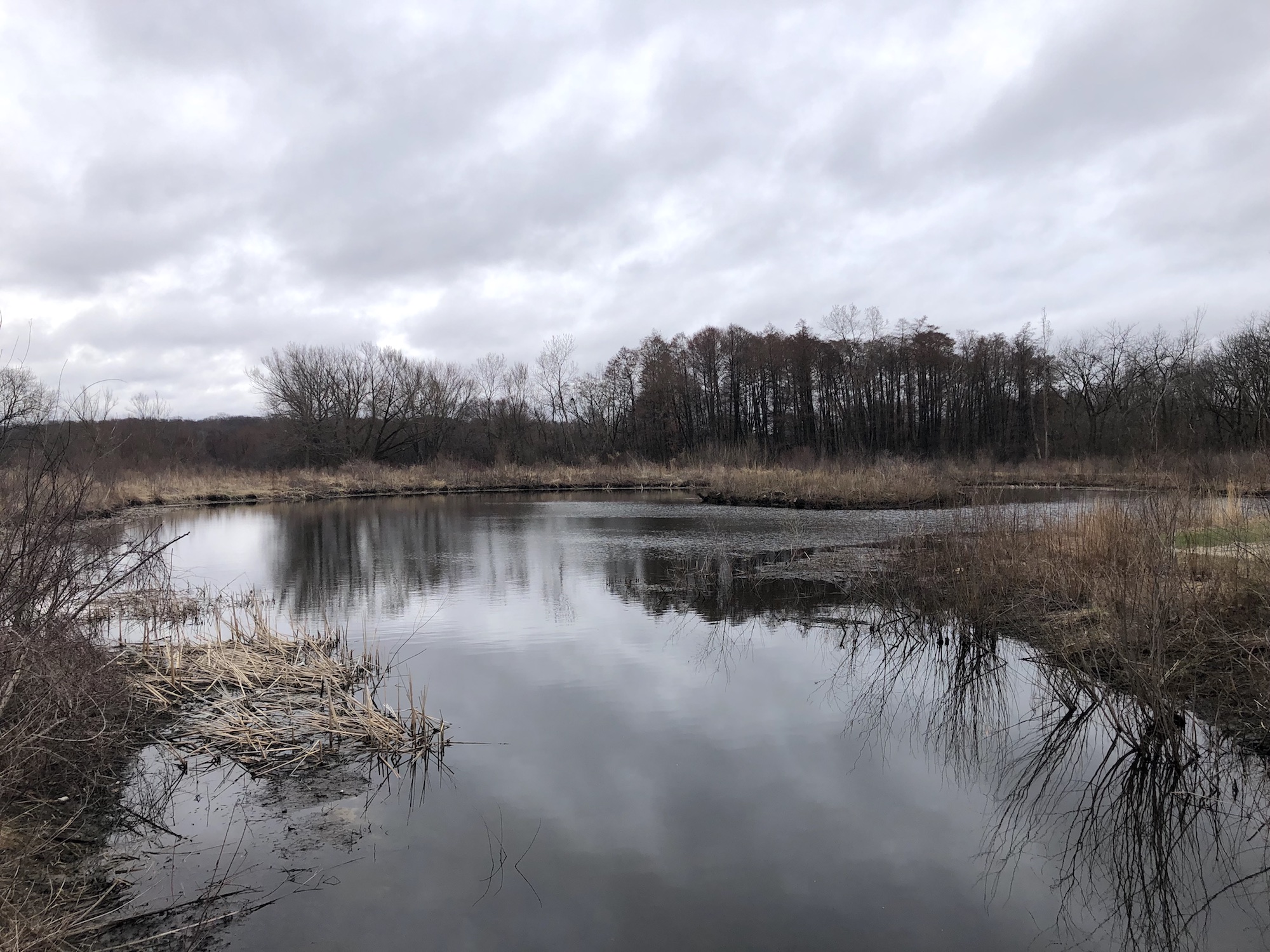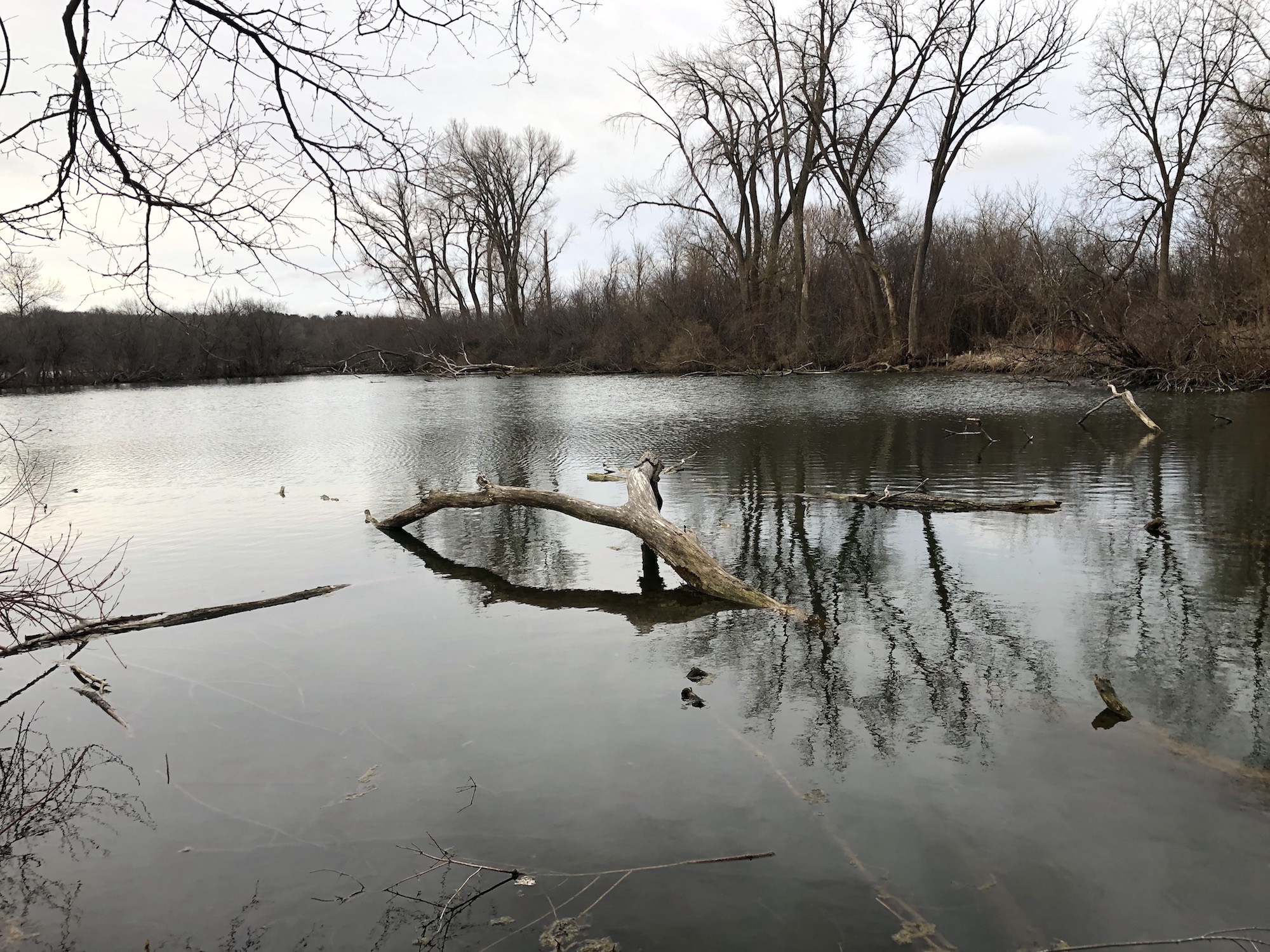 Above: Marion-Dunn Retaining Pond on April 10, 2019 (33°).