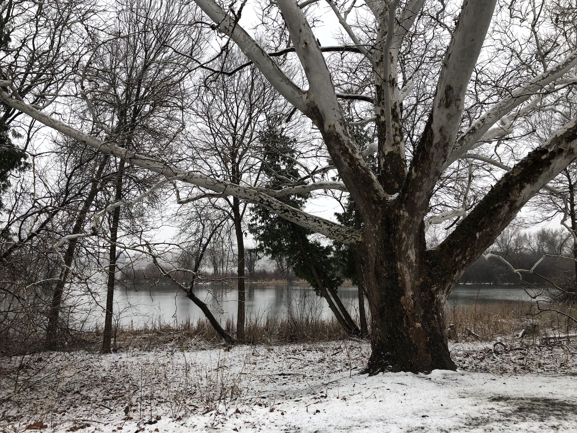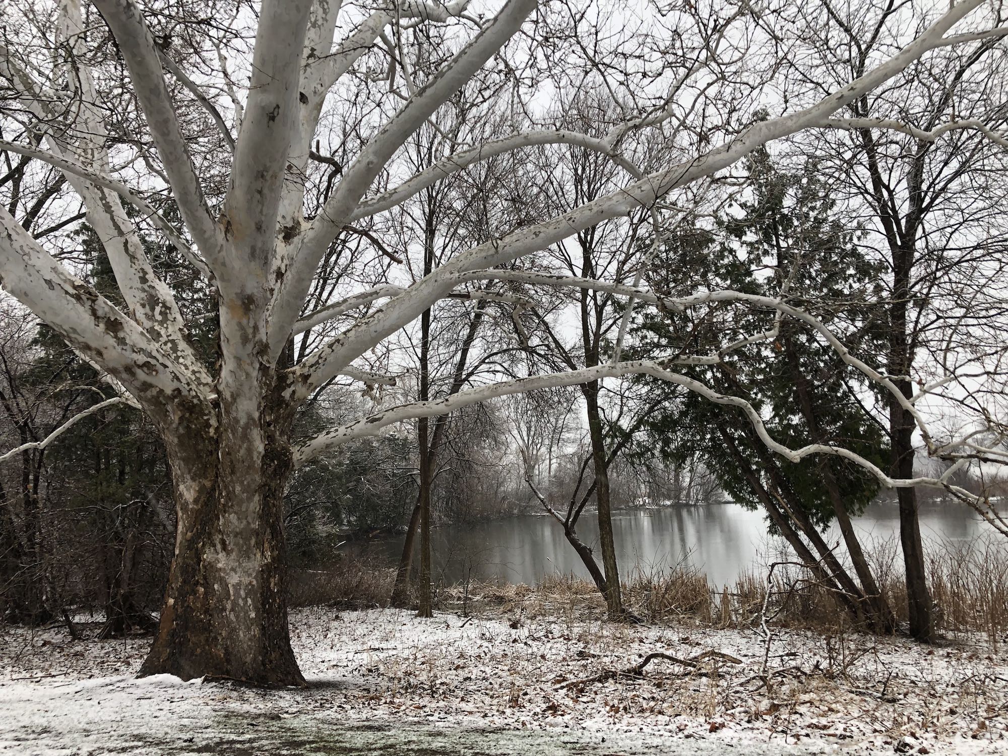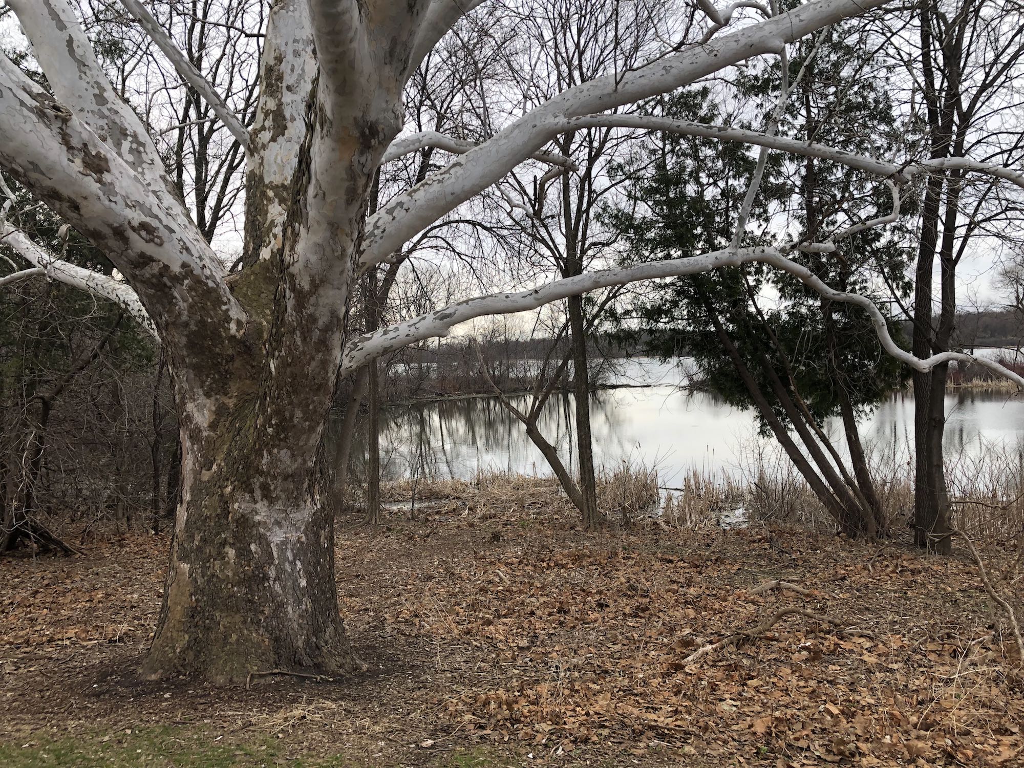 Below: Sycamore overlooking Ho-Nee-Um Pond in afternoon - 4:00 PM.