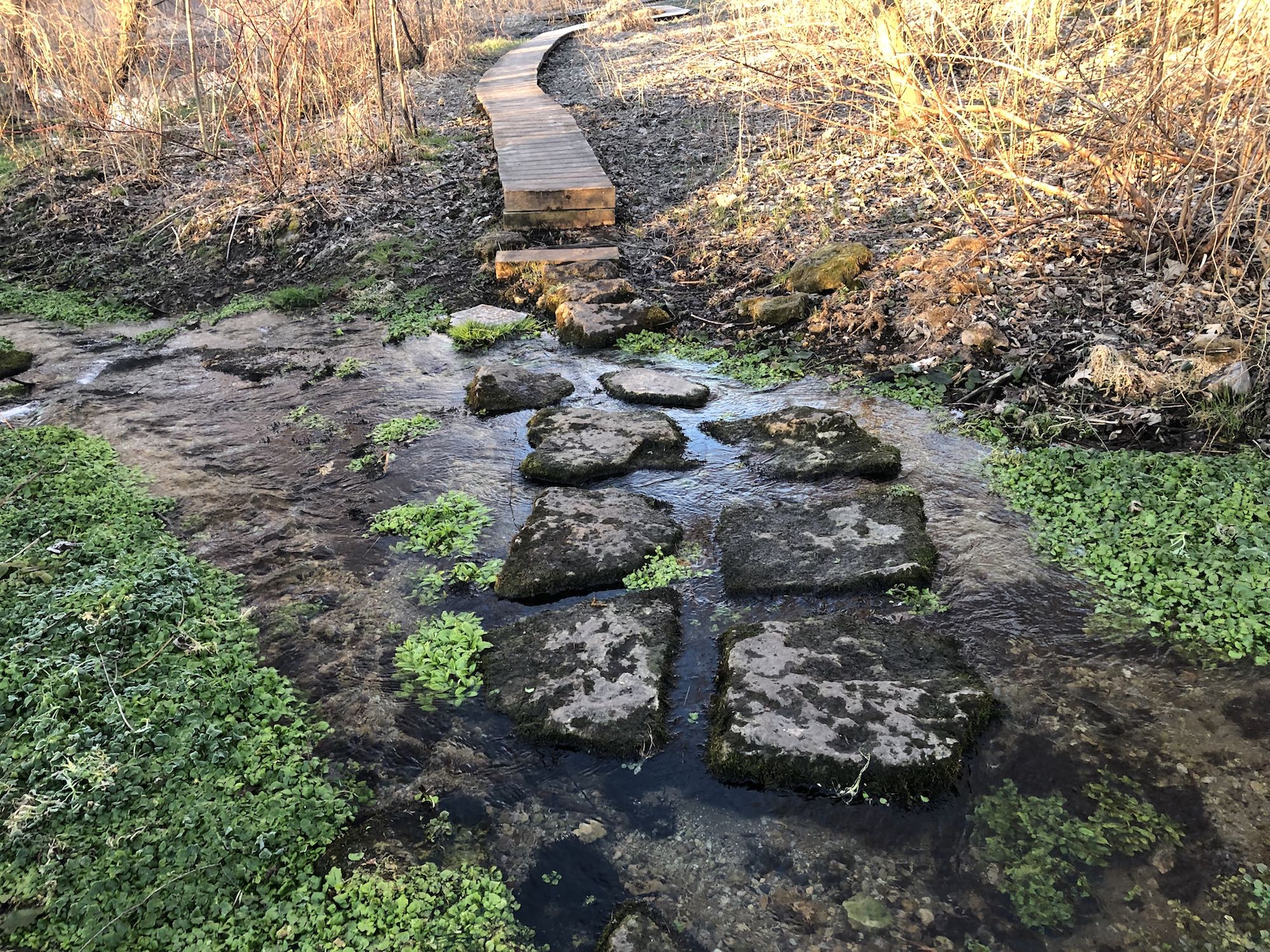 Above: Retaining pond on corner of Nakoma Road and Manitou Way on April 15, 2019 (31°).