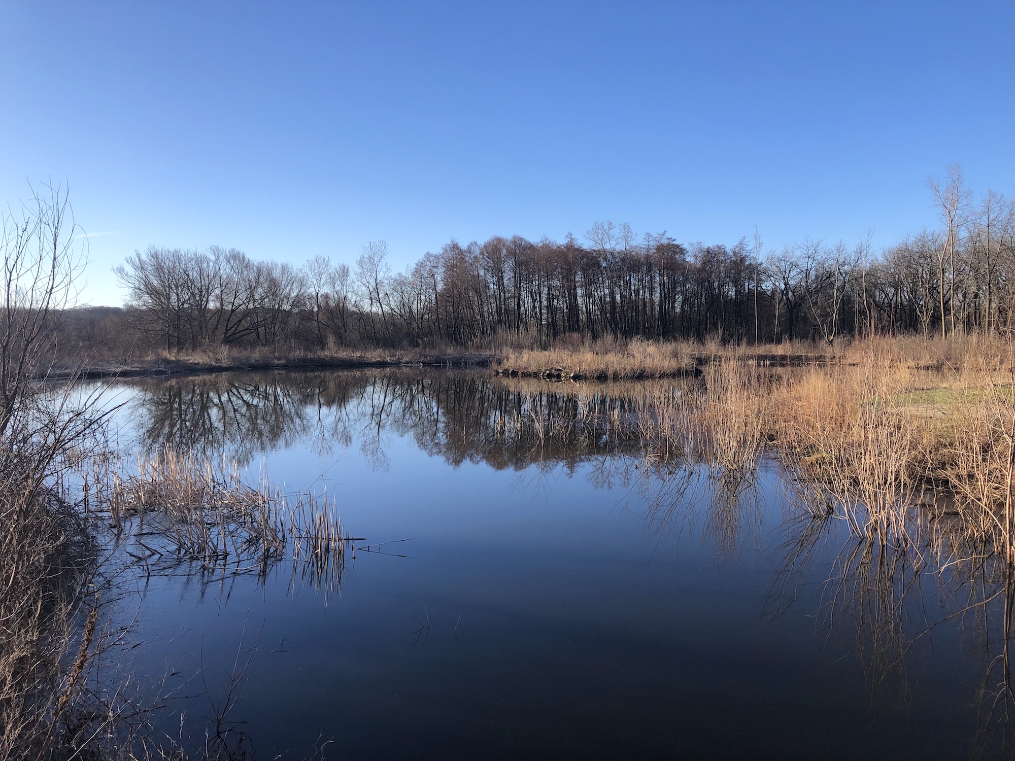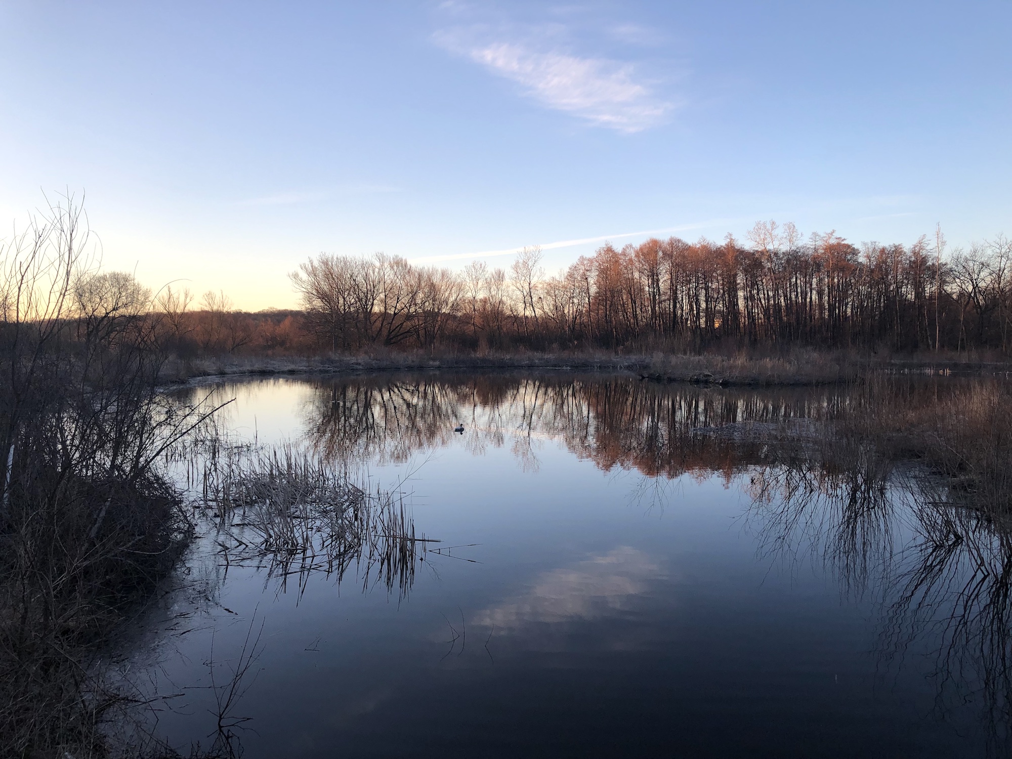 Above: Marion-Dunn Retaining Pond on April 15, 2019 (31°).
