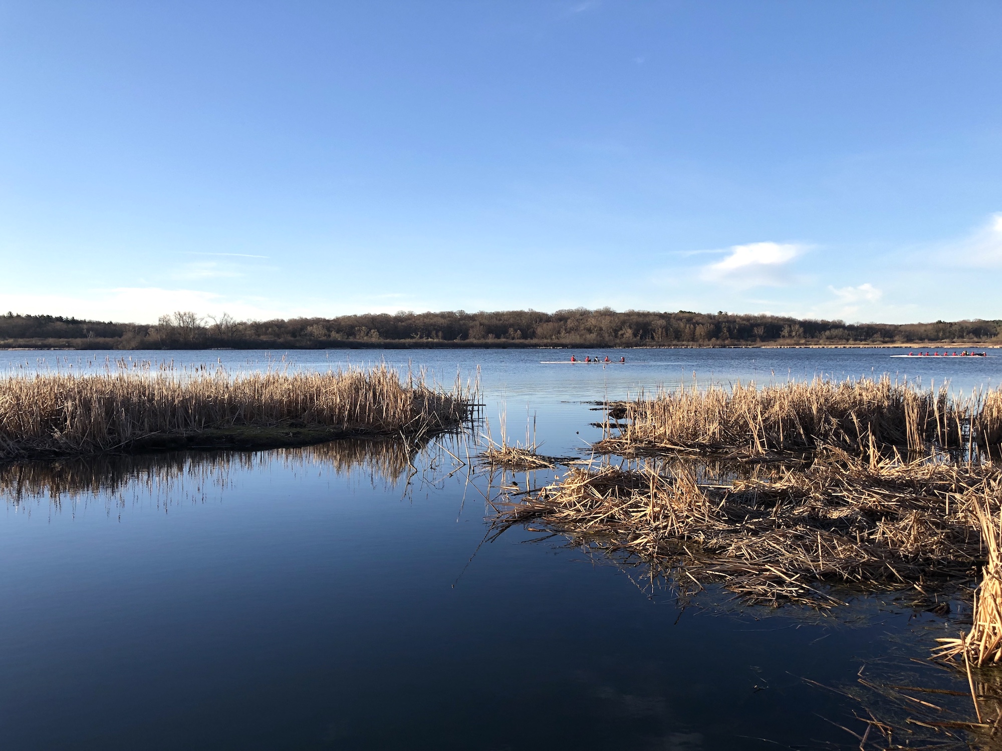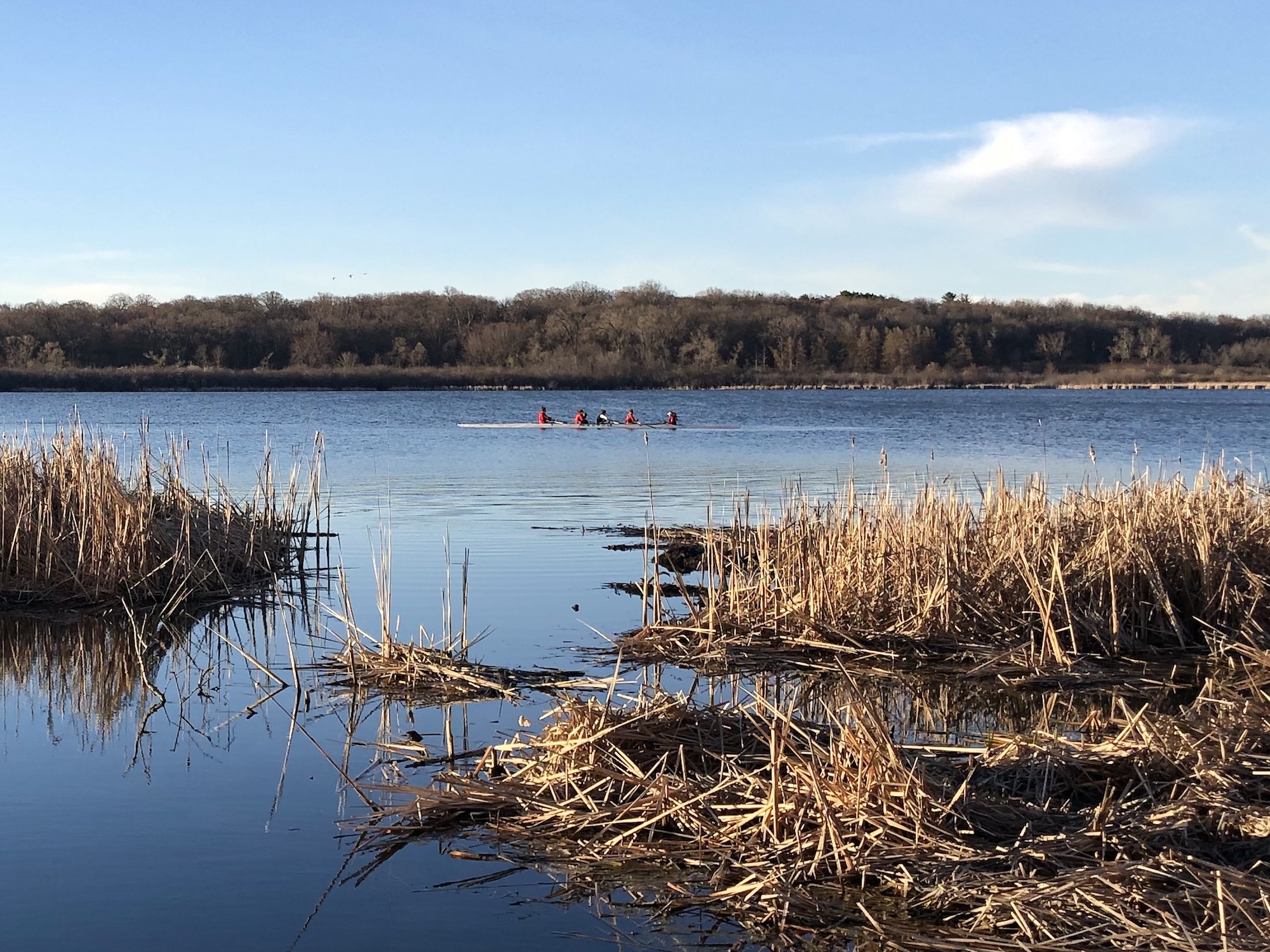 Note: Redwing Blackbirds in cattails. Mallards. Canada Geese. UW Women's Crew practicing on Lake Wingra.