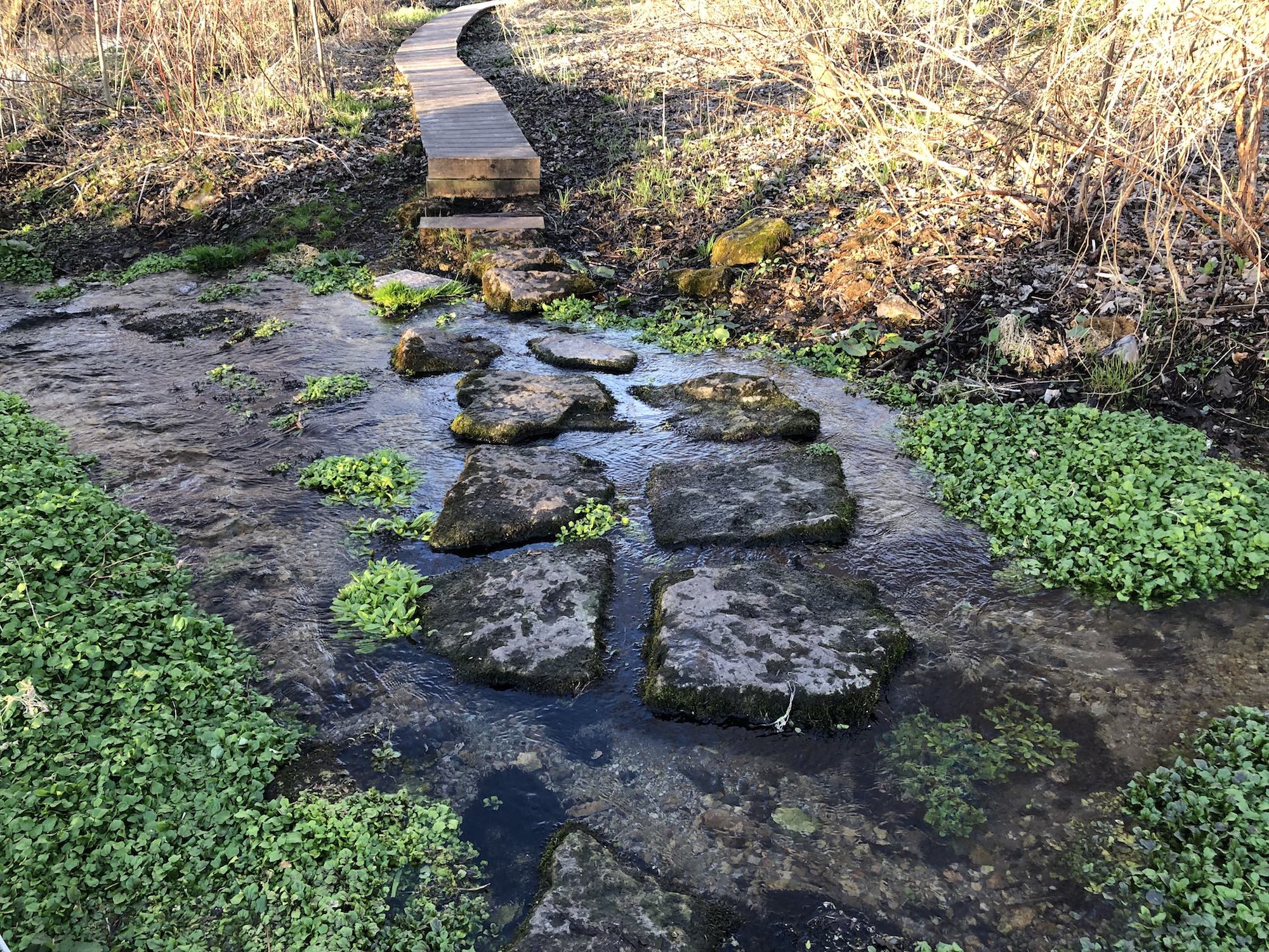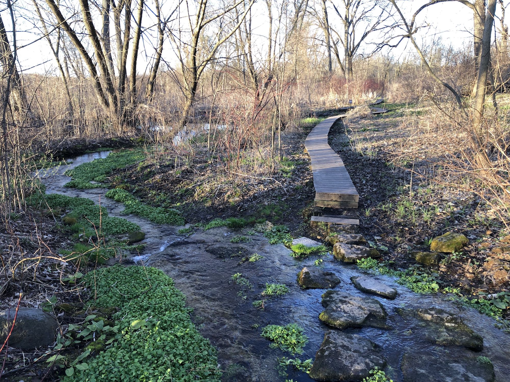 Above: Retaining pond on corner of Nakoma Road and Manitou Way on April 19, 2019 (39°).