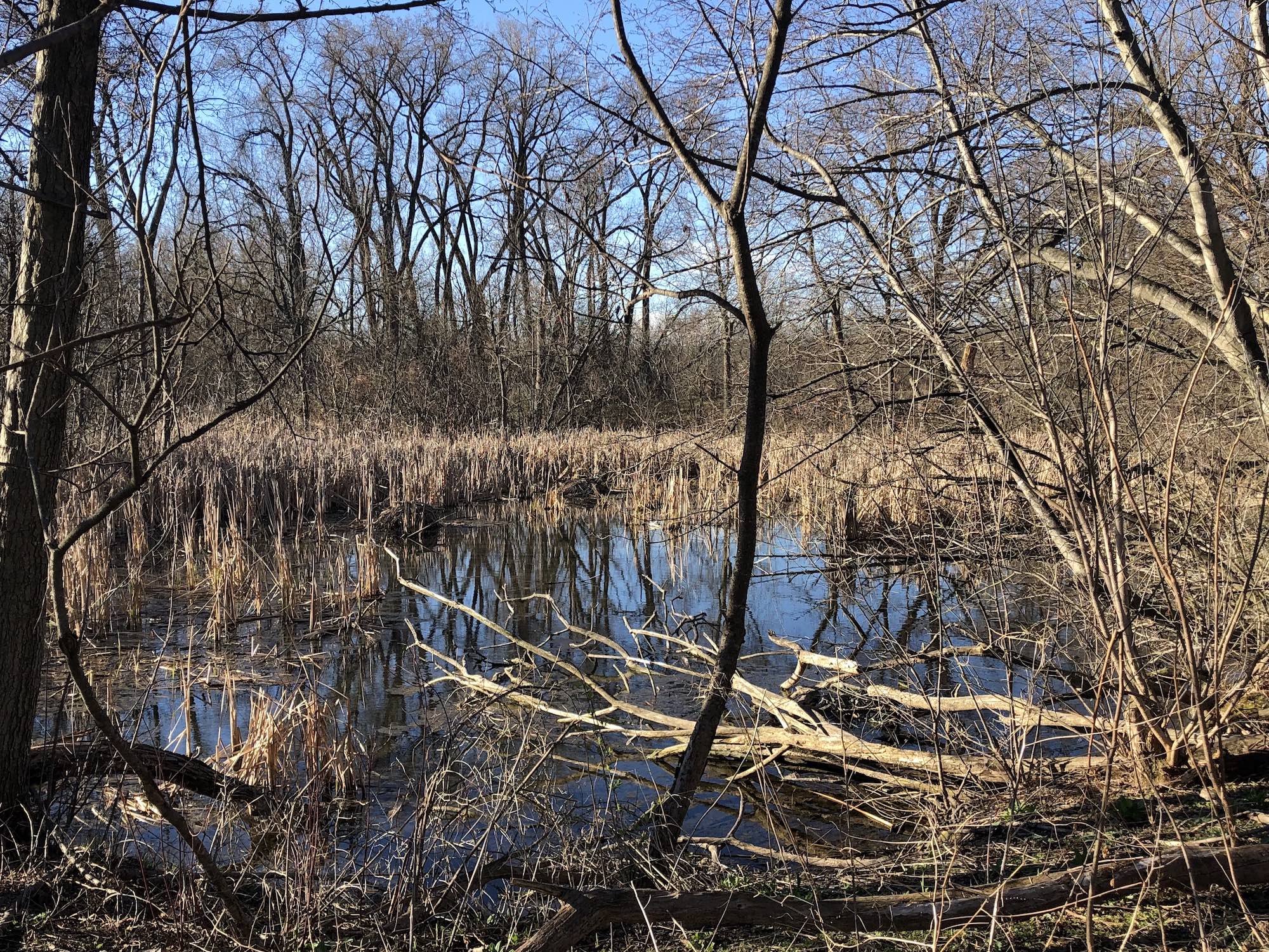 Above: Marion-Dunn Retaining Pond on April 19, 2019 (39°).