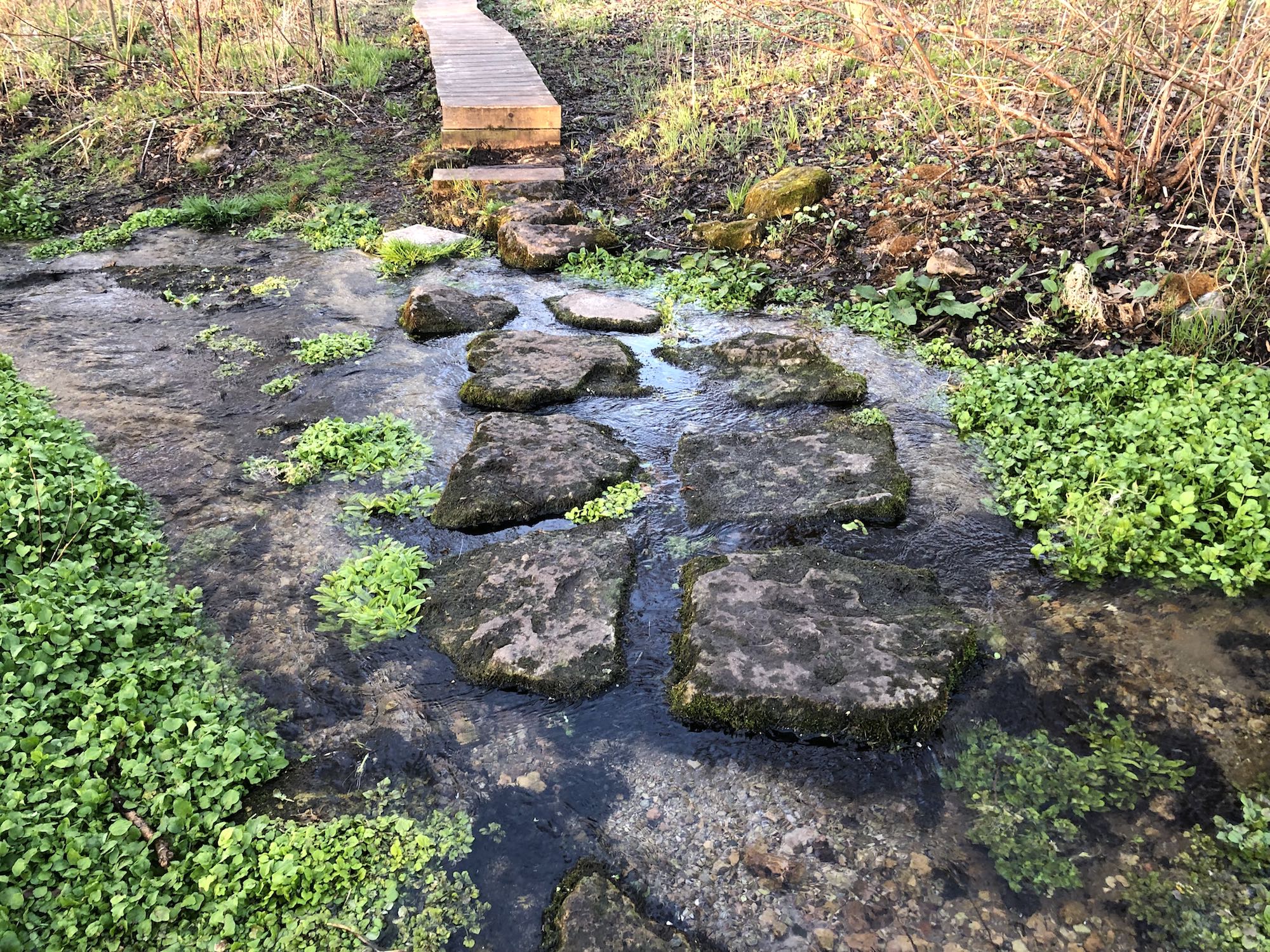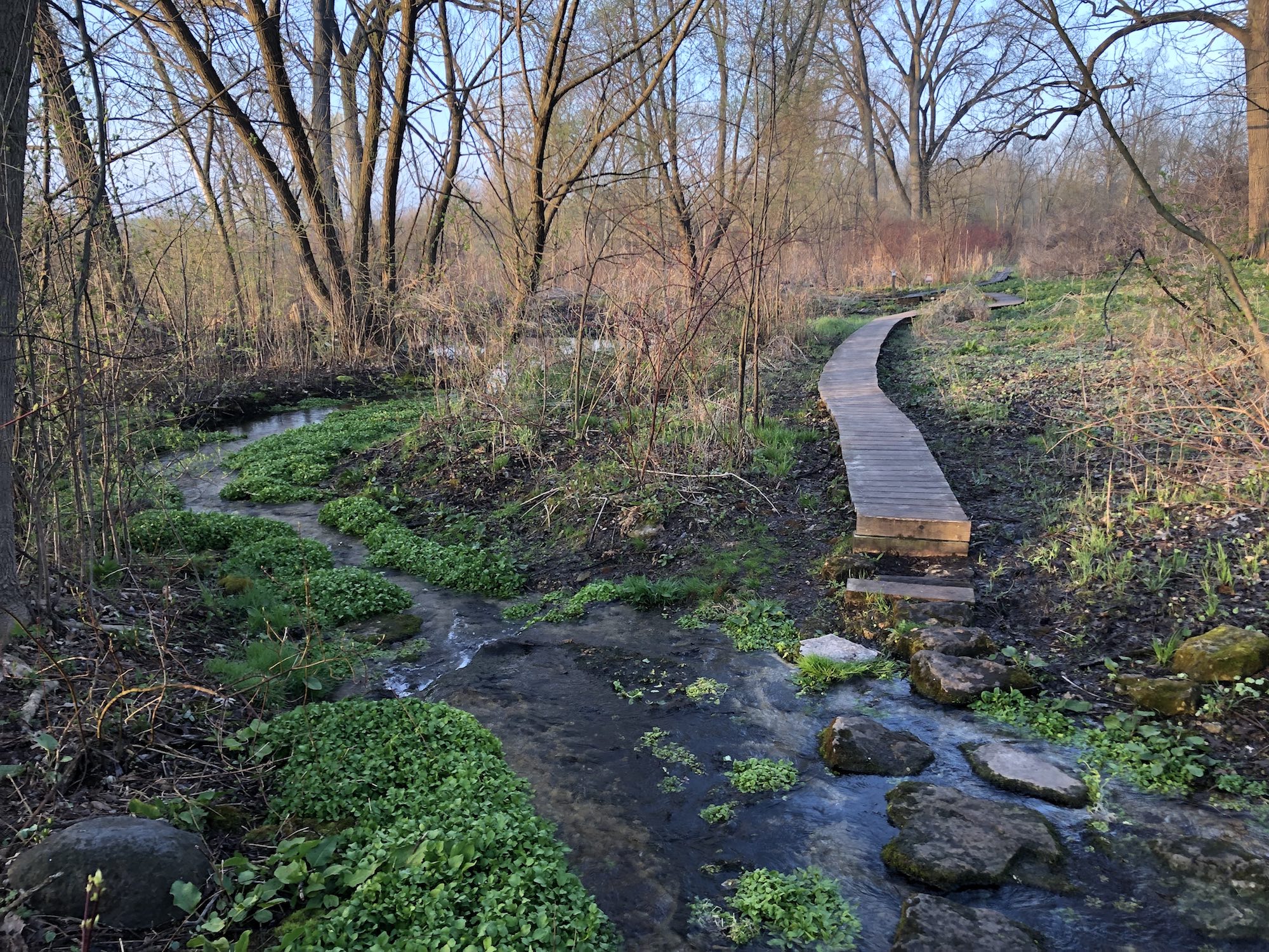 Above: Retaining pond on corner of Nakoma Road and Manitou Way on April 24, 2019 (42°).