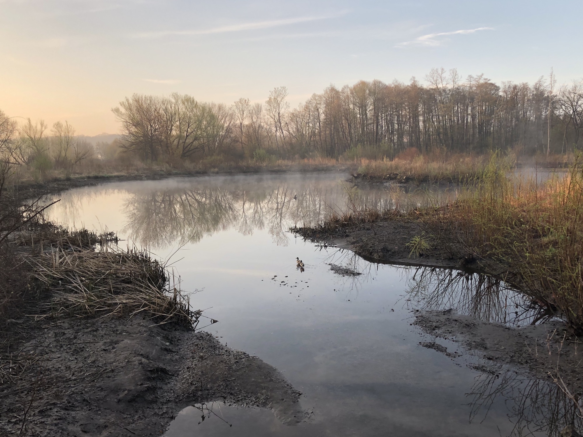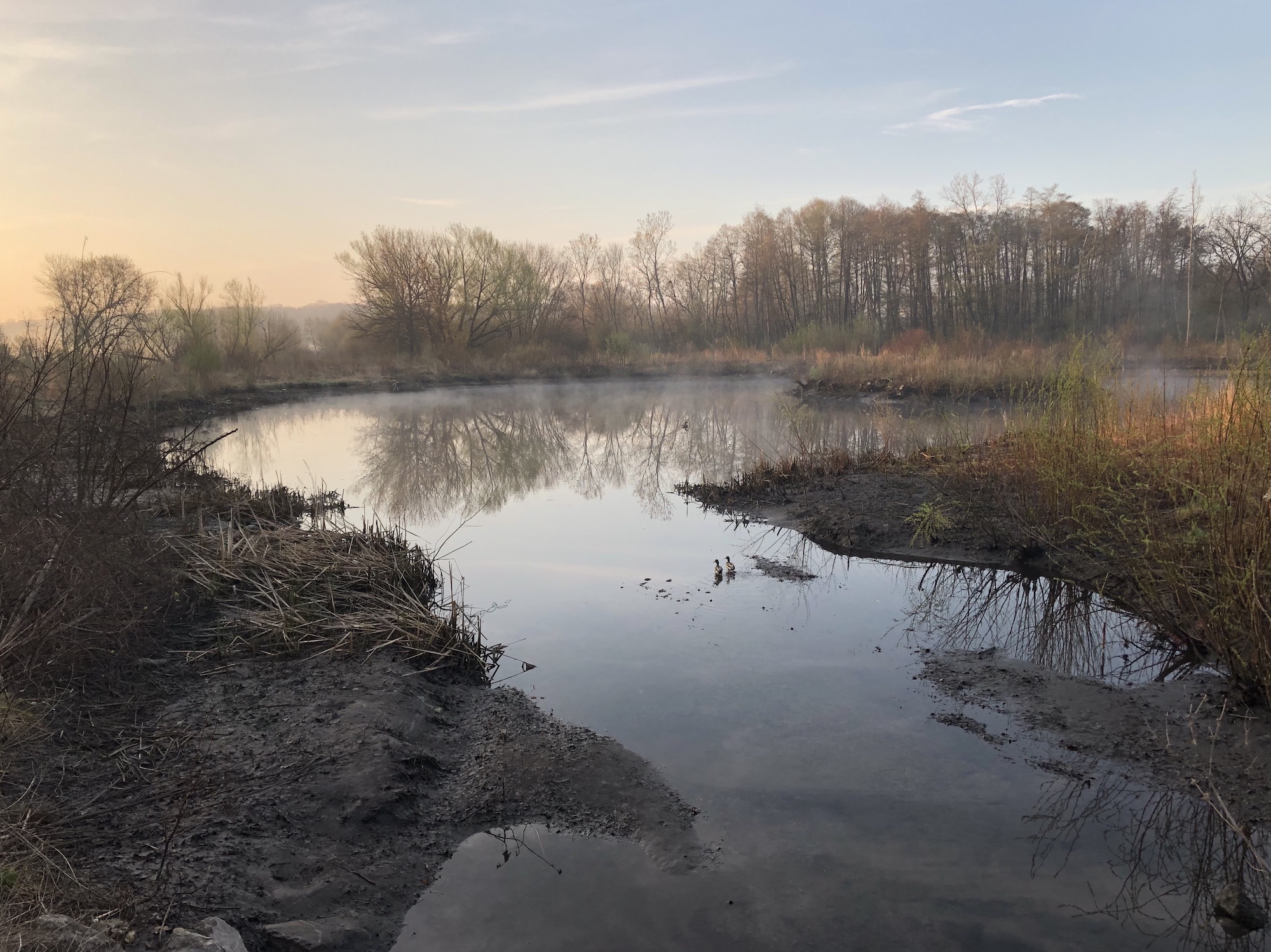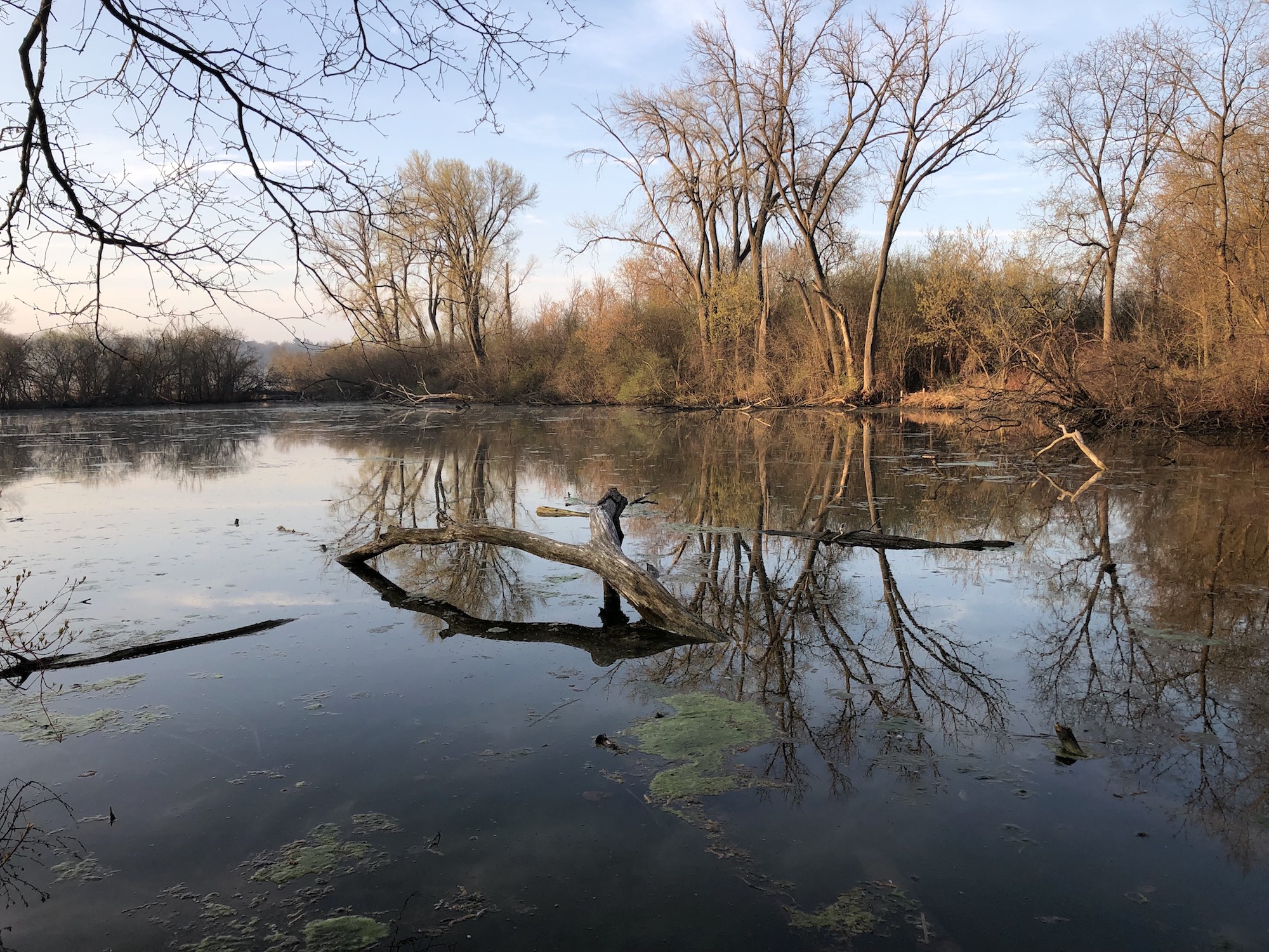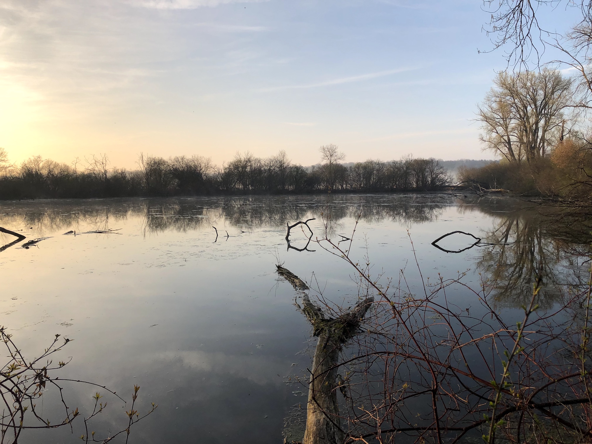 Above: Marion-Dunn Retaining Pond on April 24, 2019 (42°).