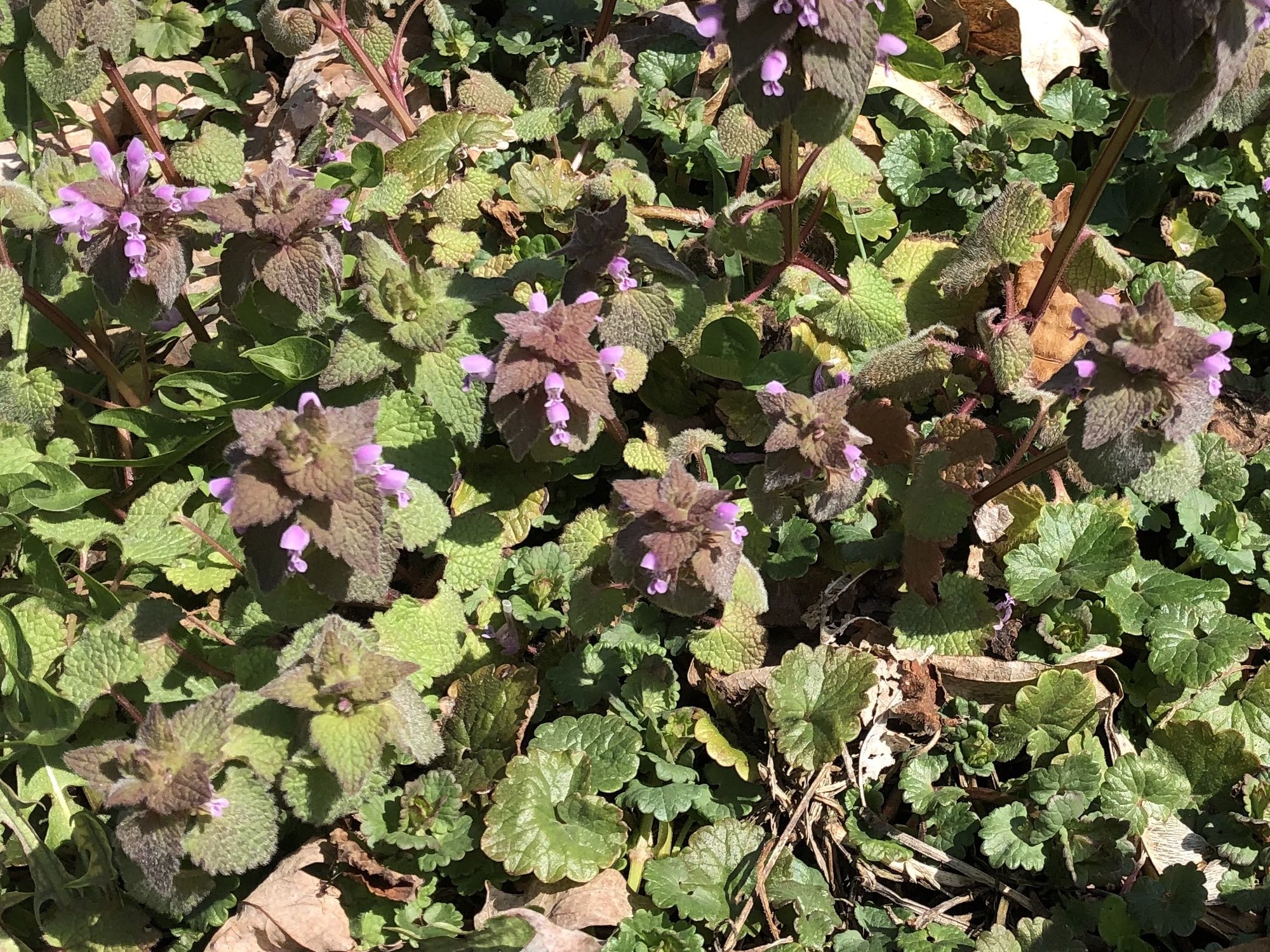Above: Purple dead-nettle near retaining pond on corner of Nakoma Road and Manitou Way on April 24, 2019 (42°).