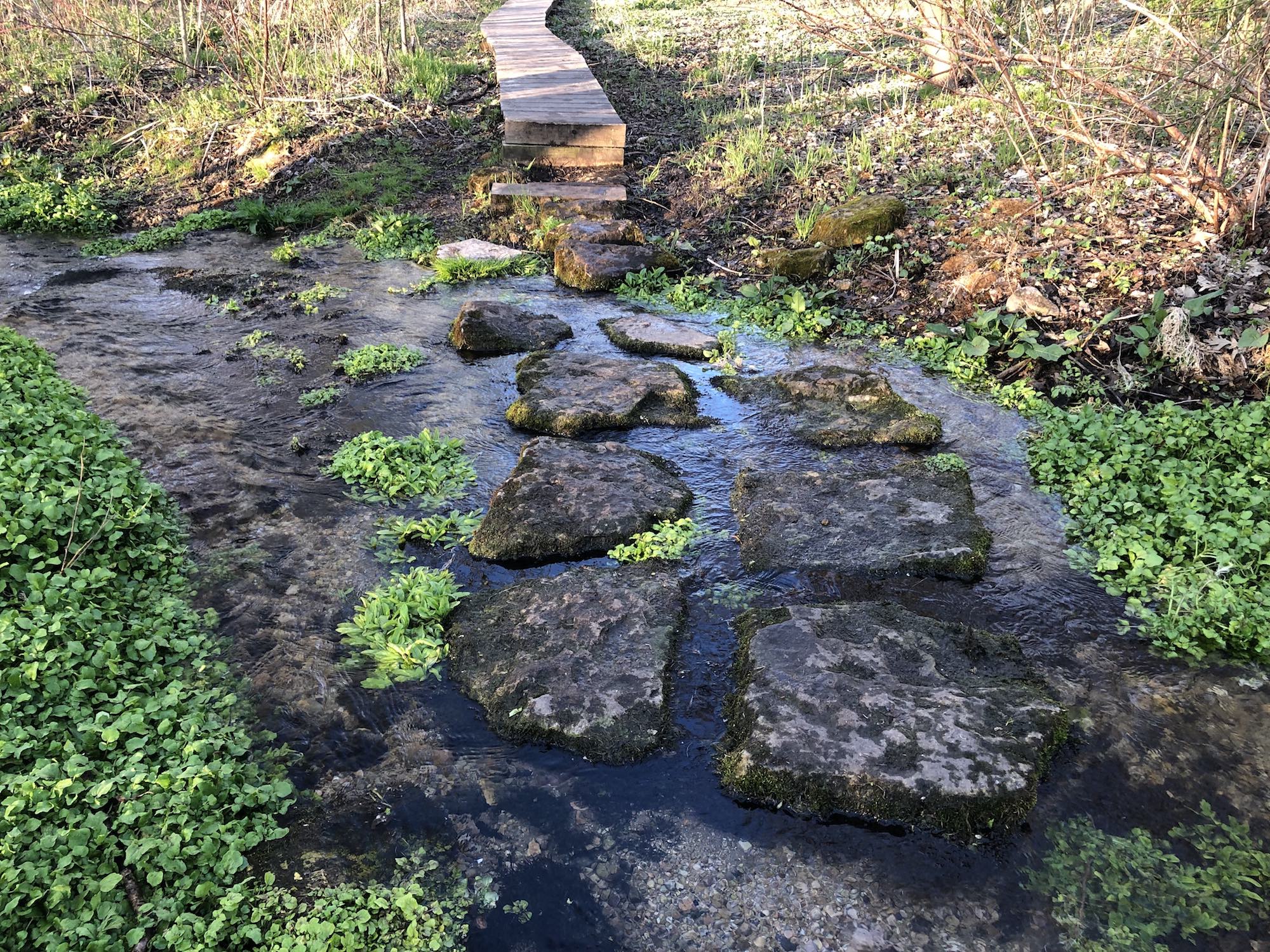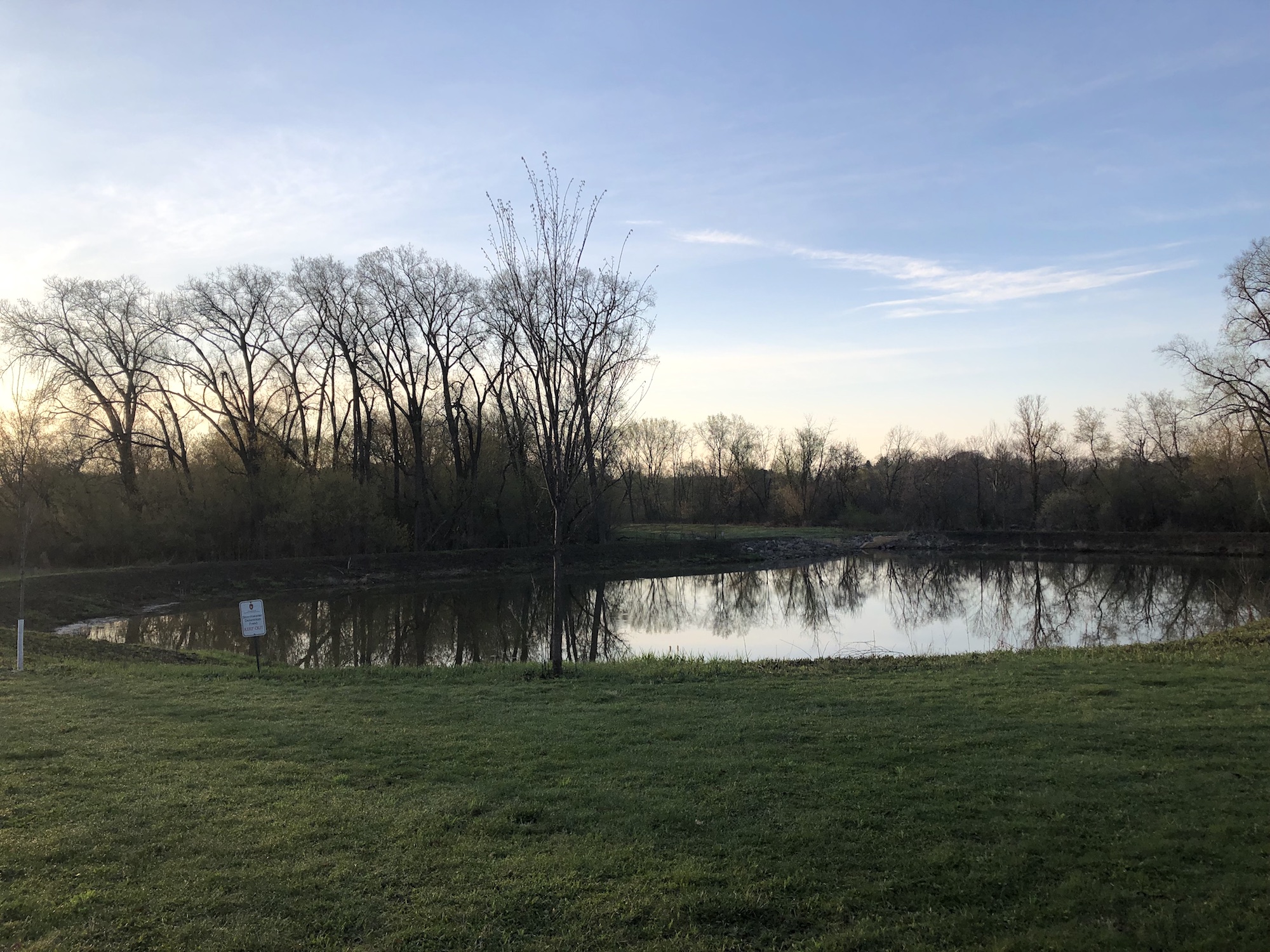 Above: Retaining pond on corner of Nakoma Road and Manitou Way on April 25, 2019 (48°).