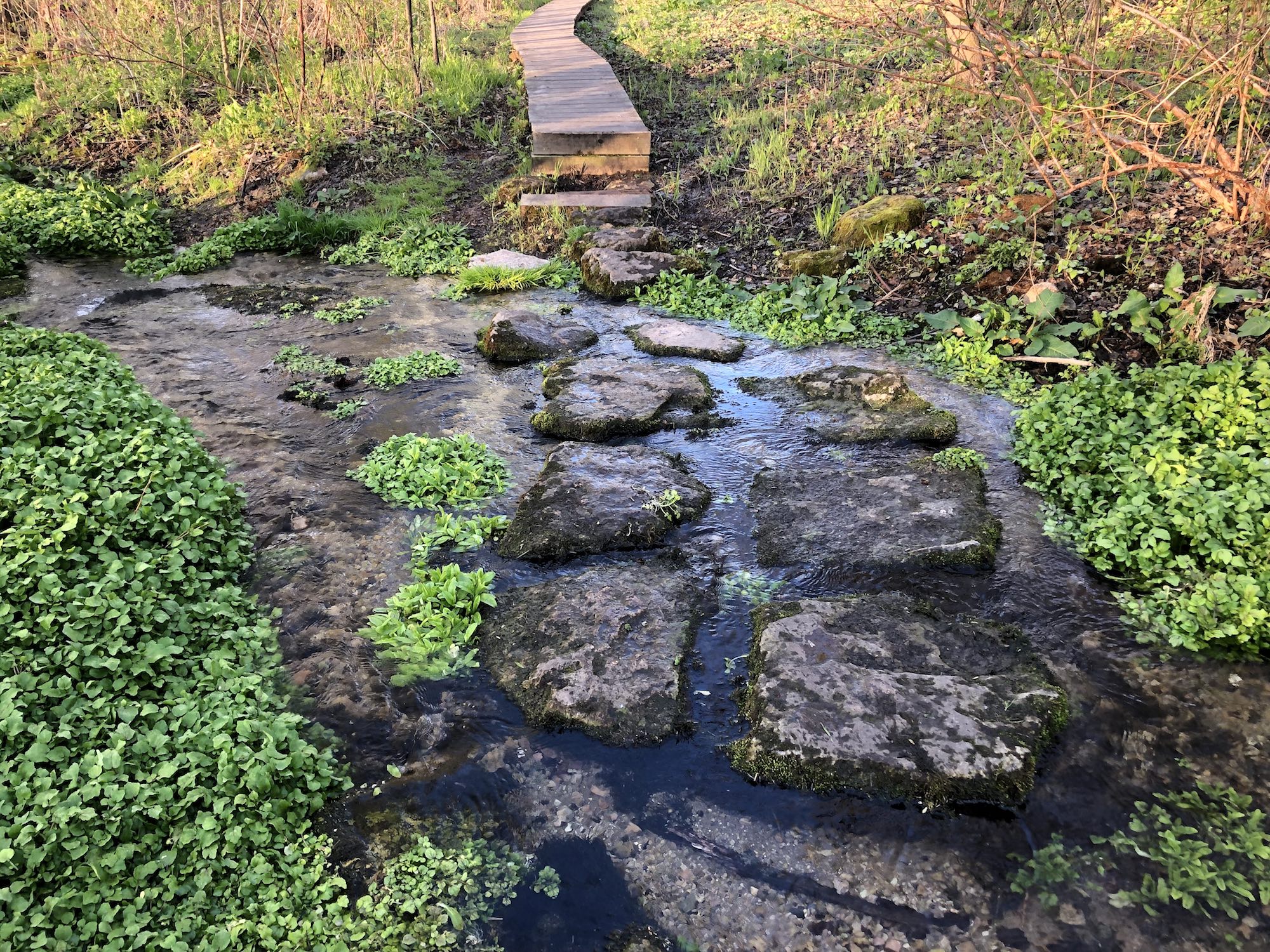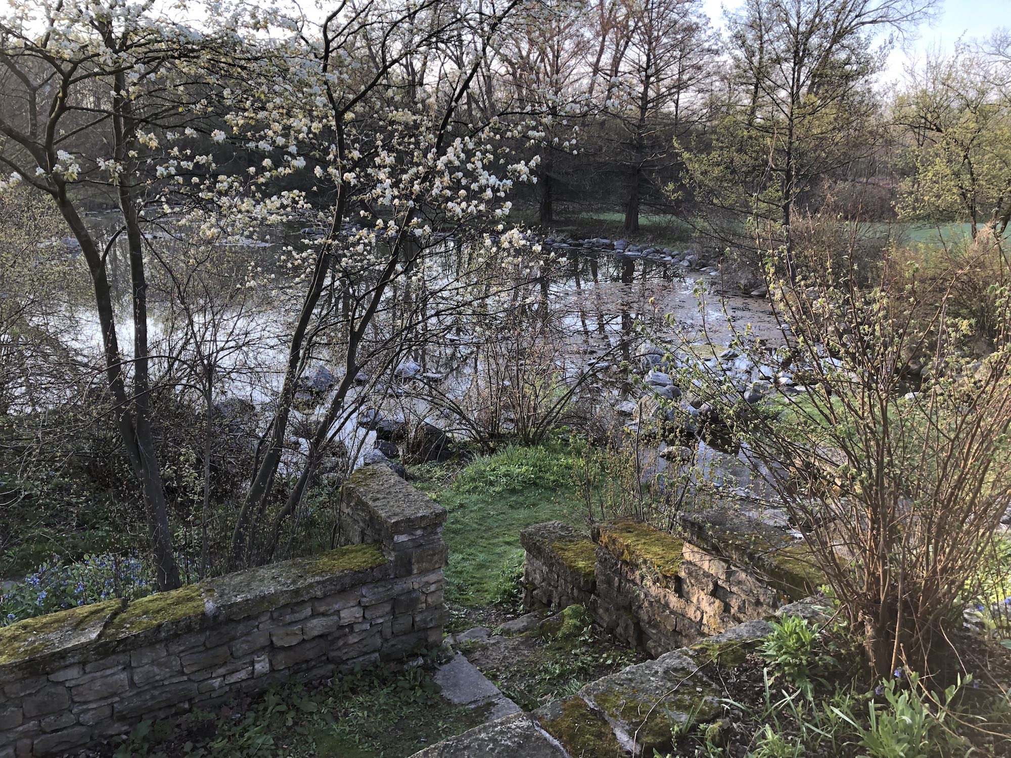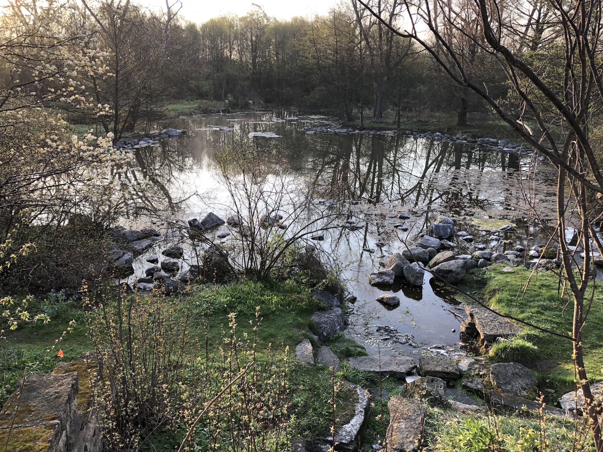 Above: Retaining pond on corner of Nakoma Road and Manitou Way on May 4, 2019 (40°).