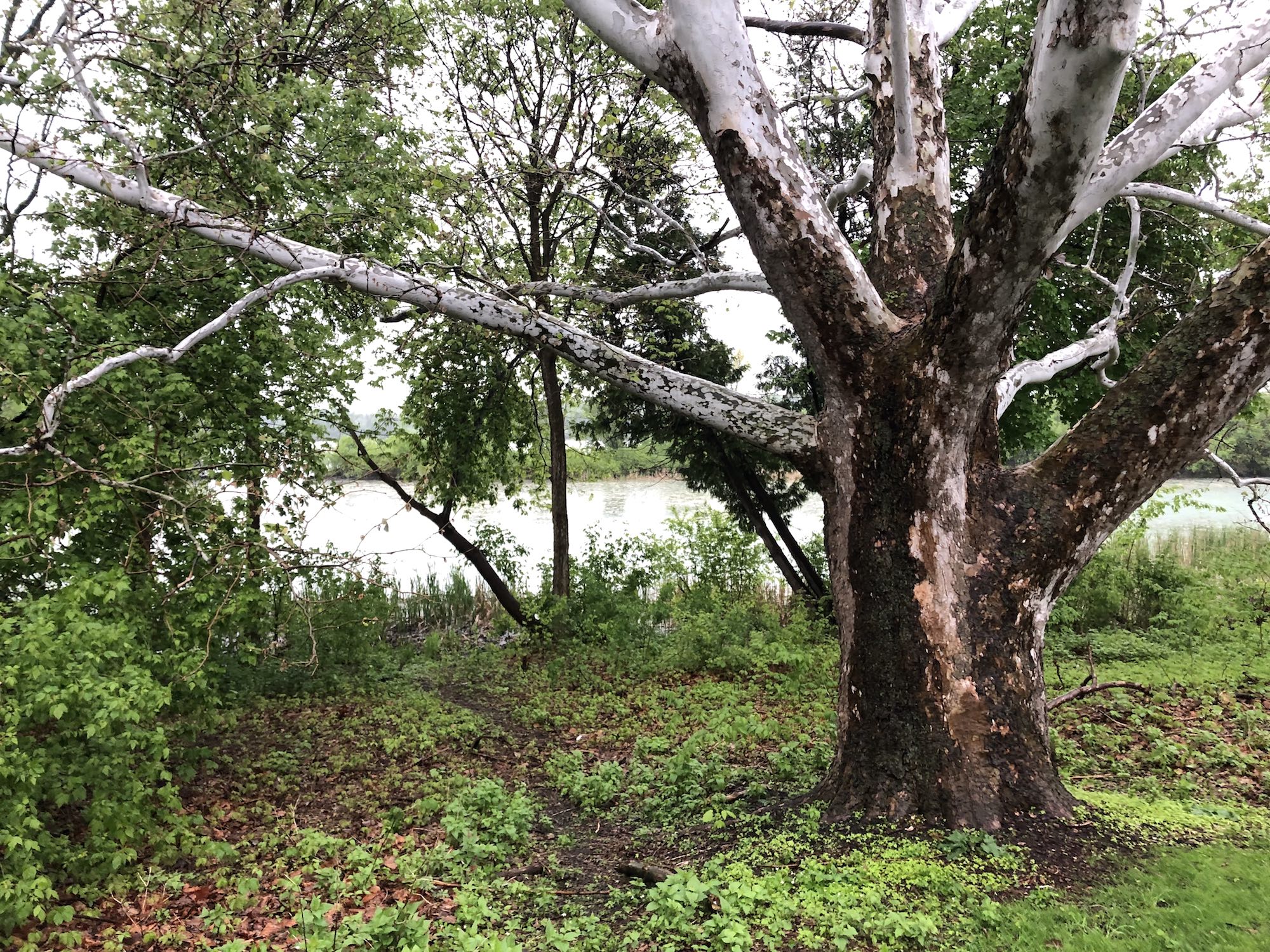 Above: Mayapples in woods along bike path that connects Nakoma road with Monore Street on May 24, 2019 (54°).