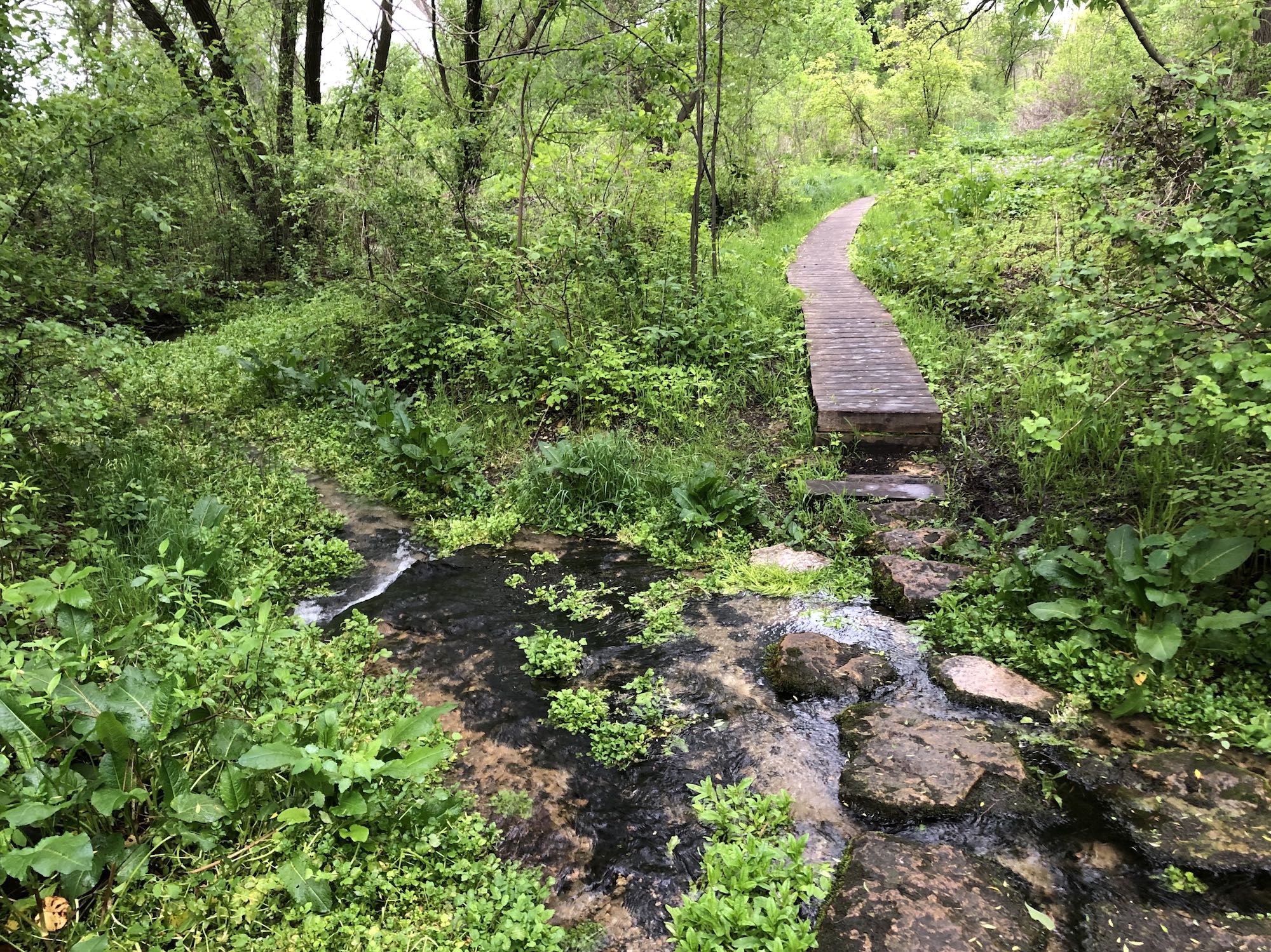 Above: Retaining pond on corner of Nakoma Road and Manitou Way on May 28, 2019 (53°).