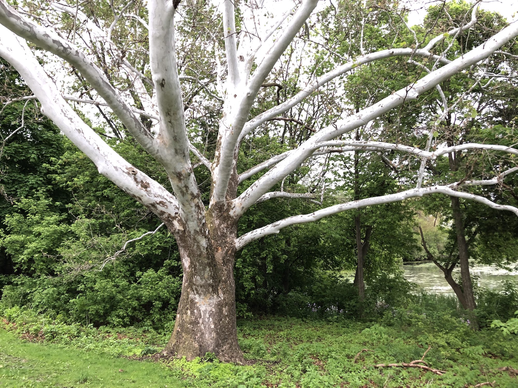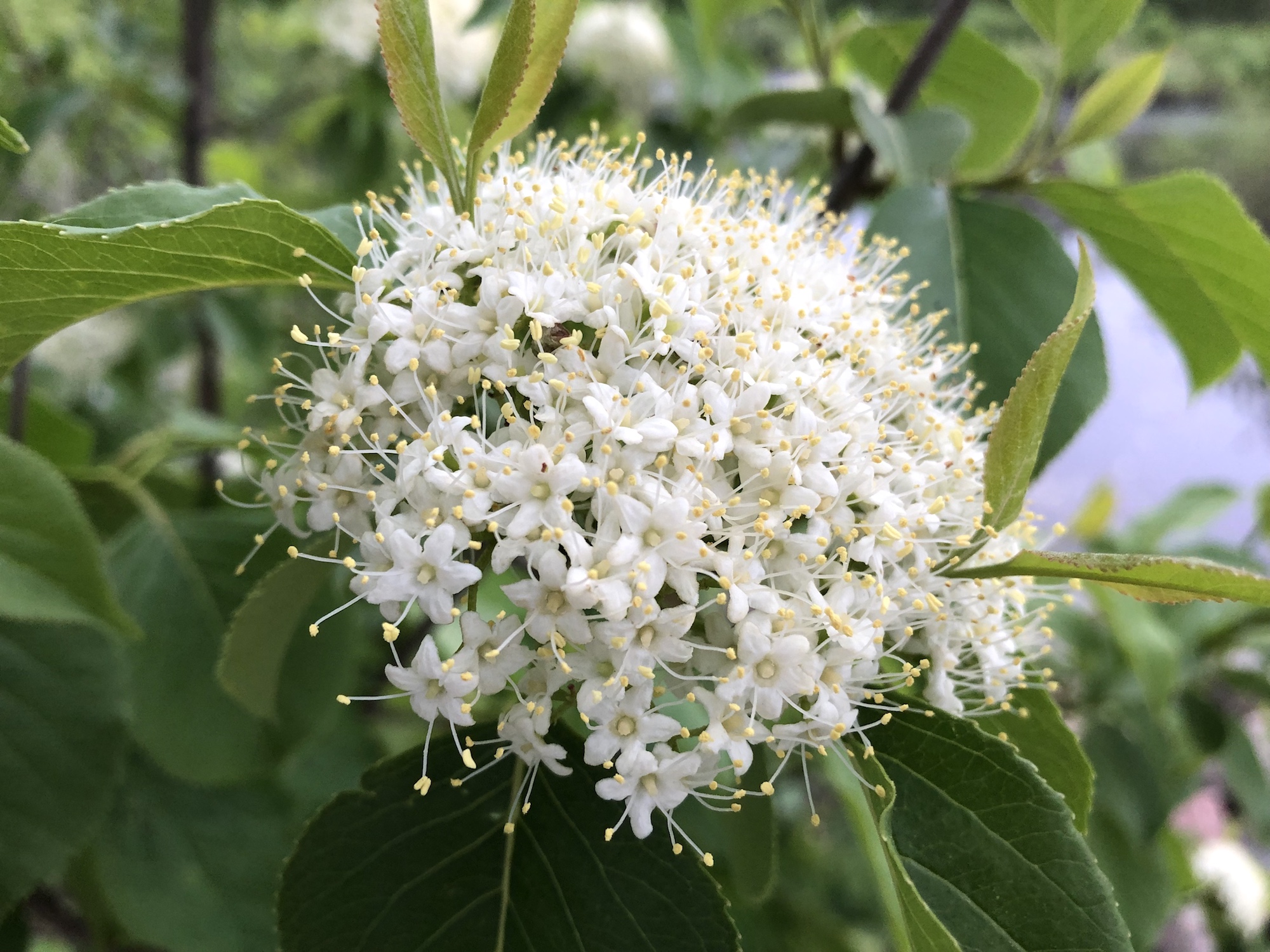 Above: Flowering shrub by Marion-Dunn Retaining Pond on May 28, 2019 (53°).