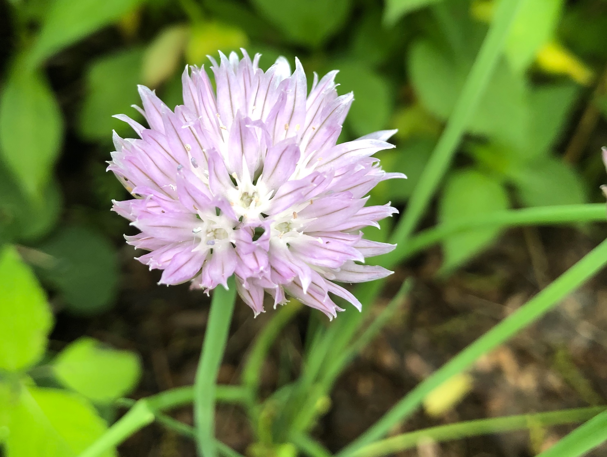 Above: Chive blossom by retaining pond on corner of Nakoma Road and Manitou Way on May 29, 2019 (54°).
