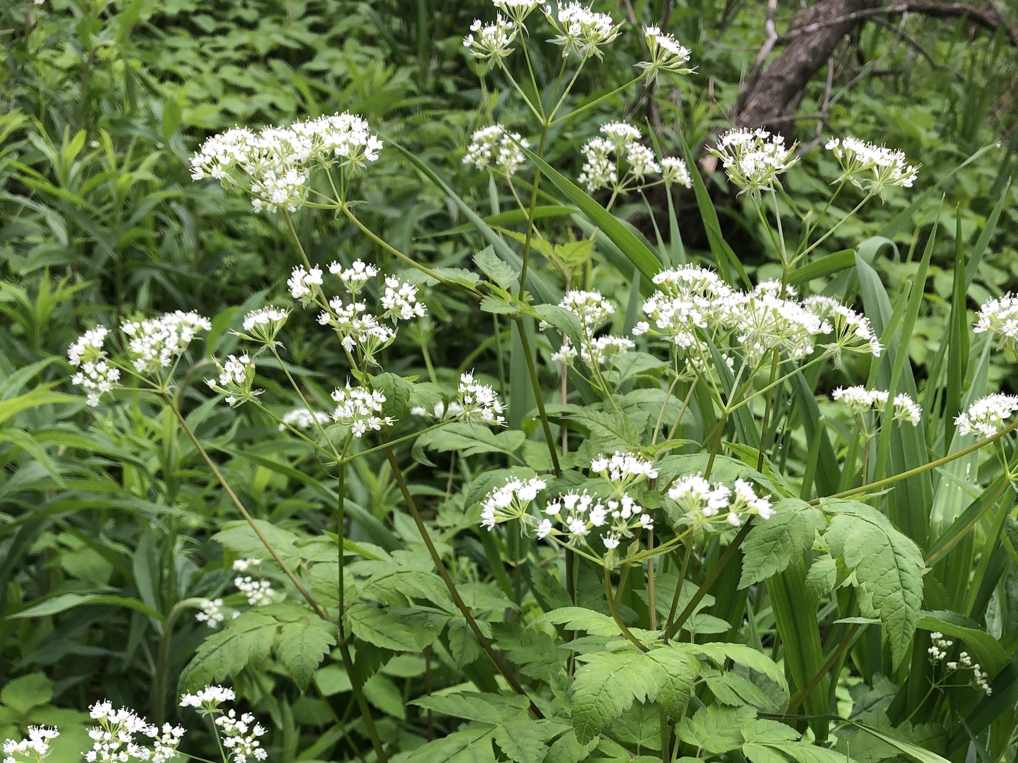 Below: White Flower in Oak Savanna that needs to be identified (Bishop's Weed/Wild Masterwort/Goutweed/Gound Elder on May 29, 2019.