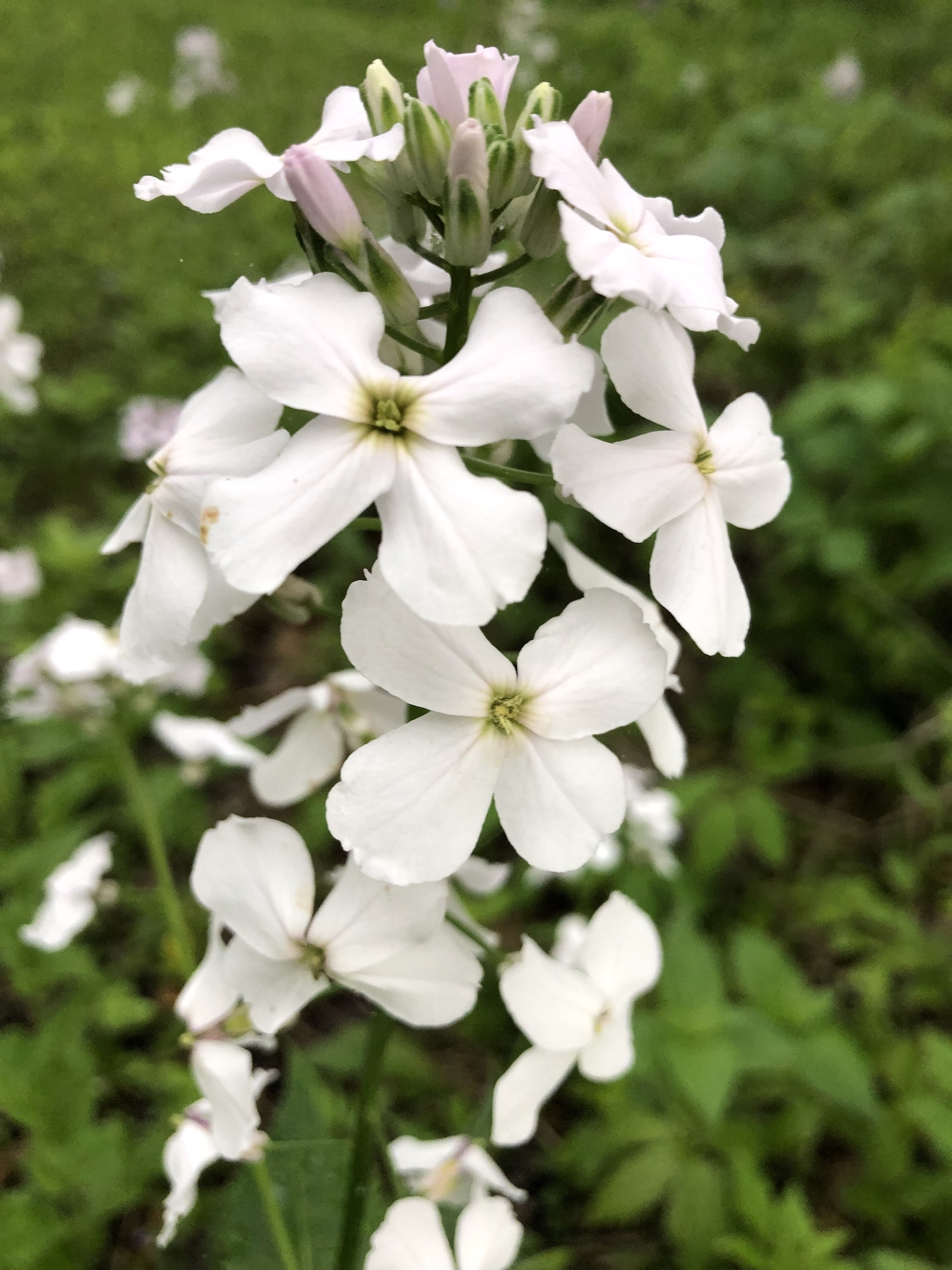 Above: Dames Rocket in woods between Marion Dunn and Oak Savanna on May 30, 2019 (61°).