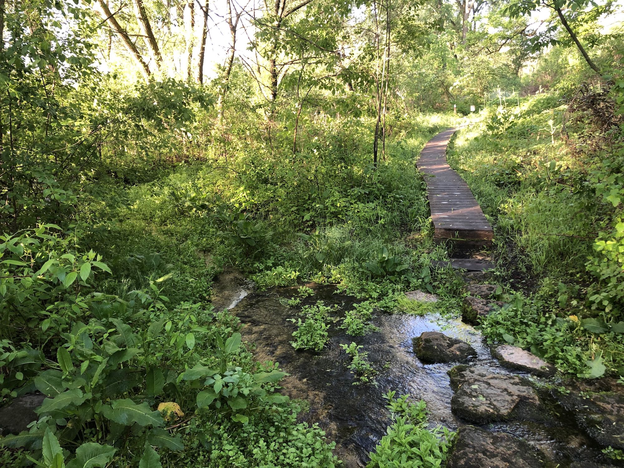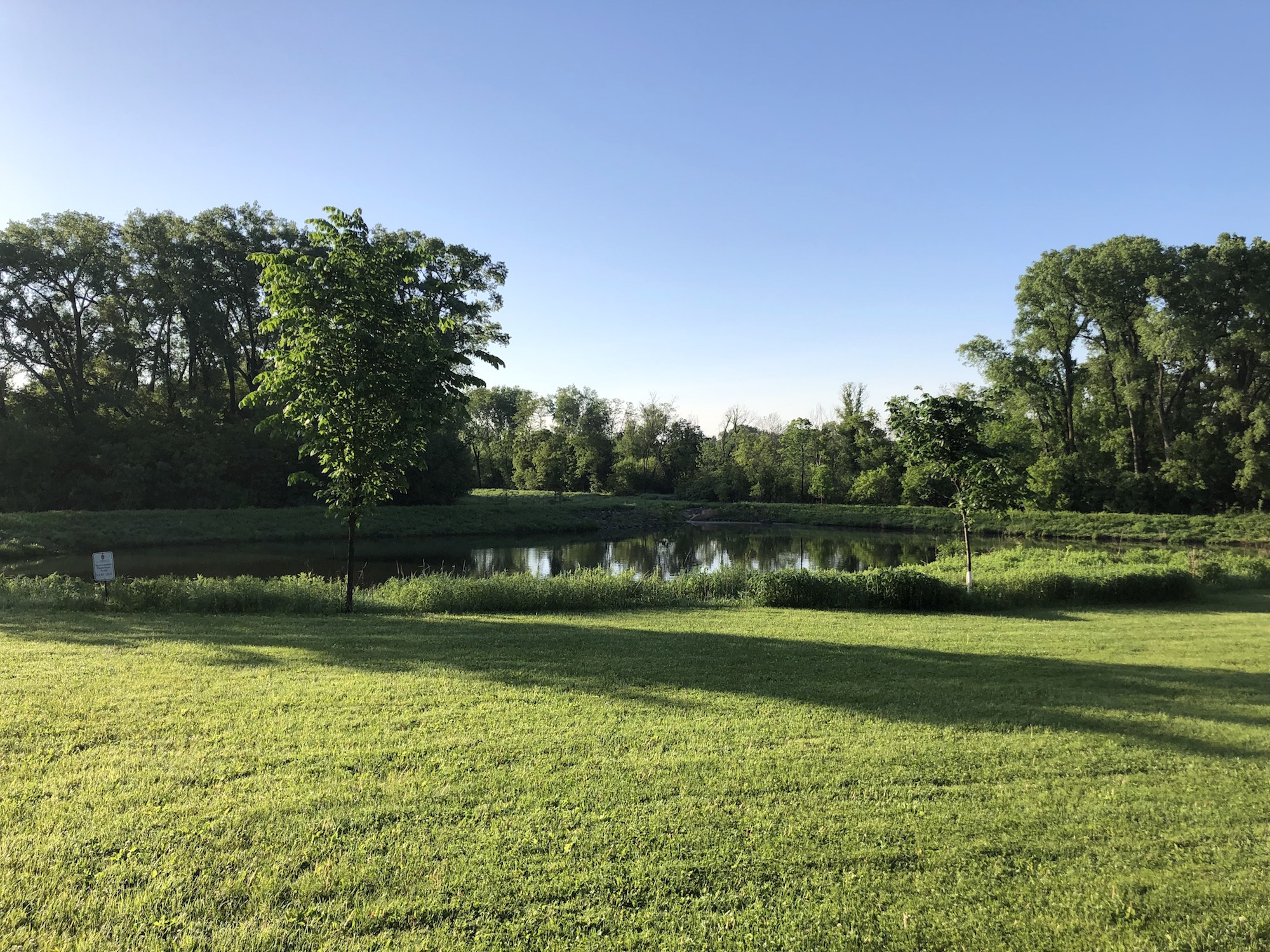 Above: Retaining pond on corner of Nakoma Road and Manitou Way on June 2, 2019 (64°).