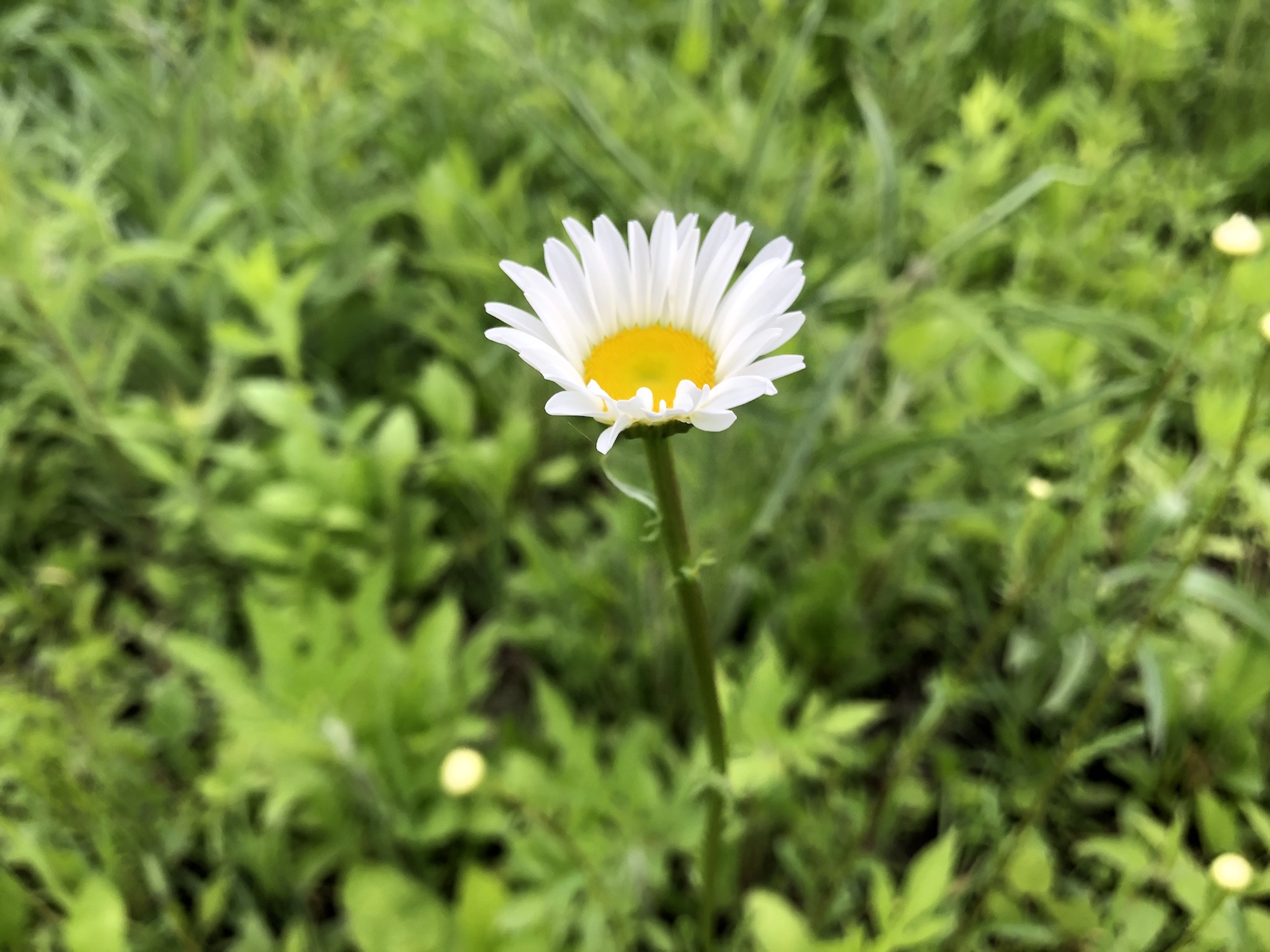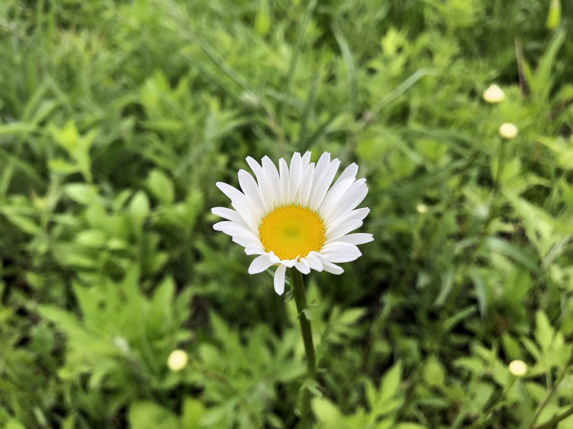 Above: Daisies on banks of retaining pond on June 3, 2019 (49°).