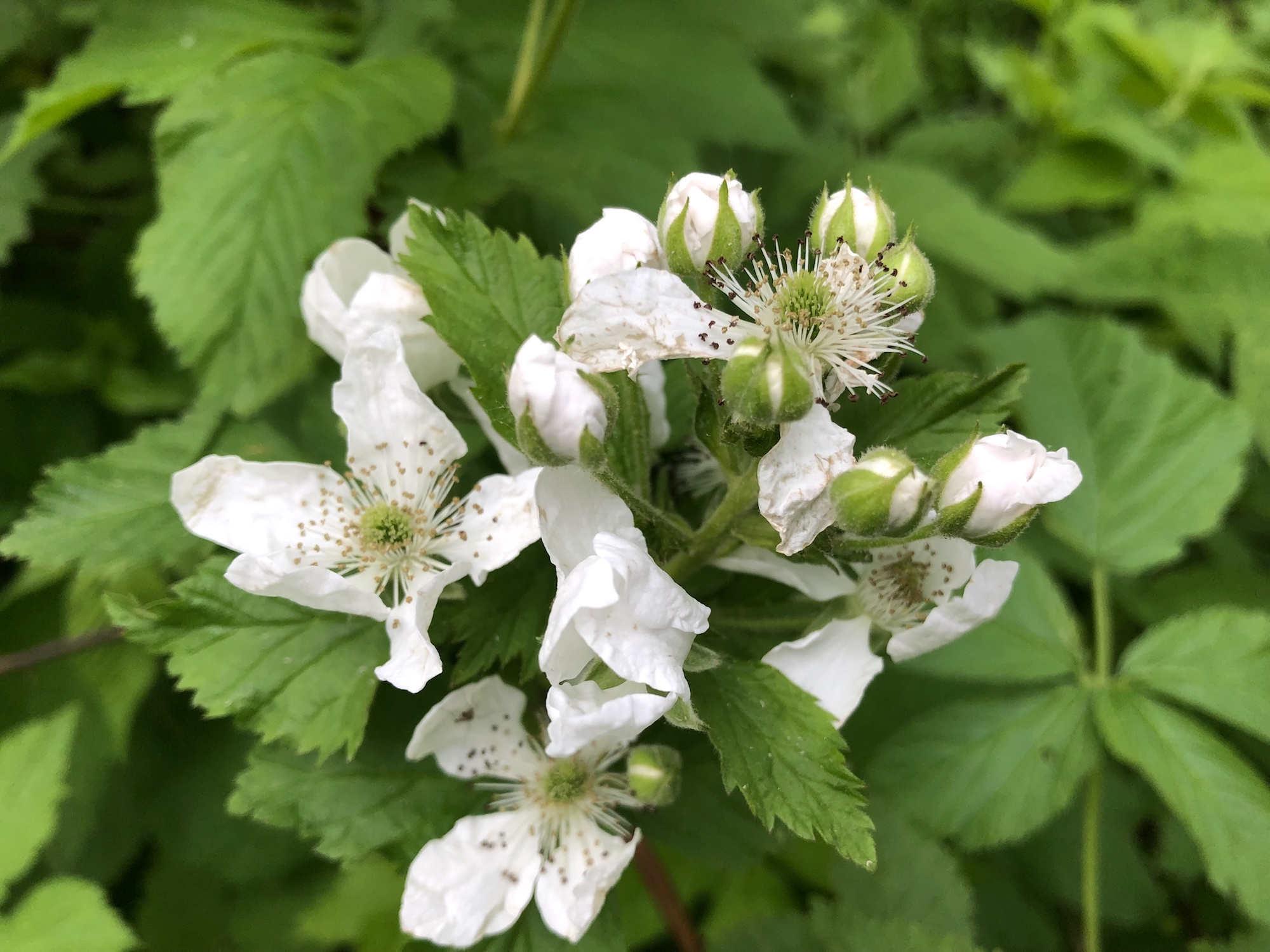 Above: Raspberry blossoms in Oak Savanna on June 3, 2019 (49°).