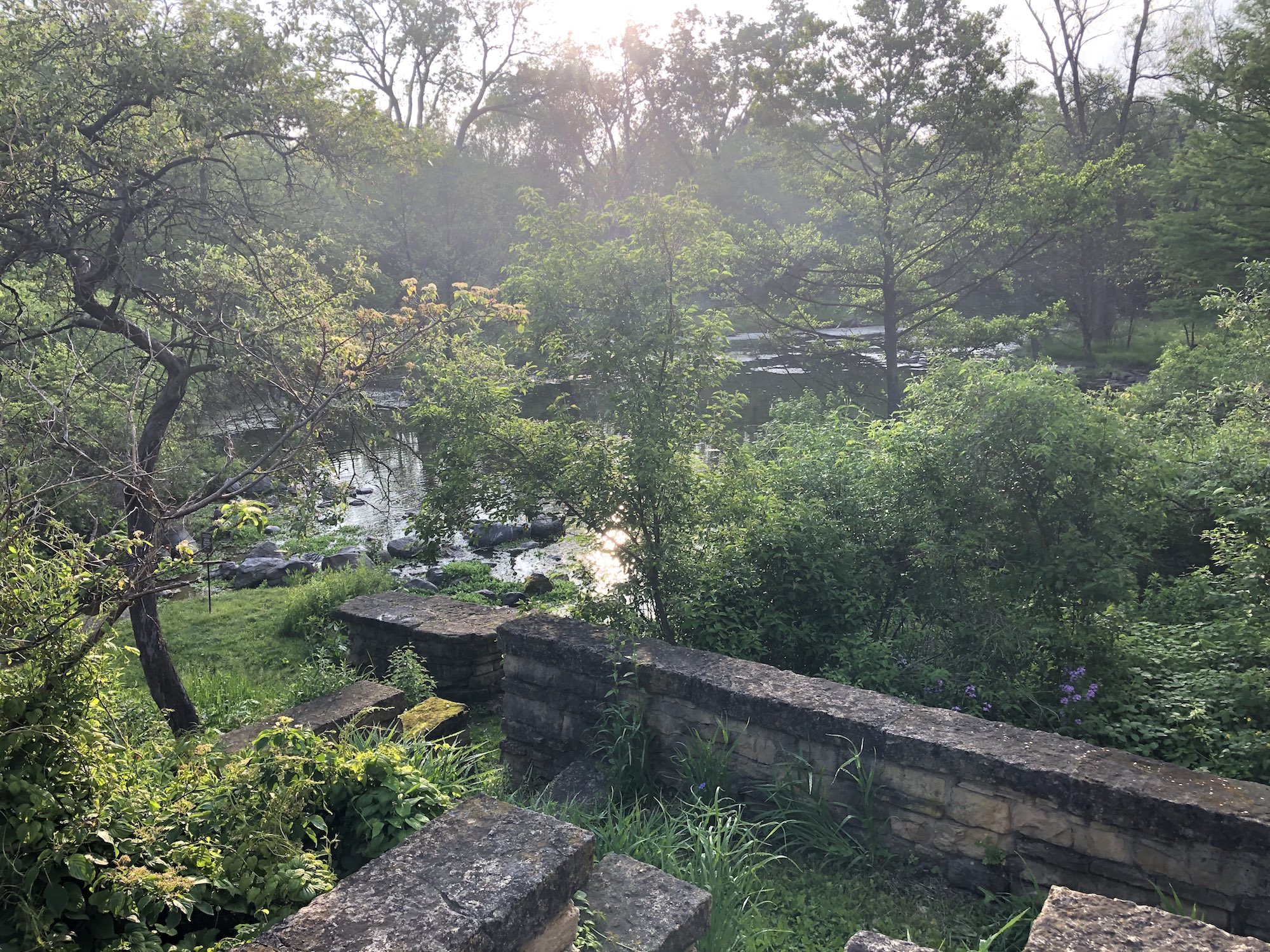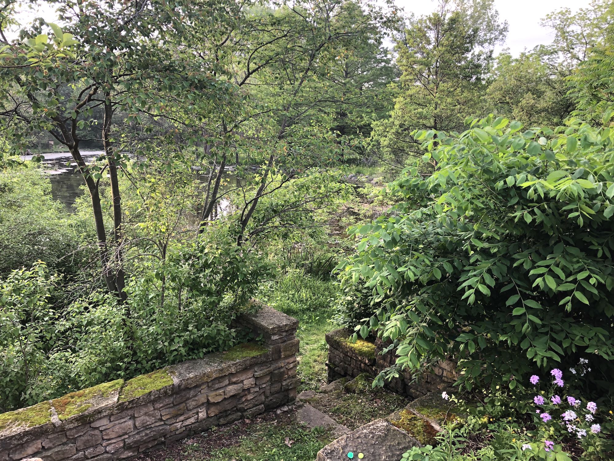 Above: Spiderwort along stone walls and steps of Duck Pond on June 6, 2019 (60°).