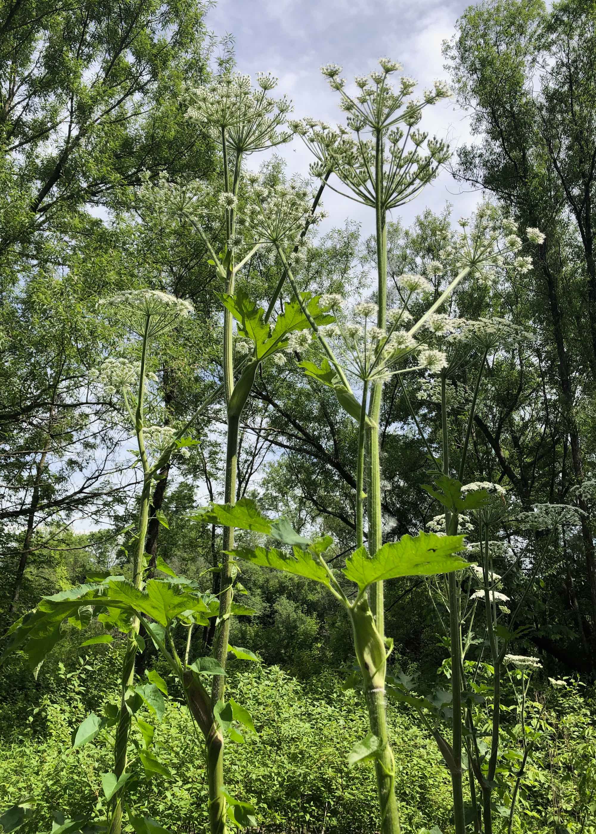Above: Tall 8' white flower (Cow Parsnip/Heracleum maximum) on hill next to Council Ring (78°). 3:20 PM.