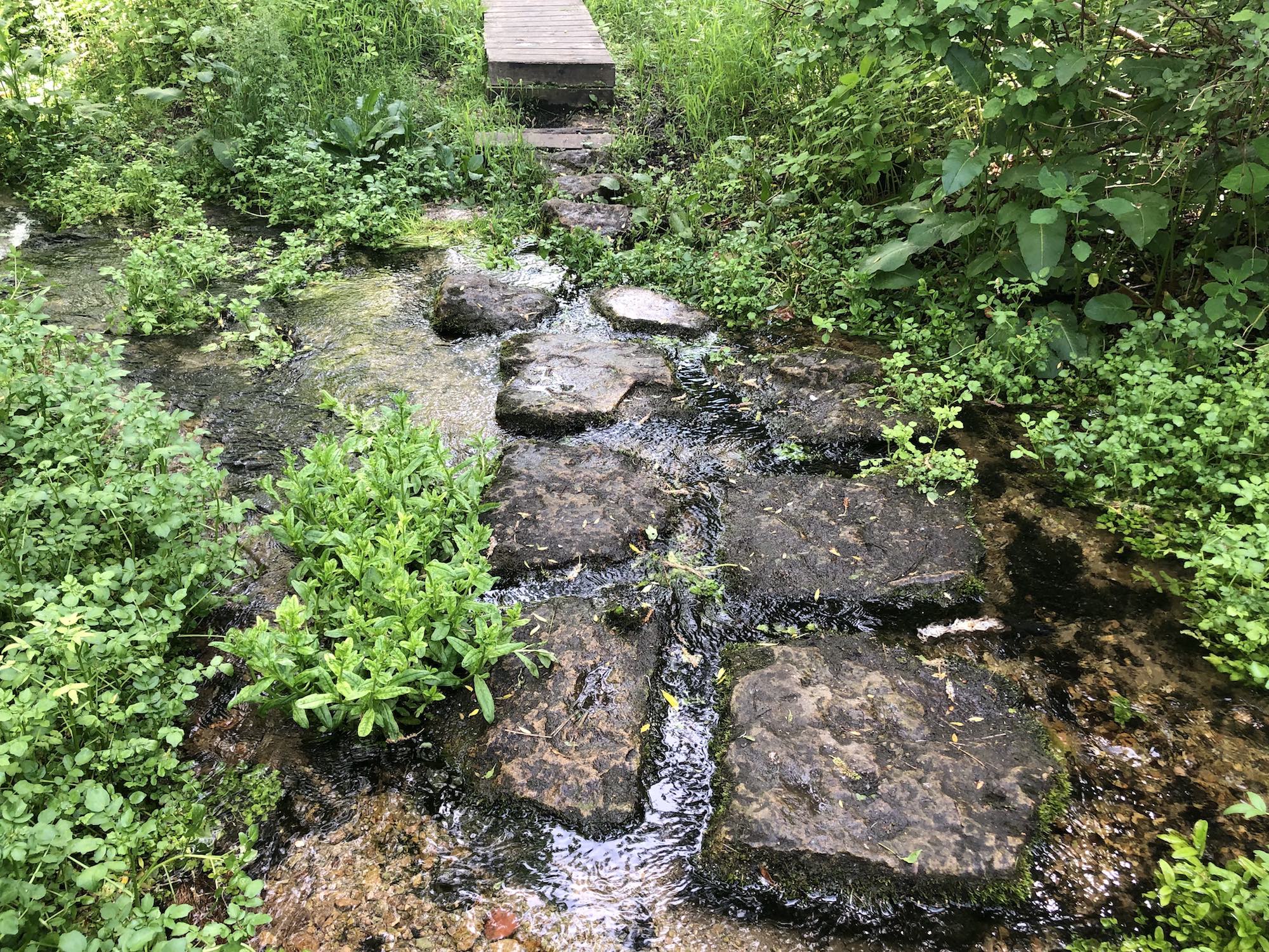 Above: Retaining pond on corner of Nakoma Road and Manitou Way on June 8, 2019 (60°).