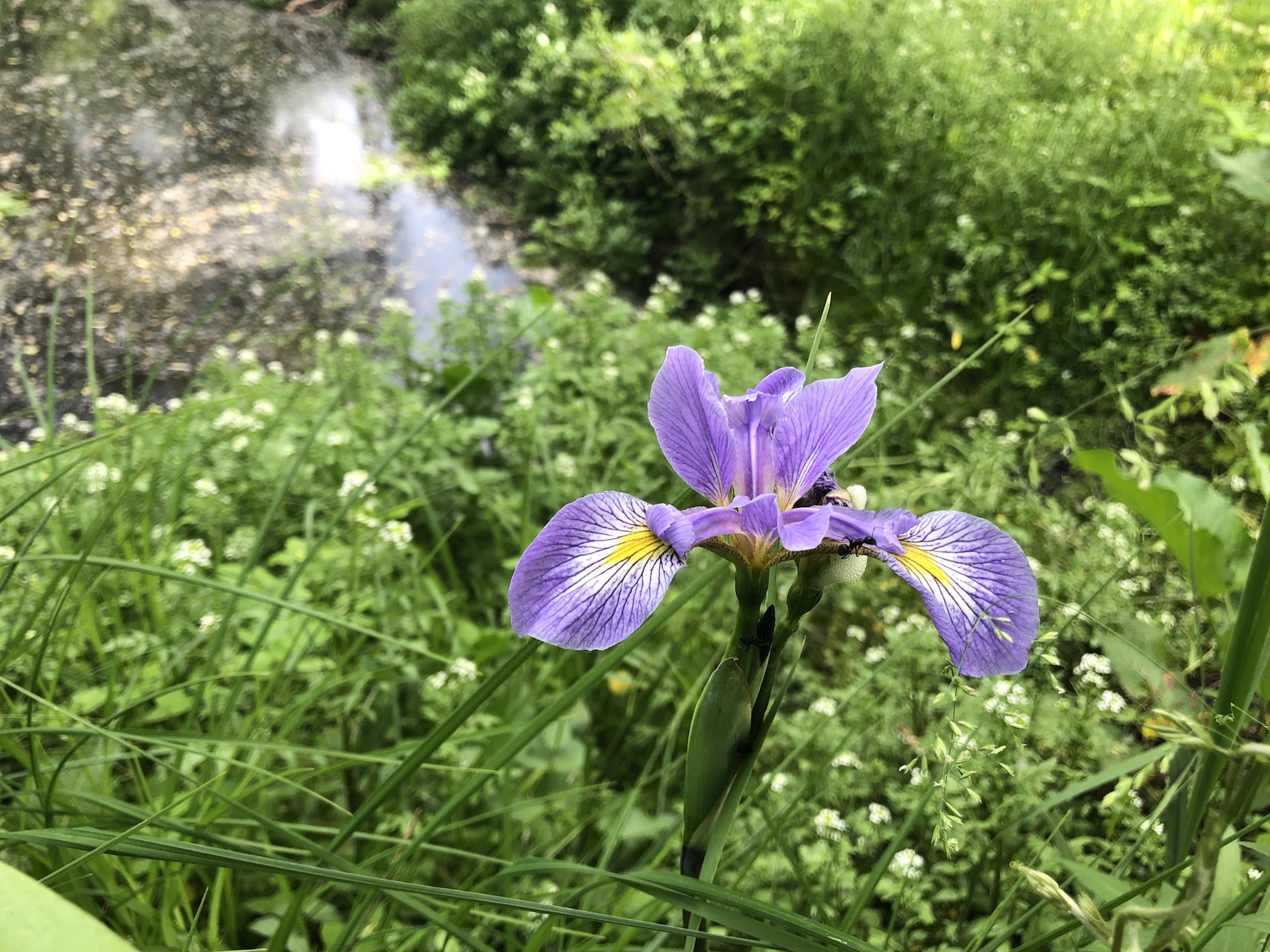Above: Spiderwort along shore of Retaining pond on corner of Nakoma Road and Manitou Way on June 8, 2019 (60°).