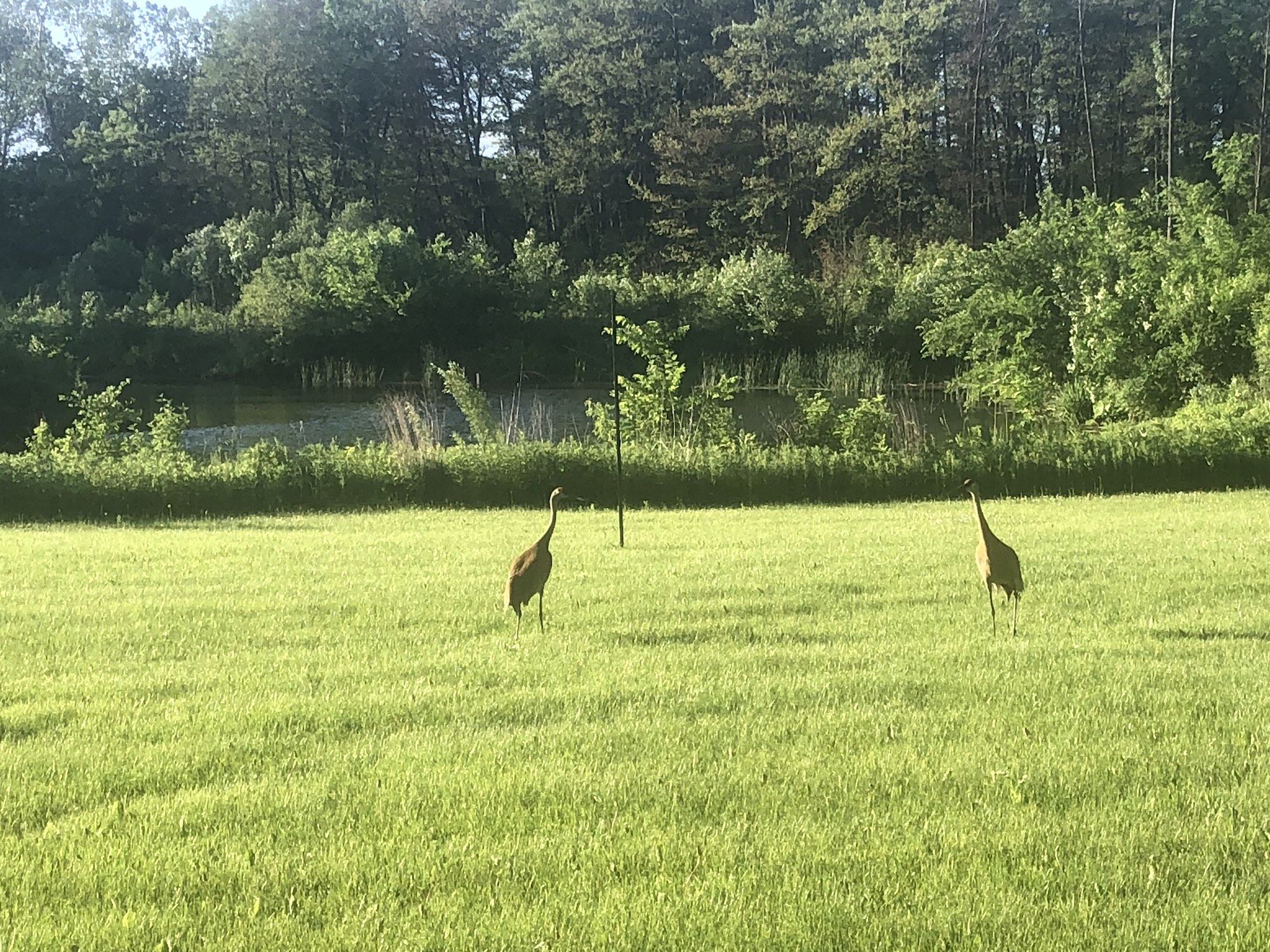 Above: Sandhill Cranes near Marion-Dunn Retaining Pond on June 10, 2019 (57°).