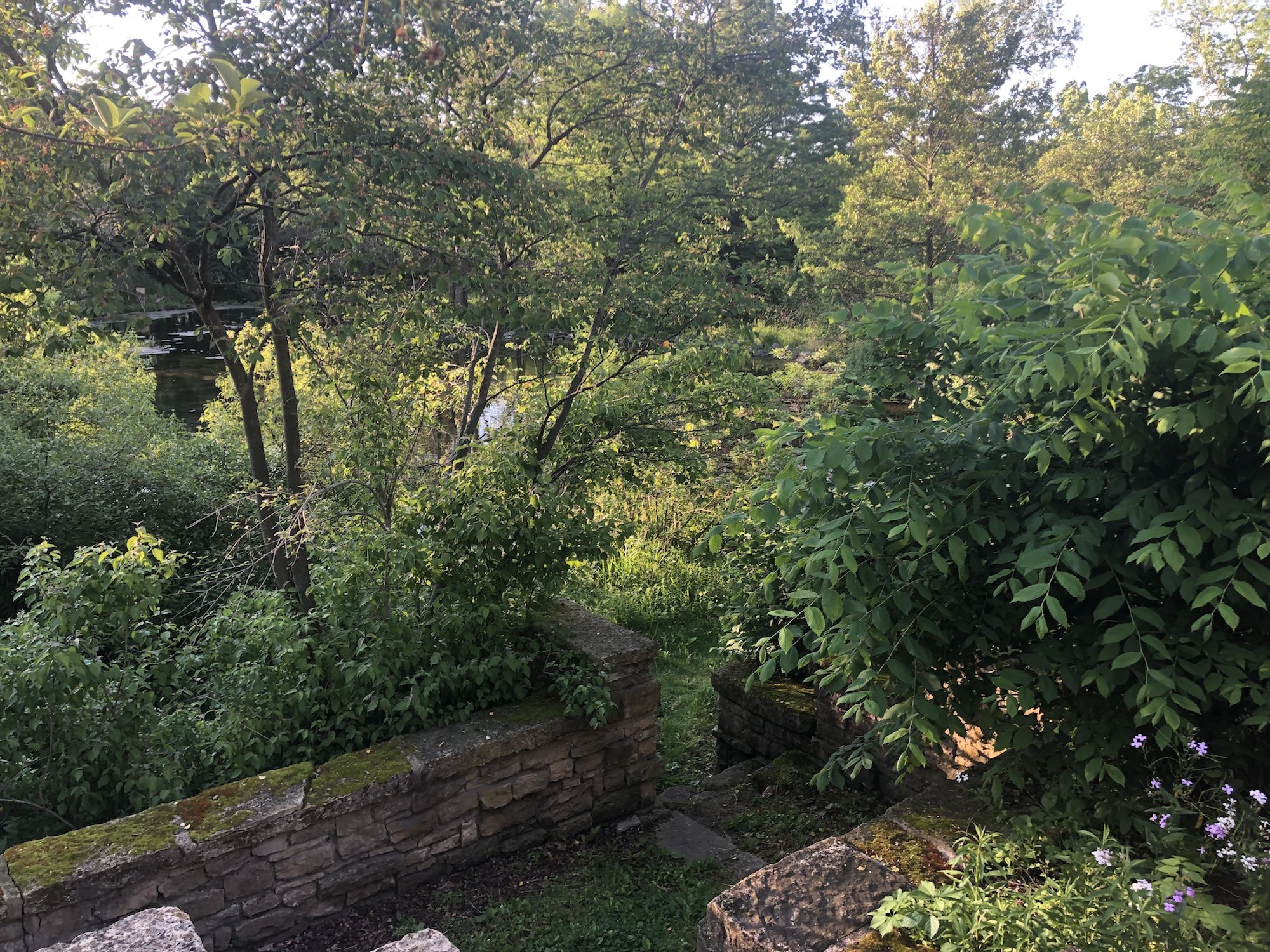 Above: Retaining pond on corner of Nakoma Road and Manitou Way on June 10, 2019 (60°).