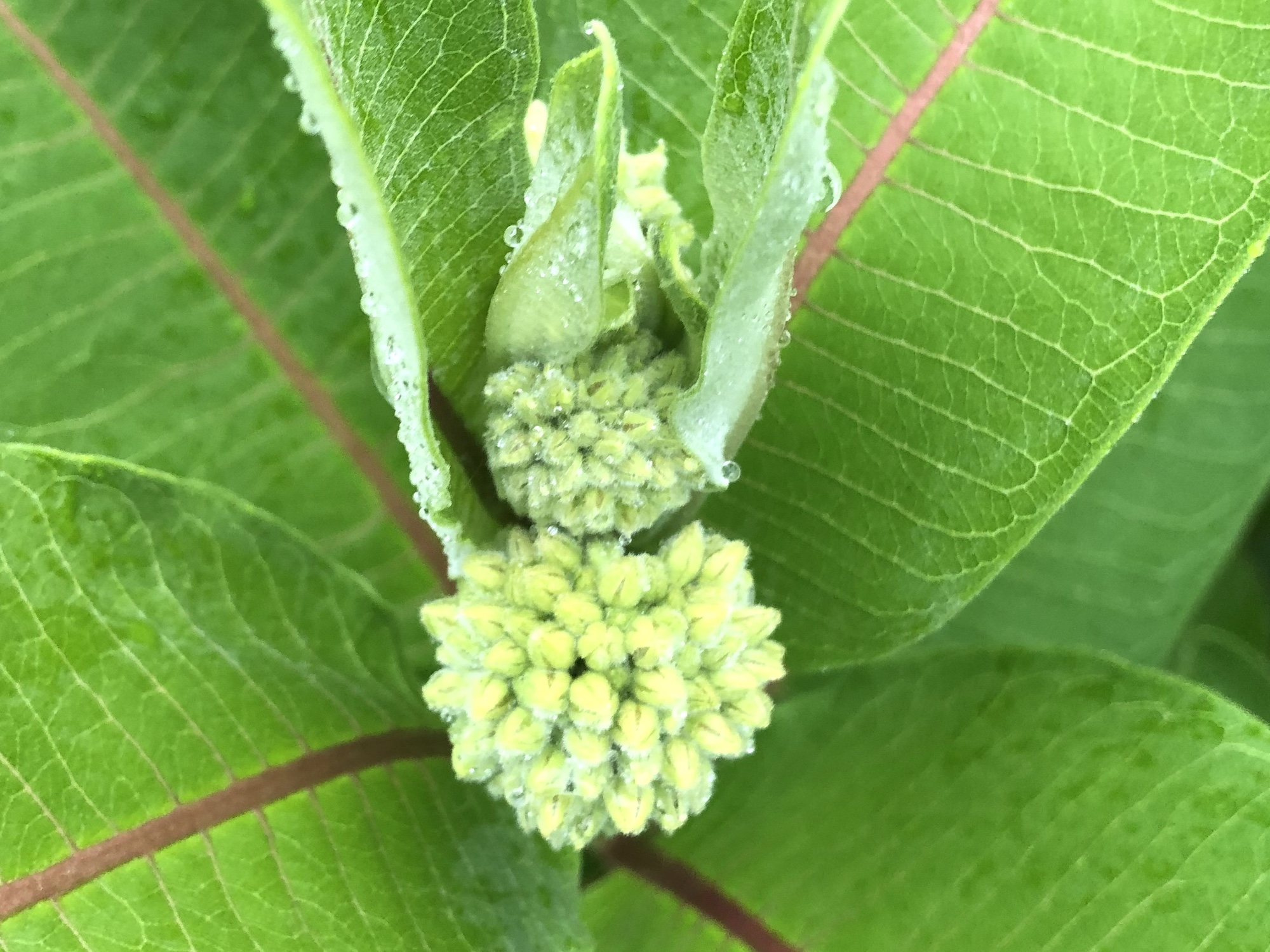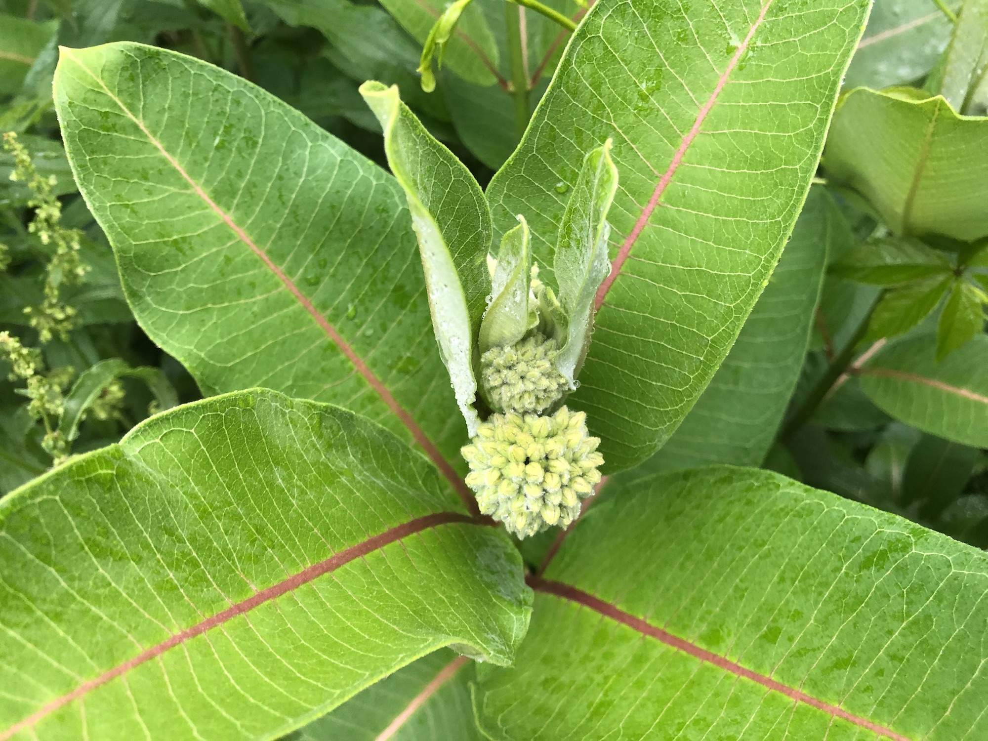Above: Milkweed blooms forming on June 12, 2019 (57°).