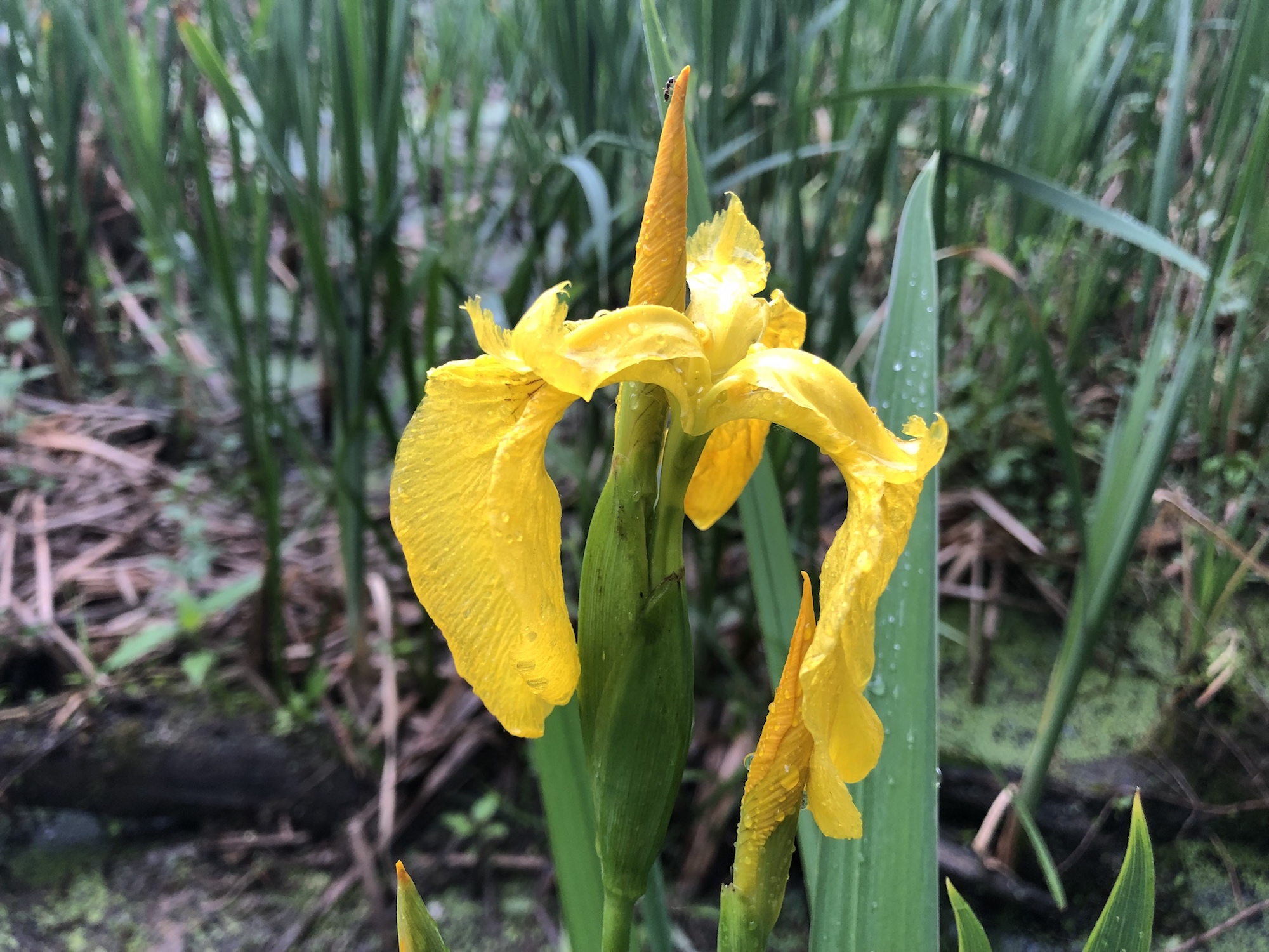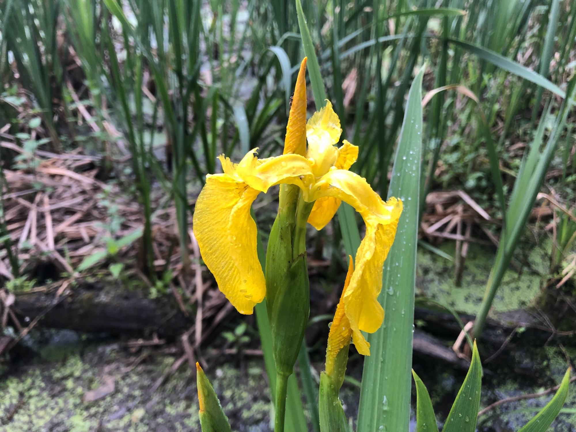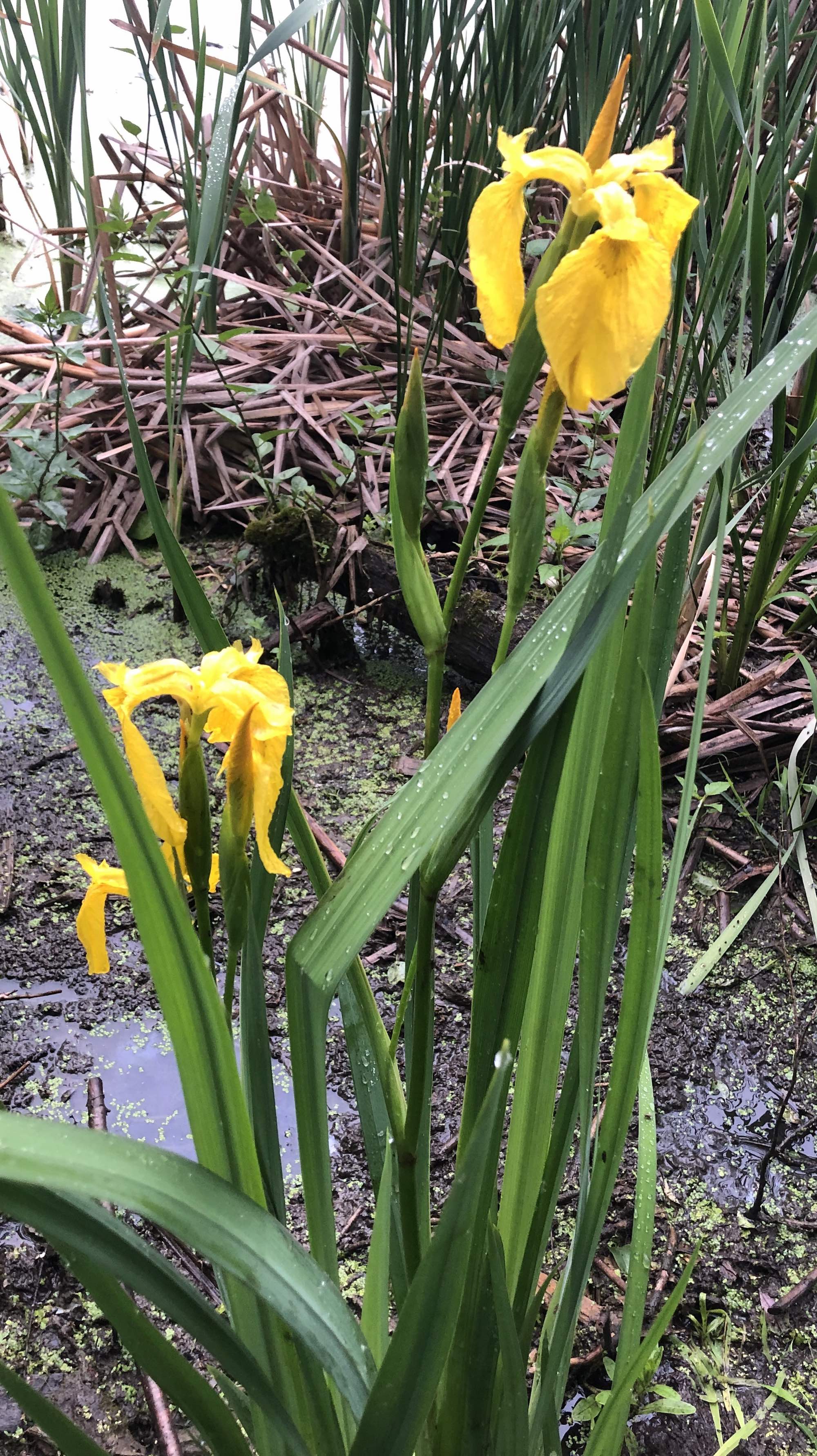 Above: Yellow flag iris in Lake Wingra Cattails. Redwing Blackbirds..