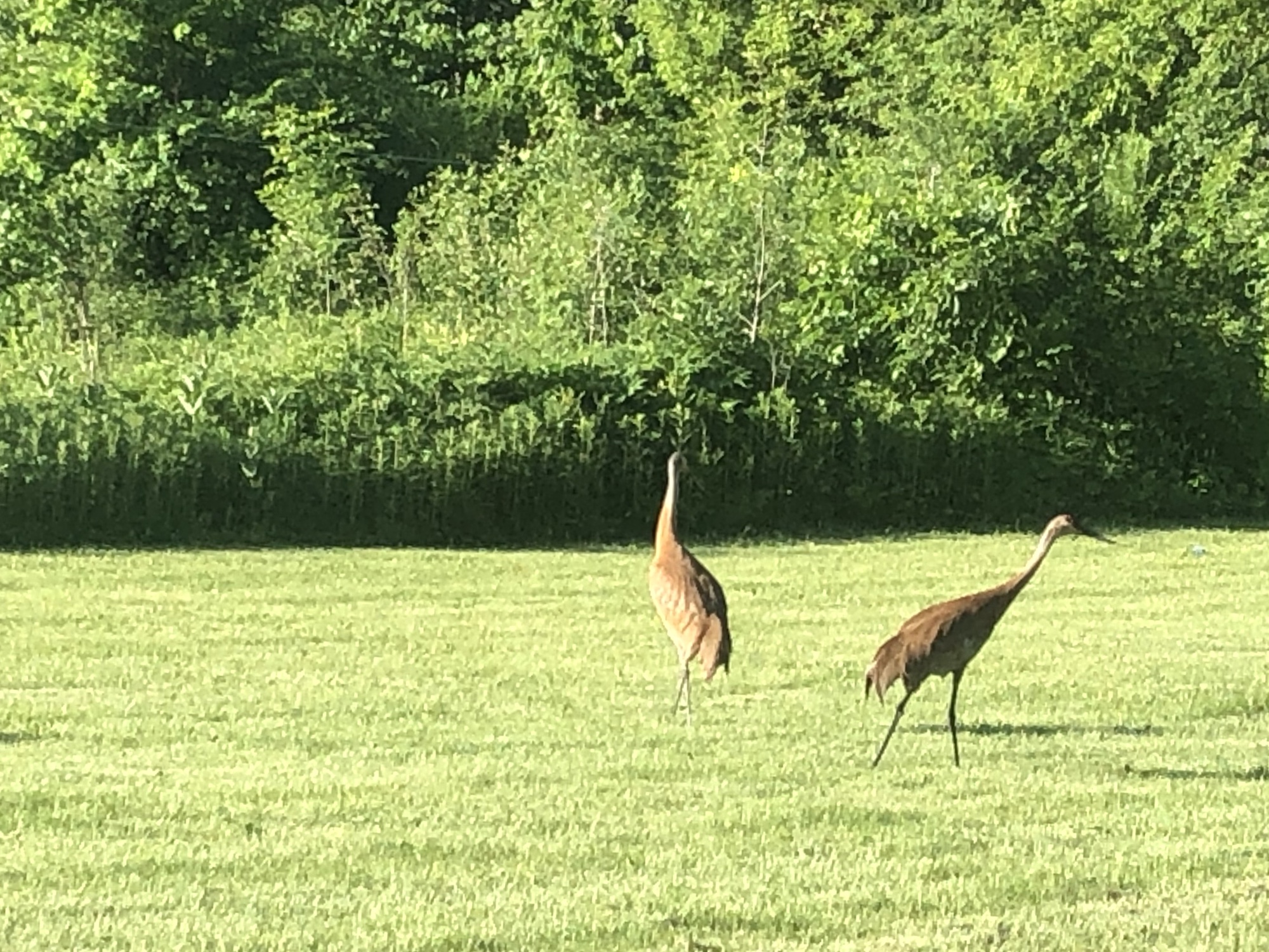 Above: Sandhill Cranes in Marion Dunn field on June 13, 2019 (51°).