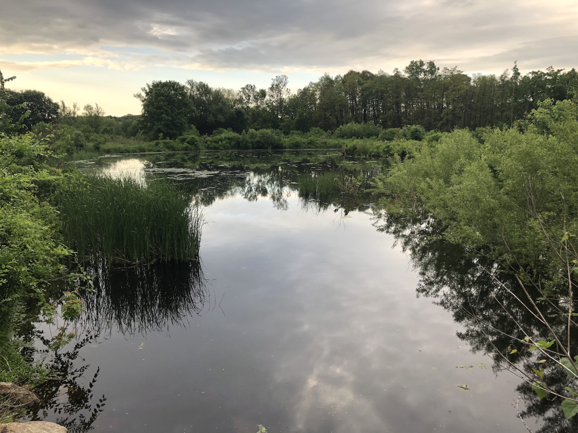 Above: Marion-Dunn Retaining Pond on June 14, 2019 (51°).