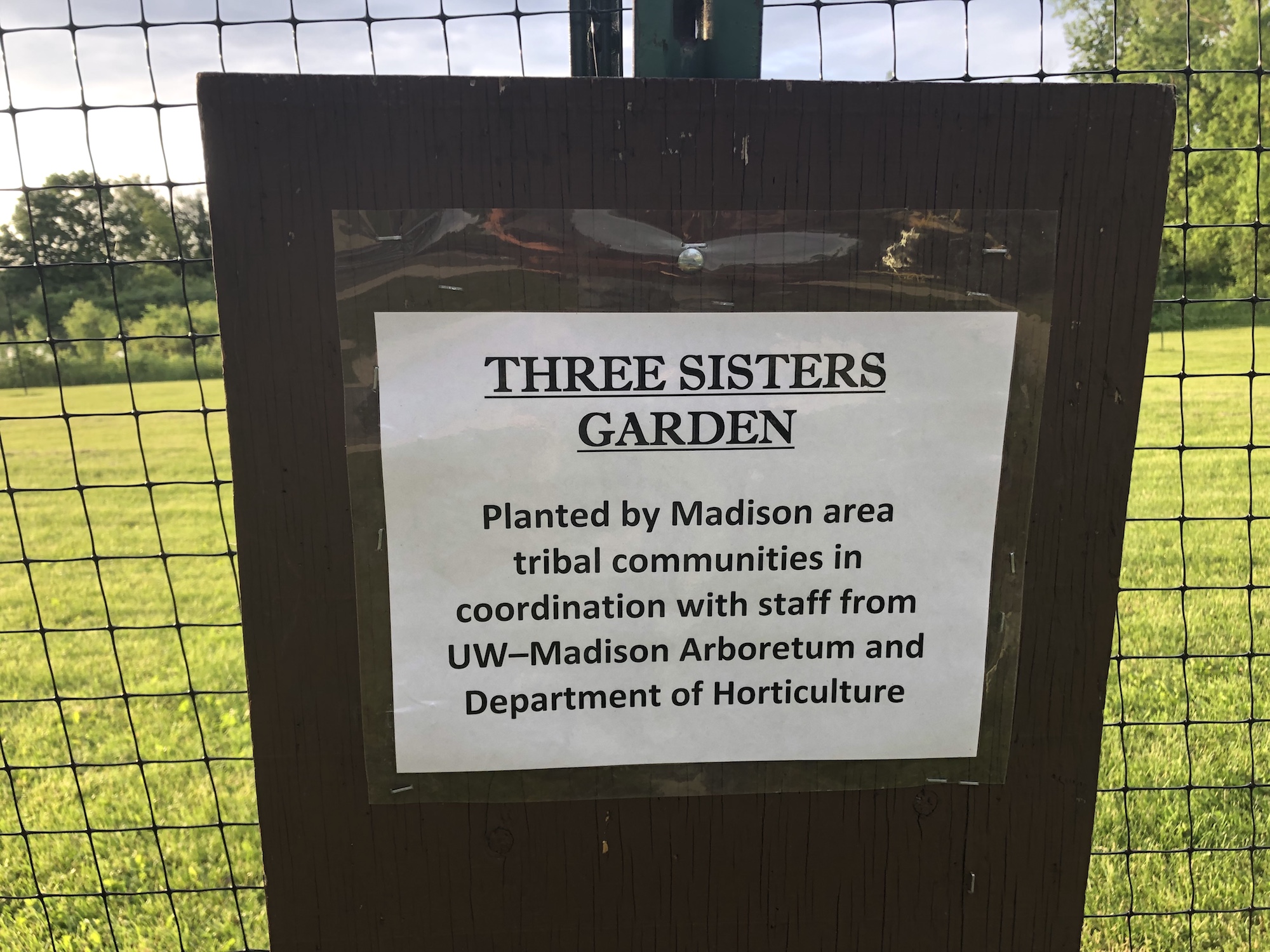 Note: The beginning of the Three Sisters Garden (all staked out and fenced in) by Marion Dunn Pond.