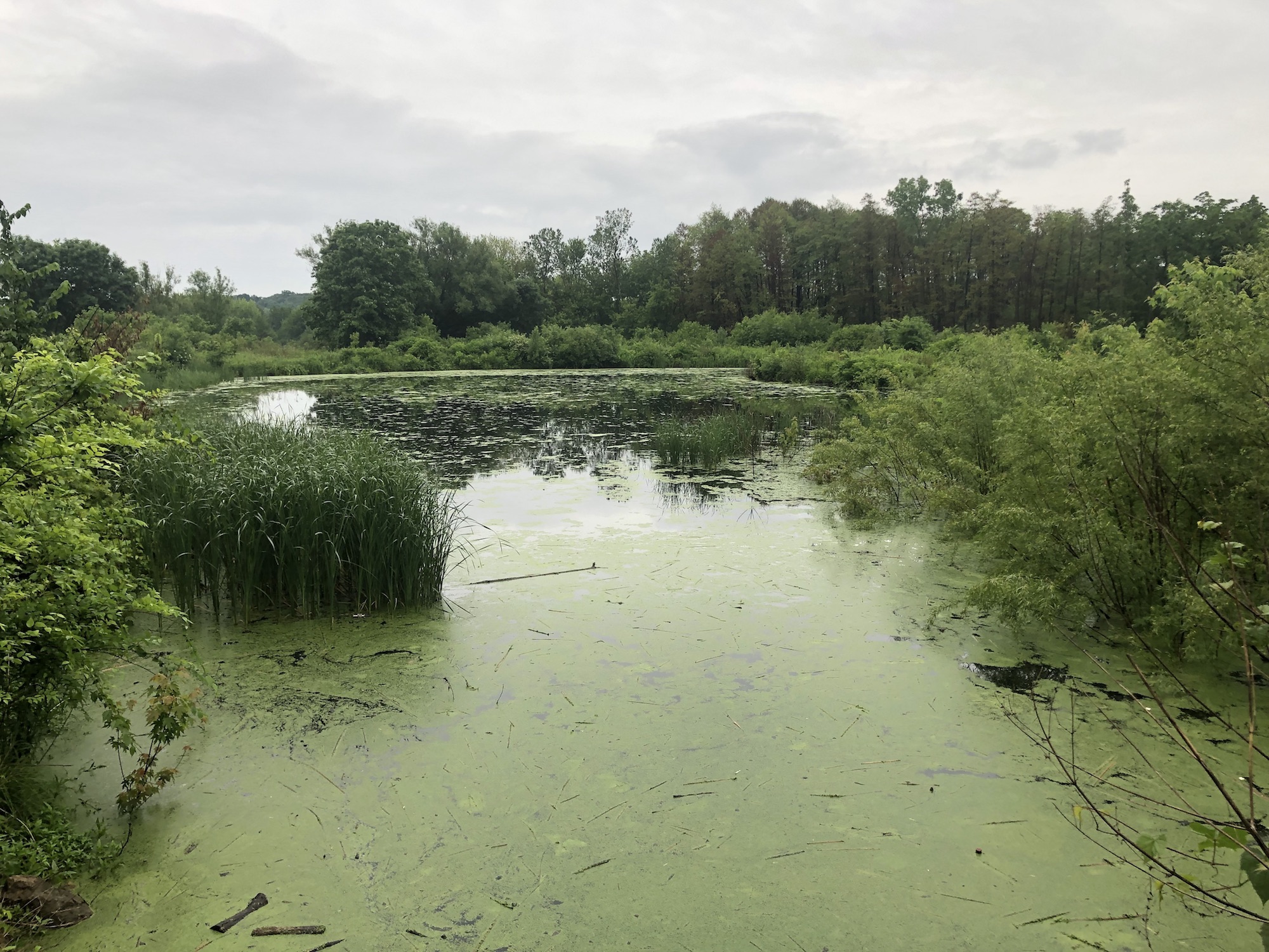 Above: Marion-Dunn Retaining Pond on June 19, 2019 (63°).